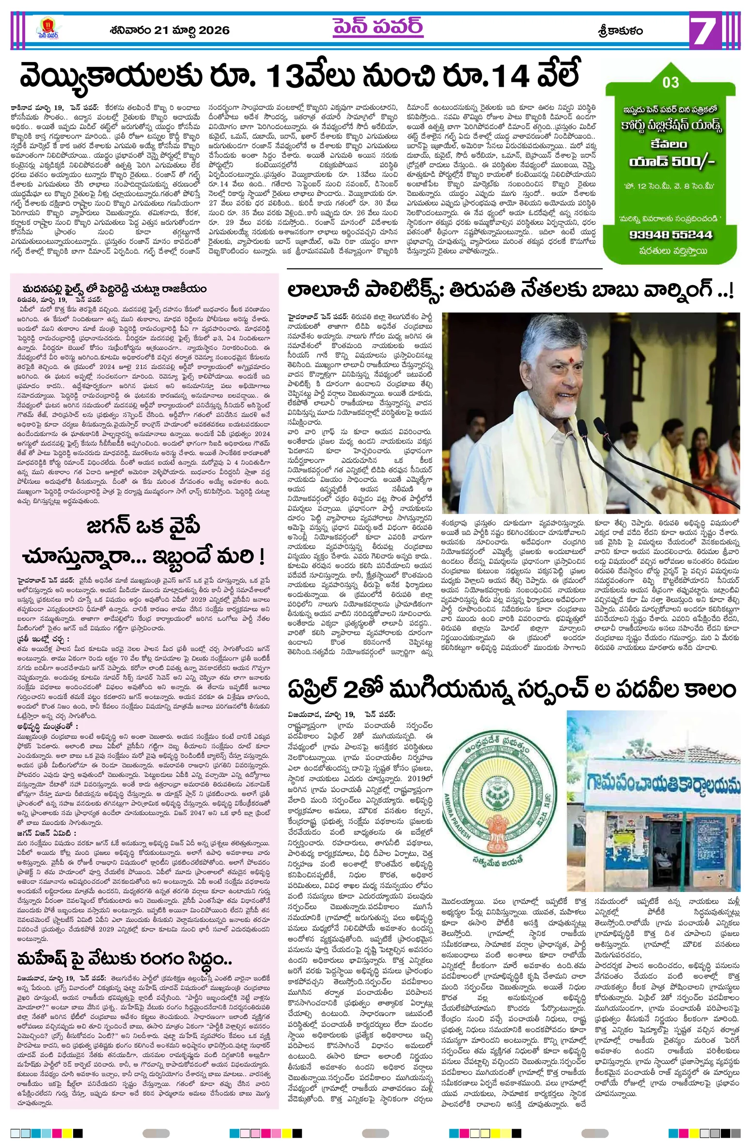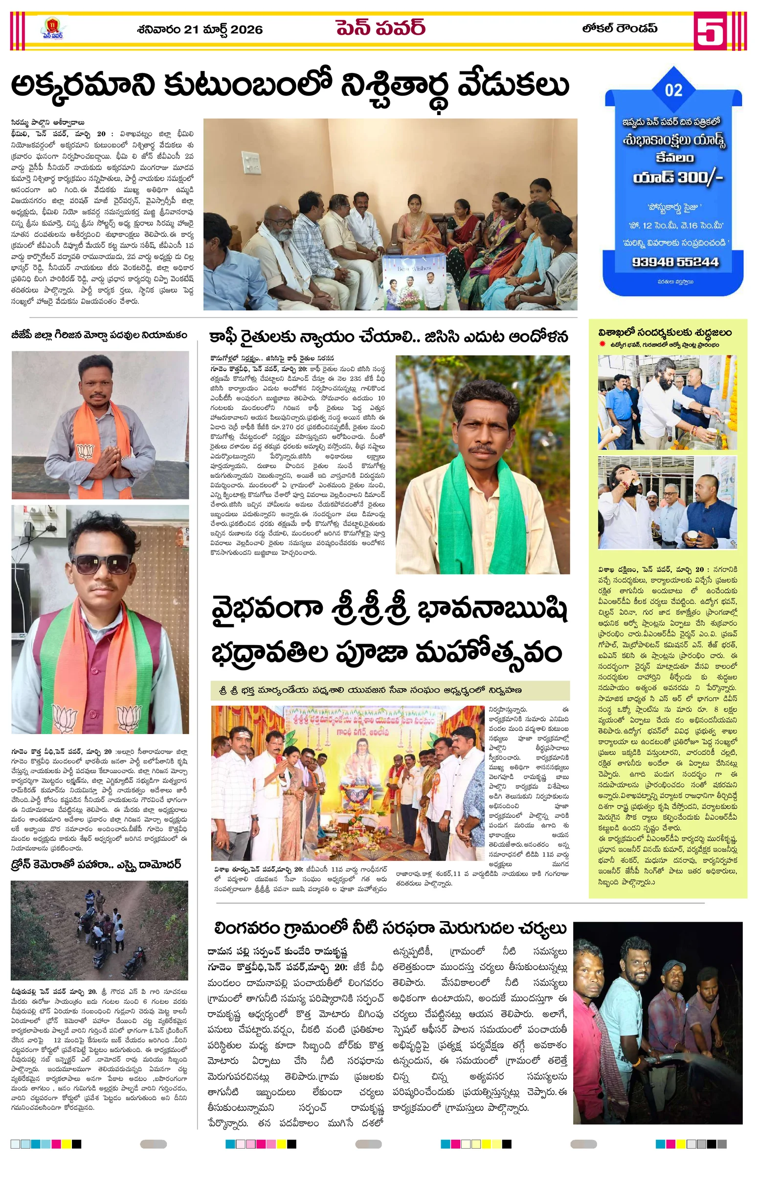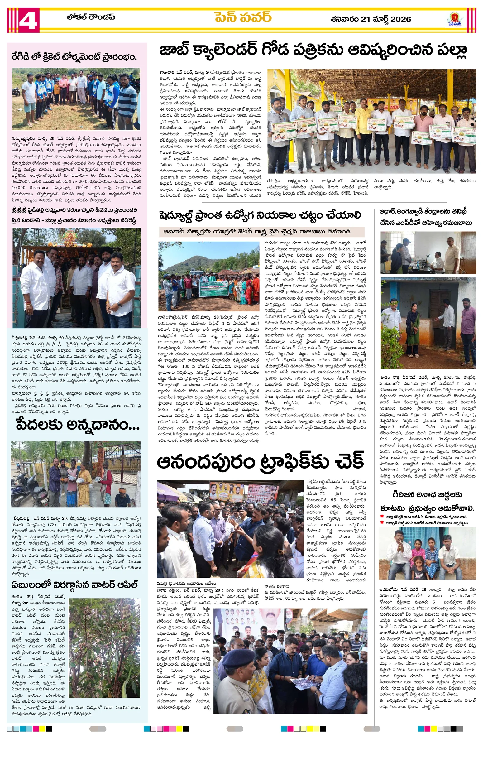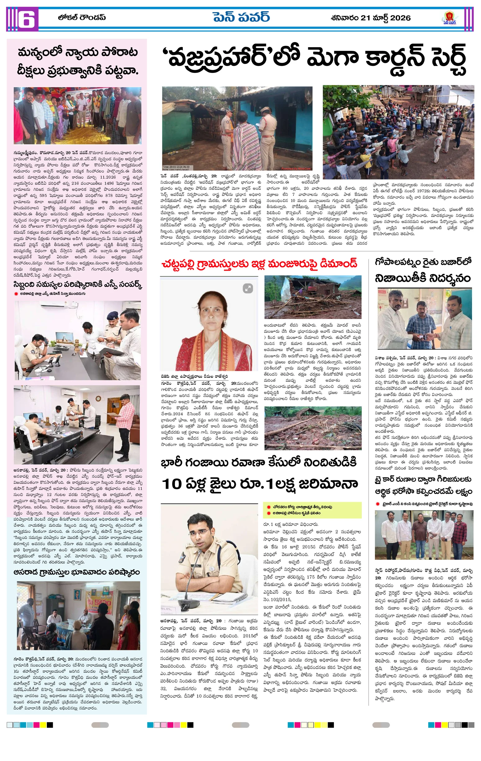 జాతీయ నేతల విగ్రహాల రక్షణకు పటిష్ట చర్యలుగ్రామాల అభివృద్ధికి ప్రత్యేక అధికారుల బాధ్యతల స్వీకారంగ్రామాల అభివృద్ధే లక్ష్యం!జగ్గంపేటలో పోలీసుల కార్డెన్ సెర్చ్మీ భూమి – మీ హక్కు కార్యక్రమంలో గిరిజన రైతులకు పట్టాల పంపిణీస్వర్ణ మొల్లేరు–జడేరు గ్రామాల్లో పర్యటించిన డిప్యూటీ ఎంపీడీవో గోపన్నదొరరెవెన్యూ సేవల్లో పారదర్శకతే ప్రభుత్వ లక్ష్యంగ్రామాభివృద్ధికి సమిష్టిగా సహకరించాలిఆరు పంచాయతీలకు ప్రత్యేక అధికారిగా అడ్డతీగల ఎంపీడీవో కుమార్..నీరులేని నీటి తొట్టెలు మూగజీవాల దాహార్తి తీరేదెలా?