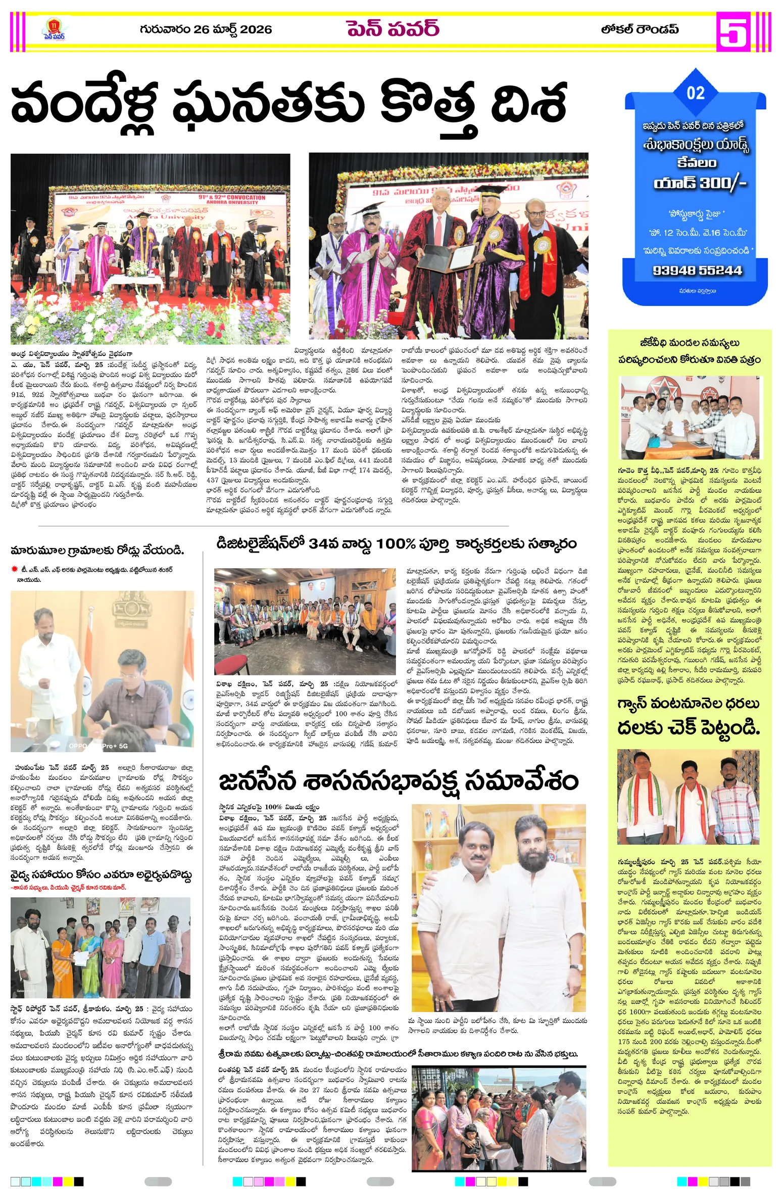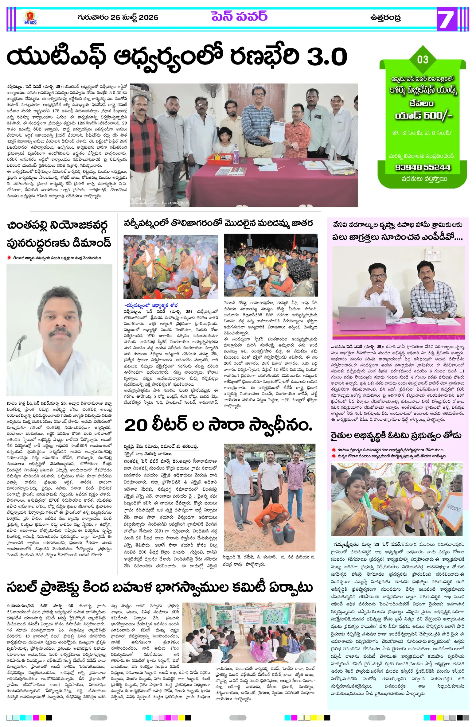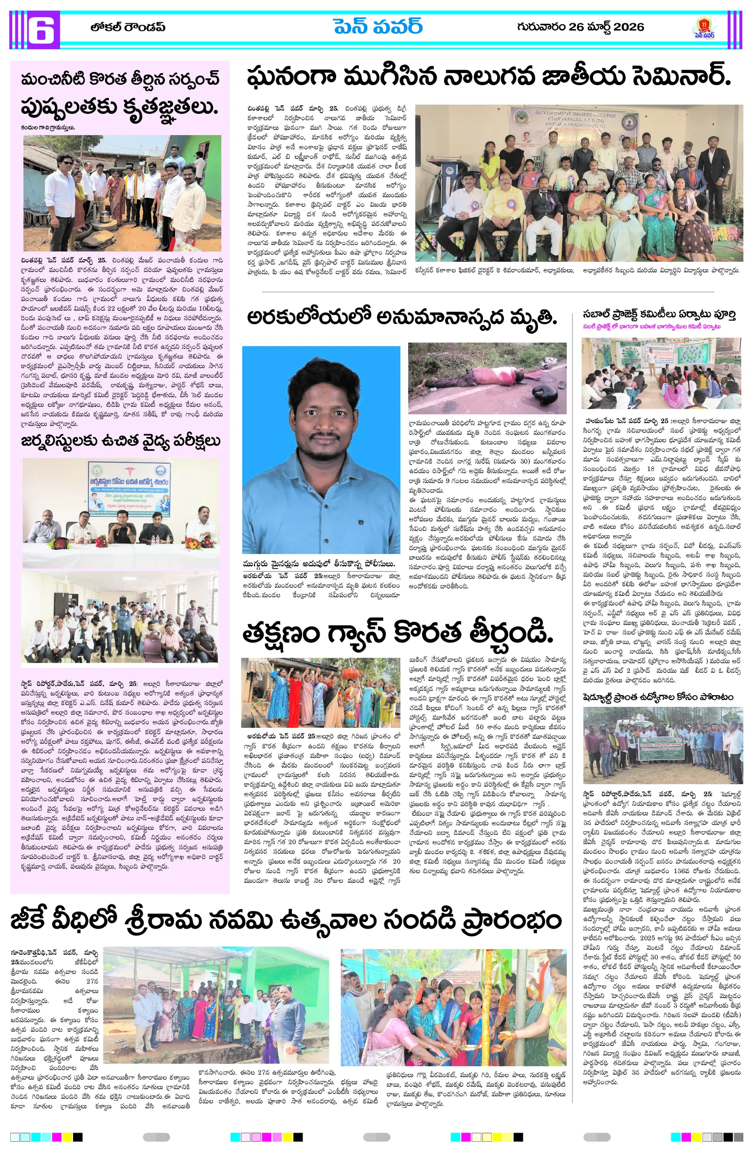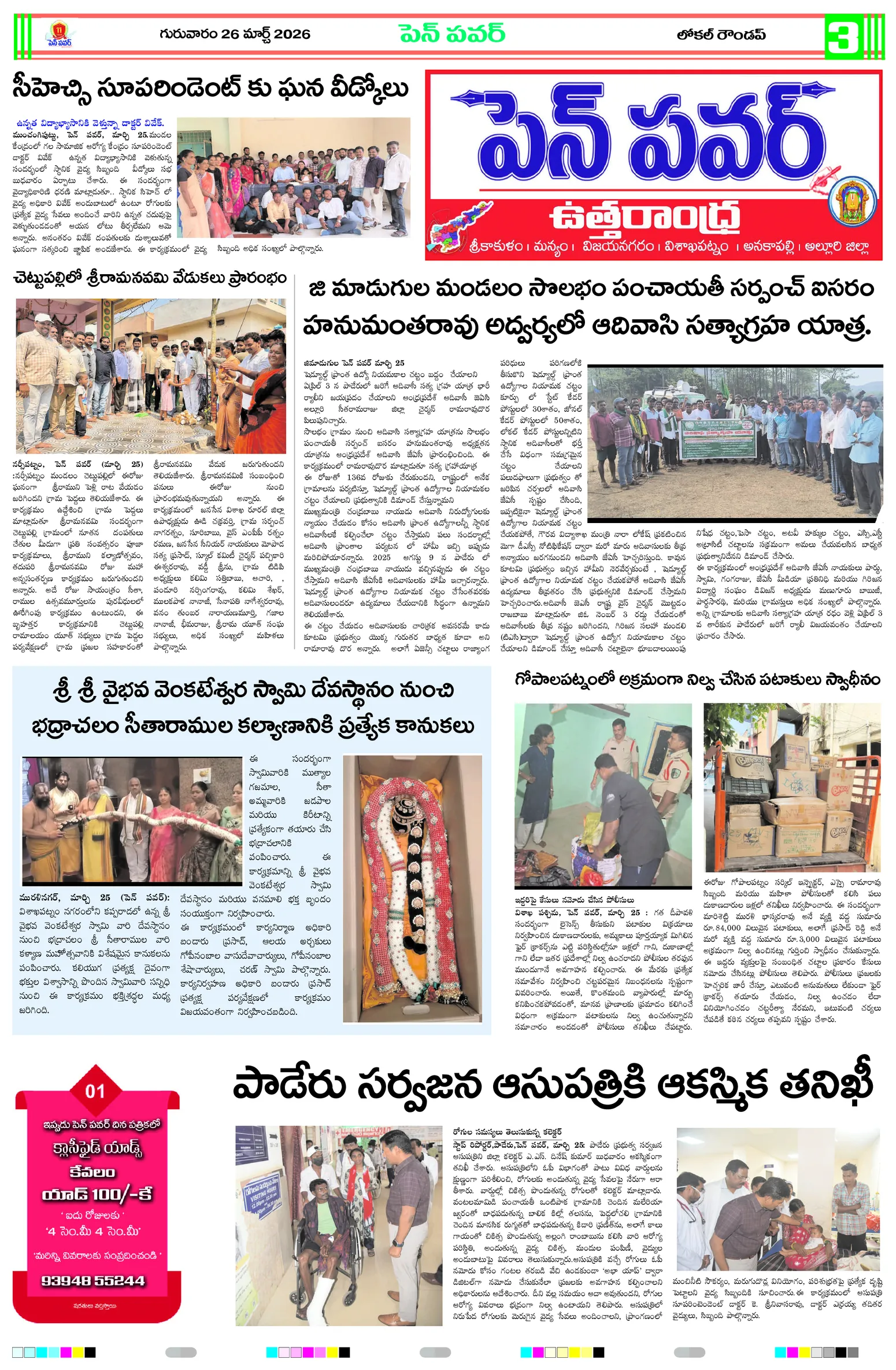 సమతాదివస్జాతీయ నేతల విగ్రహాల రక్షణకు పటిష్ట చర్యలుగ్రామాల అభివృద్ధికి ప్రత్యేక అధికారుల బాధ్యతల స్వీకారంగ్రామాల అభివృద్ధే లక్ష్యం!జగ్గంపేటలో పోలీసుల కార్డెన్ సెర్చ్మీ భూమి – మీ హక్కు కార్యక్రమంలో గిరిజన రైతులకు పట్టాల పంపిణీస్వర్ణ మొల్లేరు–జడేరు గ్రామాల్లో పర్యటించిన డిప్యూటీ ఎంపీడీవో గోపన్నదొరరెవెన్యూ సేవల్లో పారదర్శకతే ప్రభుత్వ లక్ష్యంగ్రామాభివృద్ధికి సమిష్టిగా సహకరించాలిఆరు పంచాయతీలకు ప్రత్యేక అధికారిగా అడ్డతీగల ఎంపీడీవో కుమార్..