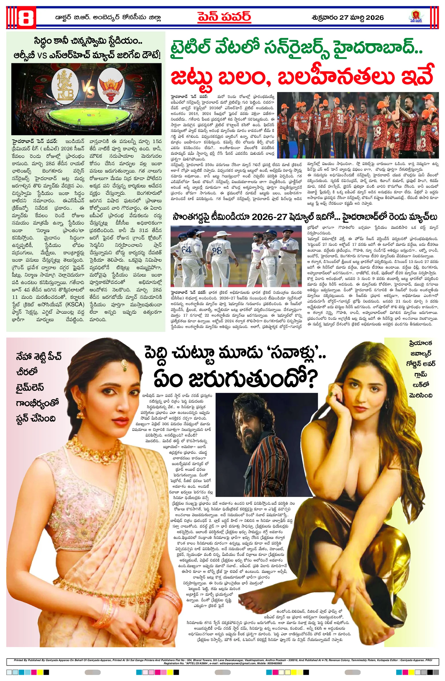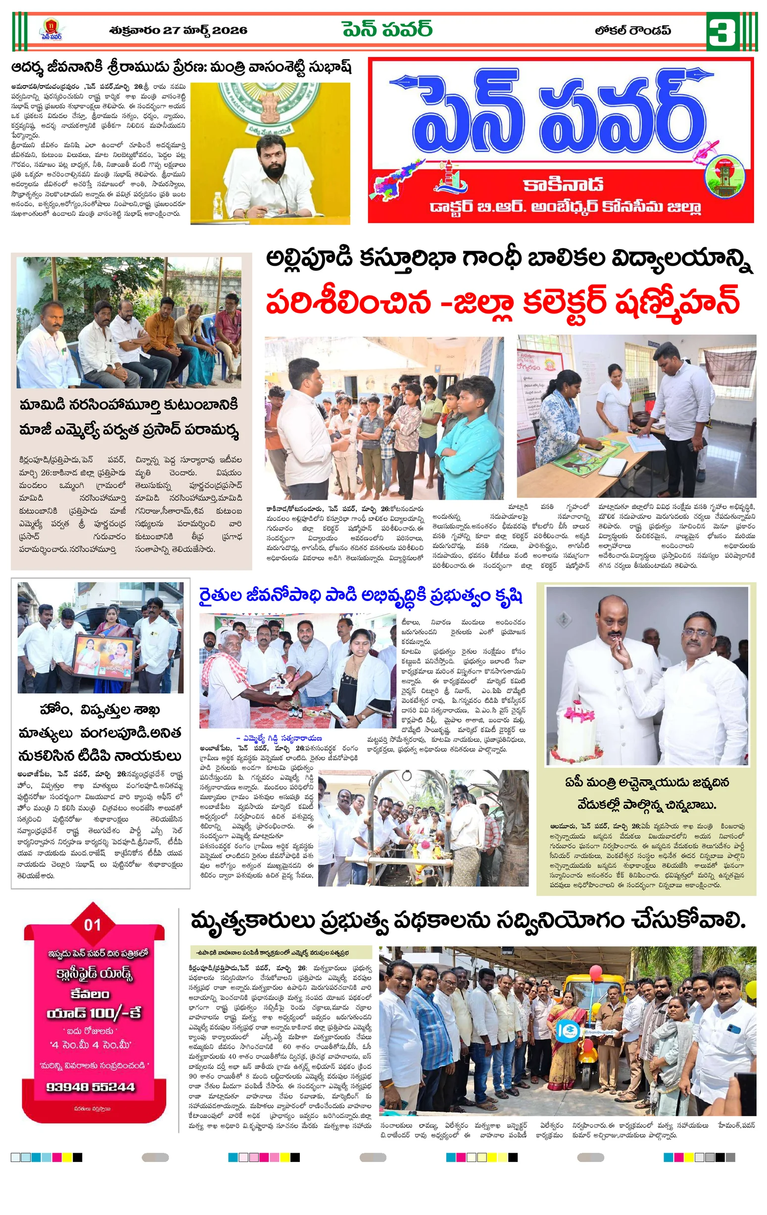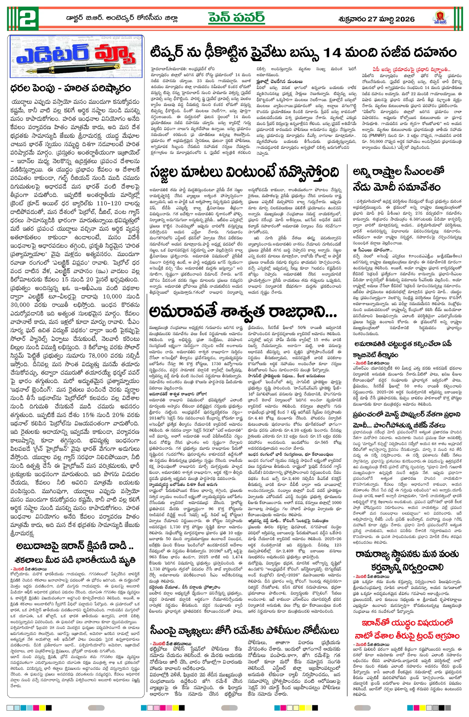 అవినీతి ఆరోపణలతో మదనపల్లె తహసీల్దార్ అటాచ్మద్యం మత్తులో కారు బీభత్సంసృష్టిక్షేత్రానికి ఆటంకాలు సృష్టించవద్దువికేంద్రీకరణే జగన్‌ లక్ష్యంఘనంగా ఈస్టర్ వేడుకలు…అణగారిన వర్గాల ఆశ జ్యోతి బాబు జగ్జీవన్‌రామ్…కాసుల కక్కుర్తి.. పేదవాడి ప్రాణానికి గండం!భువీకి ఐపీఎల్‌లో డబుల్ సెంచరీ..విమానం, హెలికాప్టర్లు కూల్చివేశామన్న టెహ్రాన్ఎయిర్‌లైన్స్ ఒత్తిడితో కేంద్రం యూటర్న్