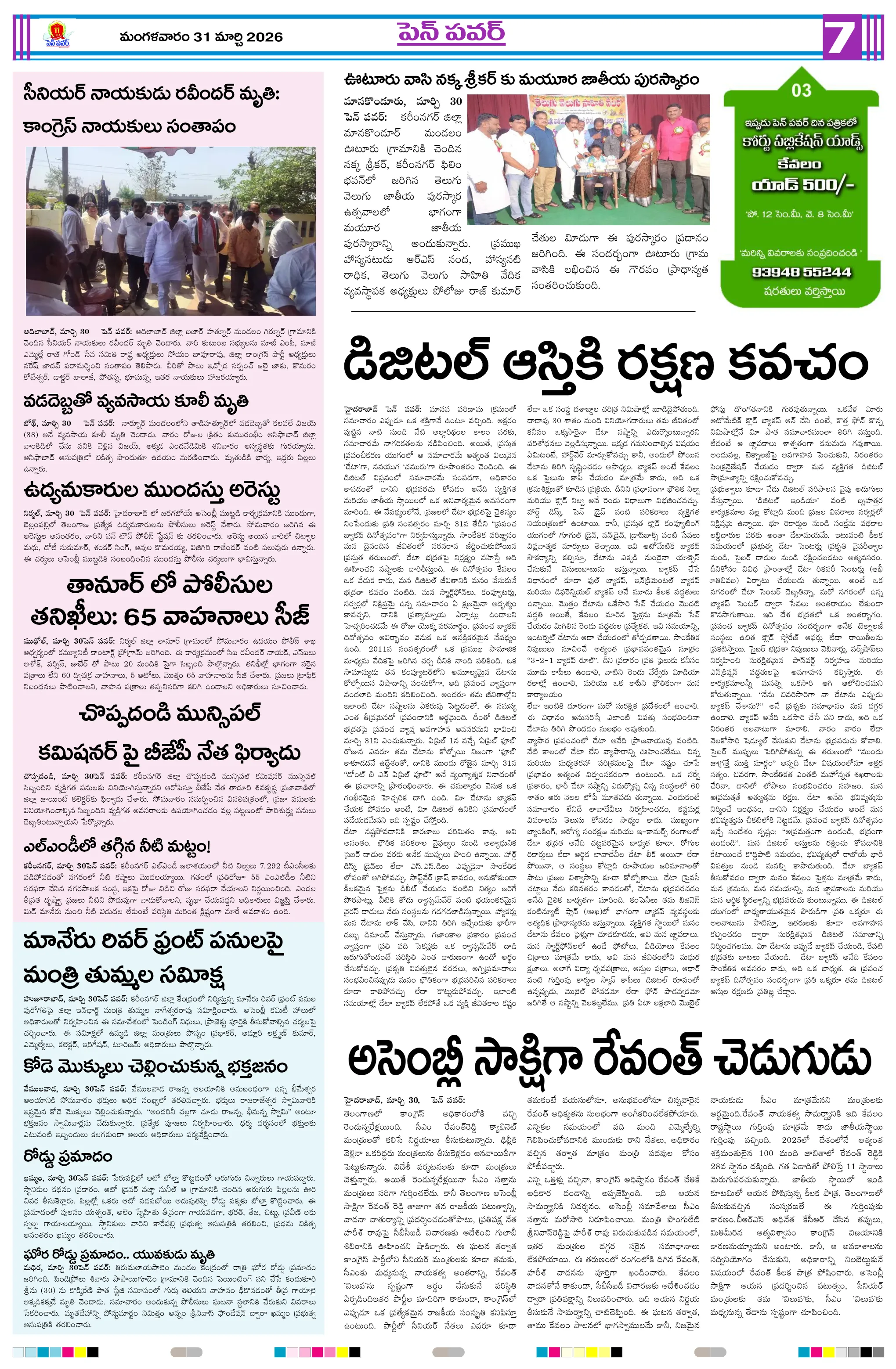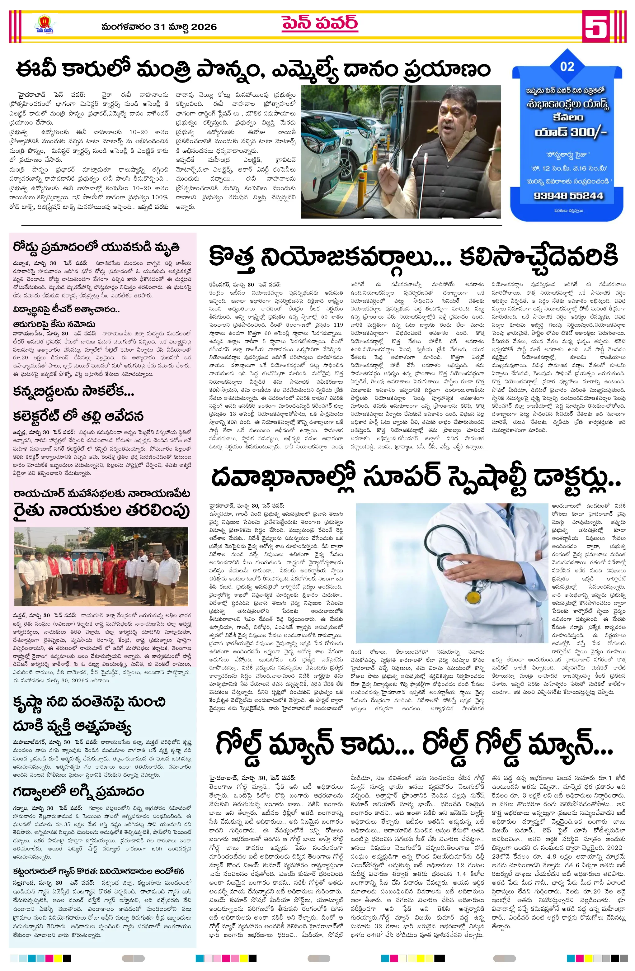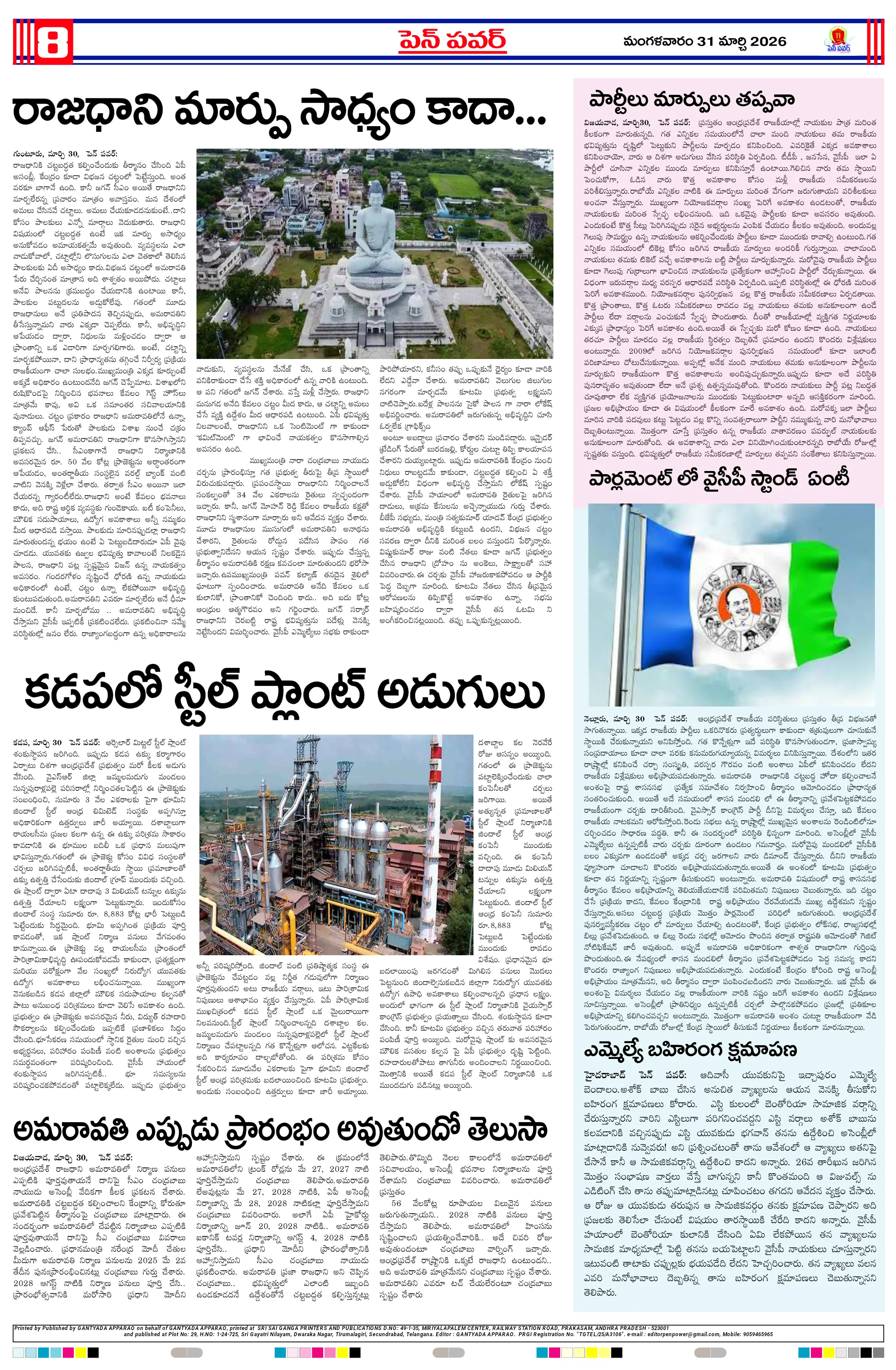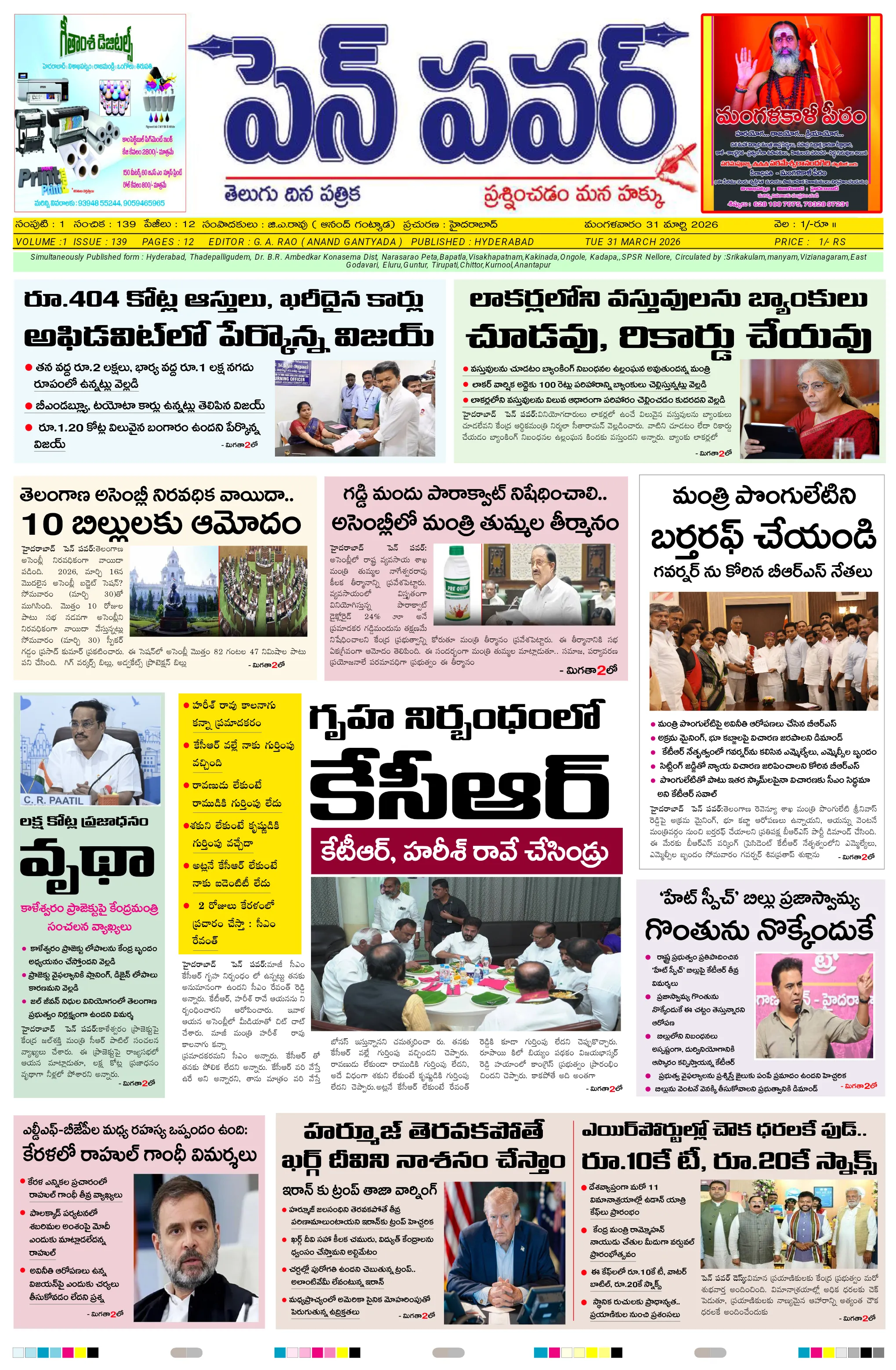 అవినీతి ఆరోపణలతో మదనపల్లె తహసీల్దార్ అటాచ్మద్యం మత్తులో కారు బీభత్సంసృష్టిక్షేత్రానికి ఆటంకాలు సృష్టించవద్దువికేంద్రీకరణే జగన్‌ లక్ష్యంఘనంగా ఈస్టర్ వేడుకలు…అణగారిన వర్గాల ఆశ జ్యోతి బాబు జగ్జీవన్‌రామ్…కాసుల కక్కుర్తి.. పేదవాడి ప్రాణానికి గండం!భువీకి ఐపీఎల్‌లో డబుల్ సెంచరీ..విమానం, హెలికాప్టర్లు కూల్చివేశామన్న టెహ్రాన్ఎయిర్‌లైన్స్ ఒత్తిడితో కేంద్రం యూటర్న్