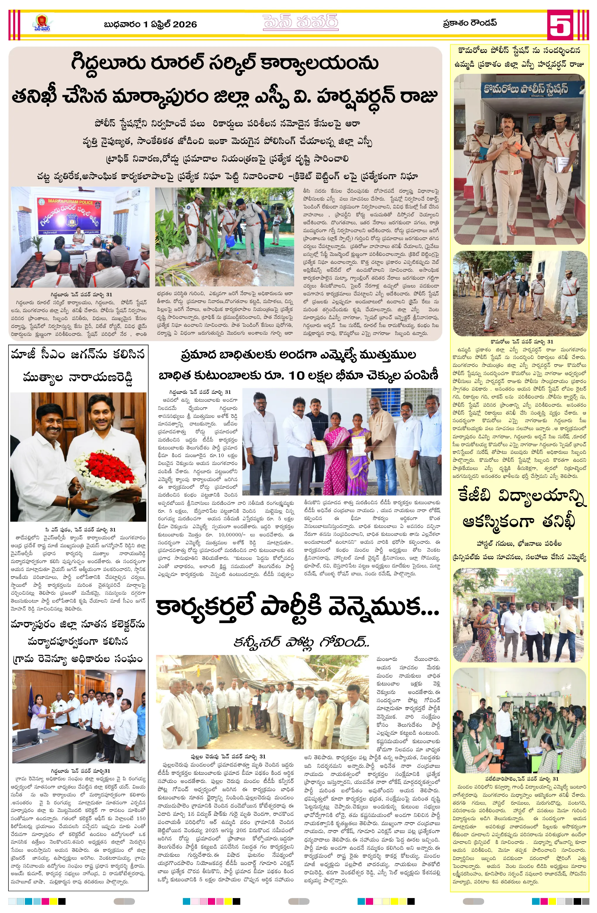 జాతీయ నేతల విగ్రహాల రక్షణకు పటిష్ట చర్యలుగ్రామాల అభివృద్ధికి ప్రత్యేక అధికారుల బాధ్యతల స్వీకారంగ్రామాల అభివృద్ధే లక్ష్యం!జగ్గంపేటలో పోలీసుల కార్డెన్ సెర్చ్మీ భూమి – మీ హక్కు కార్యక్రమంలో గిరిజన రైతులకు పట్టాల పంపిణీస్వర్ణ మొల్లేరు–జడేరు గ్రామాల్లో పర్యటించిన డిప్యూటీ ఎంపీడీవో గోపన్నదొరరెవెన్యూ సేవల్లో పారదర్శకతే ప్రభుత్వ లక్ష్యంగ్రామాభివృద్ధికి సమిష్టిగా సహకరించాలిఆరు పంచాయతీలకు ప్రత్యేక అధికారిగా అడ్డతీగల ఎంపీడీవో కుమార్..నీరులేని నీటి తొట్టెలు మూగజీవాల దాహార్తి తీరేదెలా?