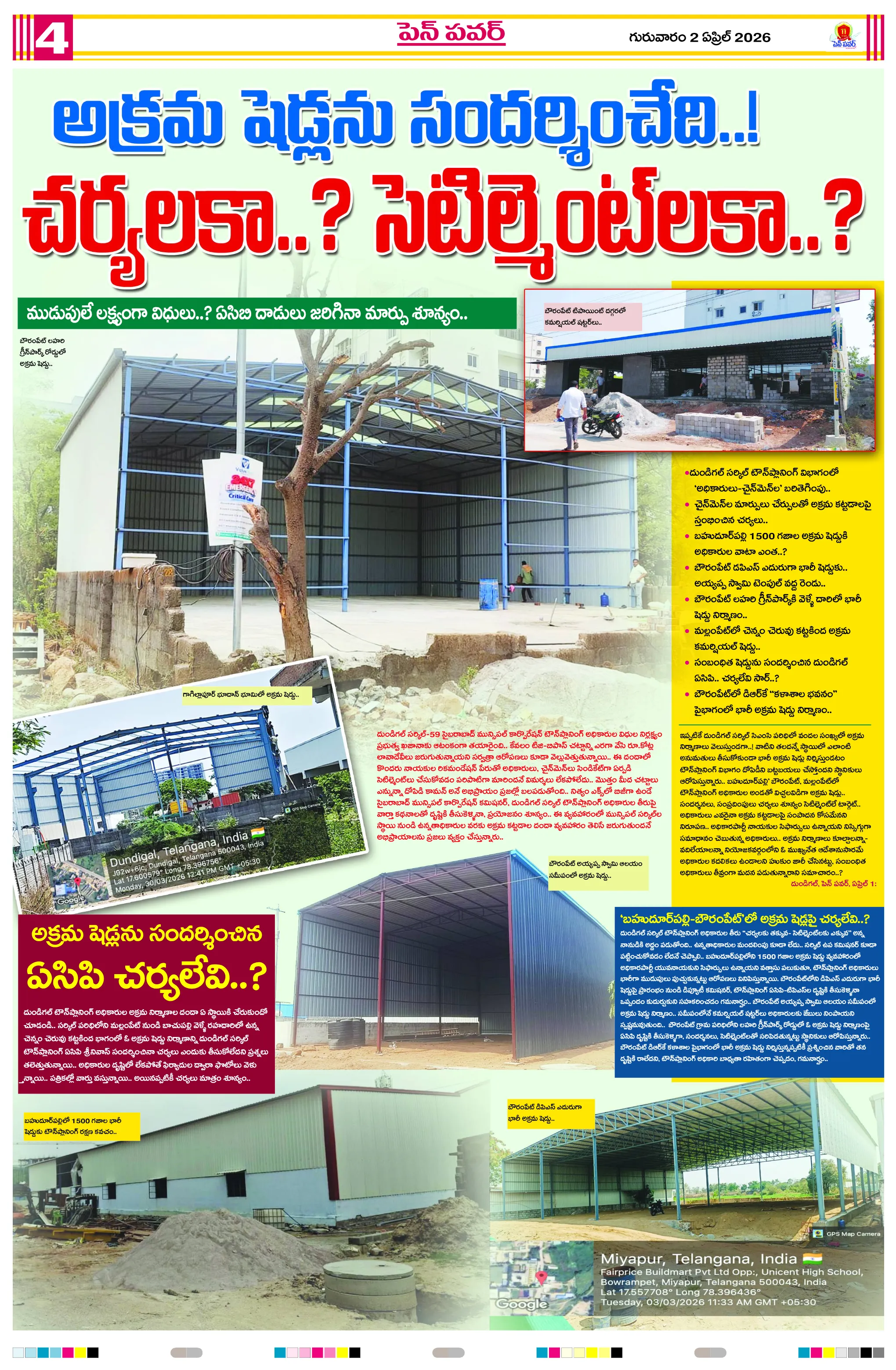 జాతీయ నేతల విగ్రహాల రక్షణకు పటిష్ట చర్యలుగ్రామాల అభివృద్ధికి ప్రత్యేక అధికారుల బాధ్యతల స్వీకారంగ్రామాల అభివృద్ధే లక్ష్యం!జగ్గంపేటలో పోలీసుల కార్డెన్ సెర్చ్మీ భూమి – మీ హక్కు కార్యక్రమంలో గిరిజన రైతులకు పట్టాల పంపిణీస్వర్ణ మొల్లేరు–జడేరు గ్రామాల్లో పర్యటించిన డిప్యూటీ ఎంపీడీవో గోపన్నదొరరెవెన్యూ సేవల్లో పారదర్శకతే ప్రభుత్వ లక్ష్యంగ్రామాభివృద్ధికి సమిష్టిగా సహకరించాలిఆరు పంచాయతీలకు ప్రత్యేక అధికారిగా అడ్డతీగల ఎంపీడీవో కుమార్..నీరులేని నీటి తొట్టెలు మూగజీవాల దాహార్తి తీరేదెలా?