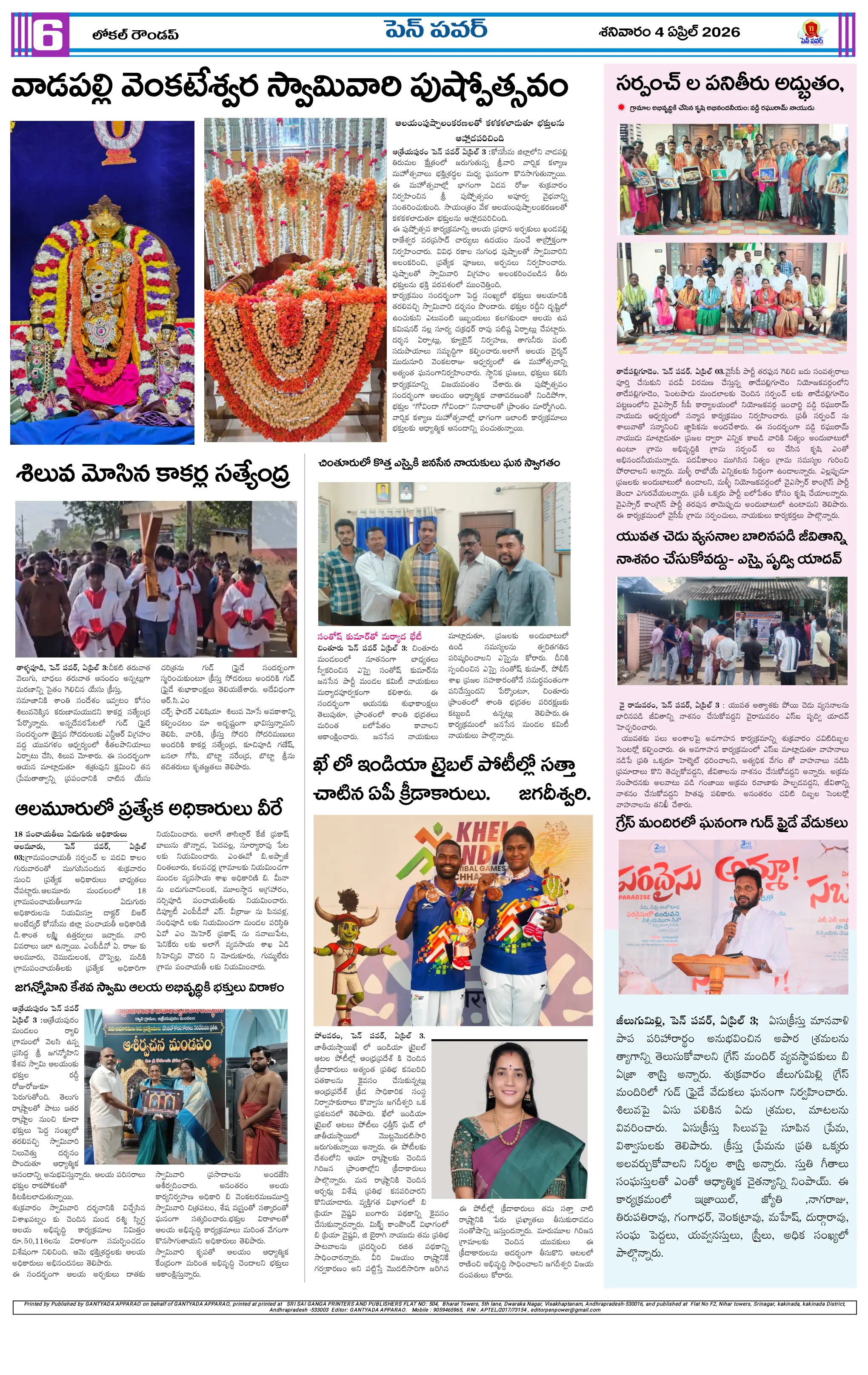 జగ్గంపేటలో పోలీసుల కార్డెన్ సెర్చ్మీ భూమి – మీ హక్కు కార్యక్రమంలో గిరిజన రైతులకు పట్టాల పంపిణీస్వర్ణ మొల్లేరు–జడేరు గ్రామాల్లో పర్యటించిన డిప్యూటీ ఎంపీడీవో గోపన్నదొరరెవెన్యూ సేవల్లో పారదర్శకతే ప్రభుత్వ లక్ష్యంగ్రామాభివృద్ధికి సమిష్టిగా సహకరించాలిఆరు పంచాయతీలకు ప్రత్యేక అధికారిగా అడ్డతీగల ఎంపీడీవో కుమార్..నీరులేని నీటి తొట్టెలు మూగజీవాల దాహార్తి తీరేదెలా?ఖేలో ఇండియా ట్రైబల్ ఫుట్ బాల్ లో మెరిసిన గిరిజన కుసుమాలుమహిళల ఆర్థికాభివృద్ధికి కుట్టు శిక్షణ ఎంతో దోహదంటీటీడీ చైర్మన్ ను వెంటనే తొలగించాలి