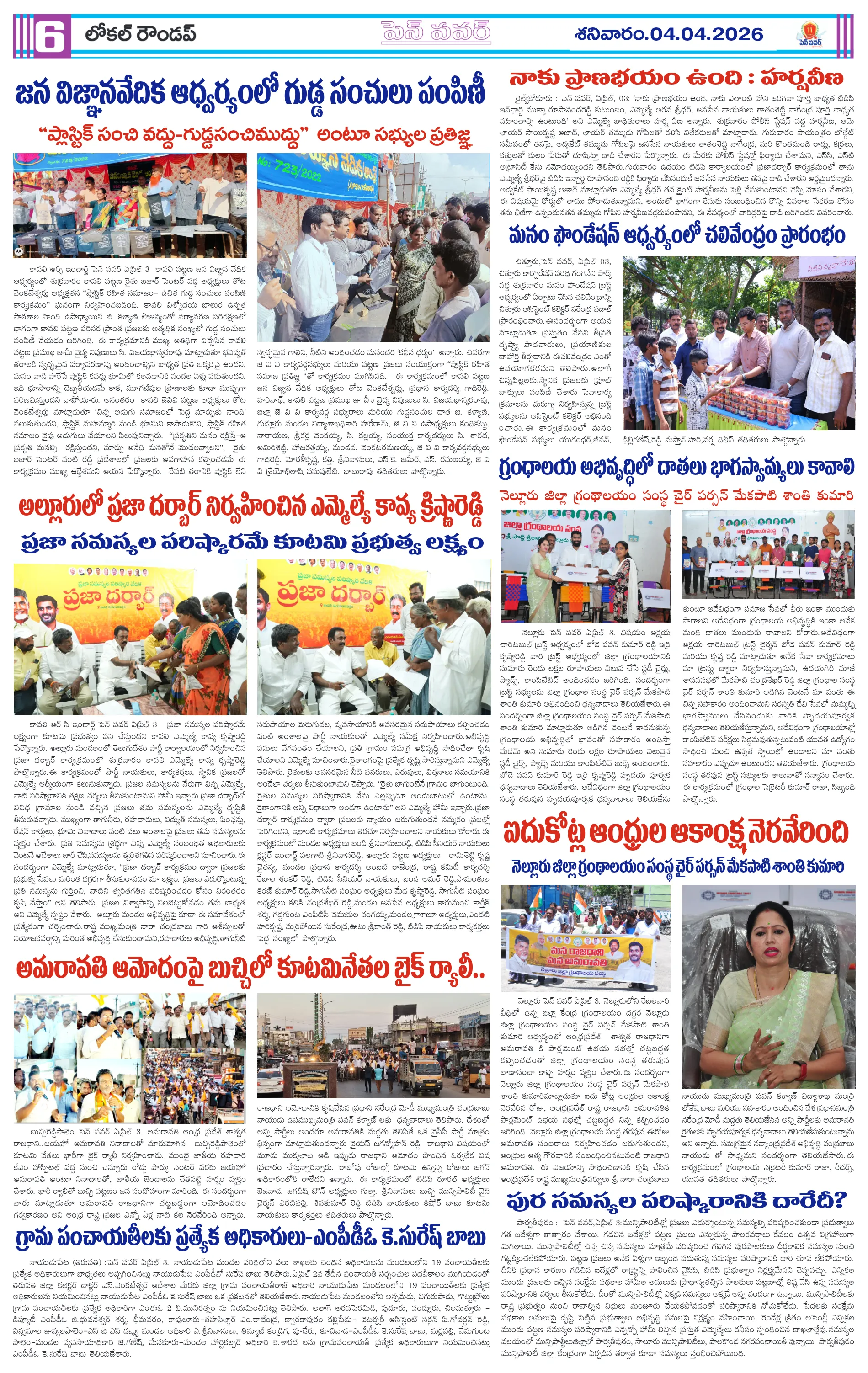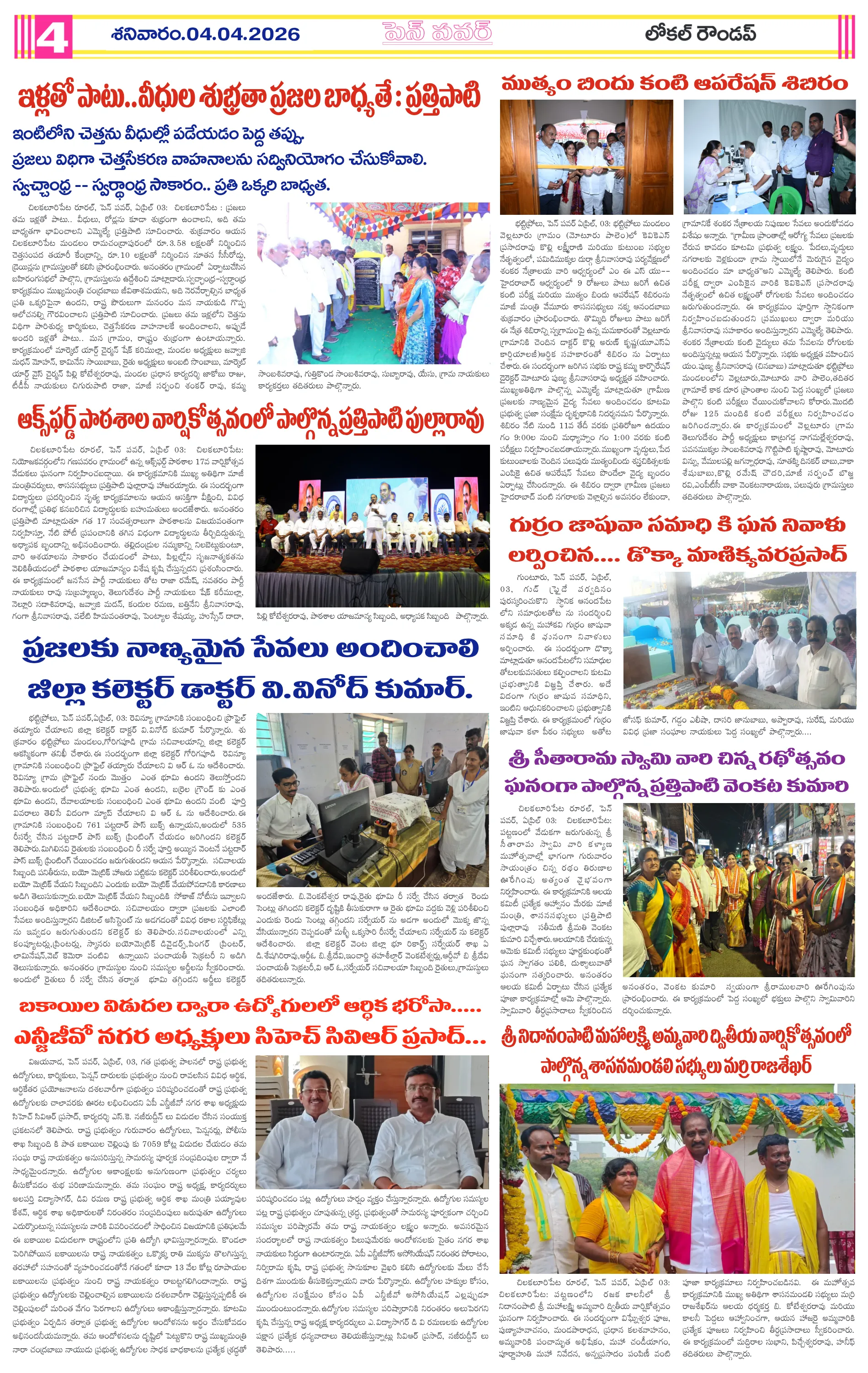 జగ్గంపేటలో పోలీసుల కార్డెన్ సెర్చ్మీ భూమి – మీ హక్కు కార్యక్రమంలో గిరిజన రైతులకు పట్టాల పంపిణీస్వర్ణ మొల్లేరు–జడేరు గ్రామాల్లో పర్యటించిన డిప్యూటీ ఎంపీడీవో గోపన్నదొరరెవెన్యూ సేవల్లో పారదర్శకతే ప్రభుత్వ లక్ష్యంగ్రామాభివృద్ధికి సమిష్టిగా సహకరించాలిఆరు పంచాయతీలకు ప్రత్యేక అధికారిగా అడ్డతీగల ఎంపీడీవో కుమార్..నీరులేని నీటి తొట్టెలు మూగజీవాల దాహార్తి తీరేదెలా?ఖేలో ఇండియా ట్రైబల్ ఫుట్ బాల్ లో మెరిసిన గిరిజన కుసుమాలుమహిళల ఆర్థికాభివృద్ధికి కుట్టు శిక్షణ ఎంతో దోహదంటీటీడీ చైర్మన్ ను వెంటనే తొలగించాలి