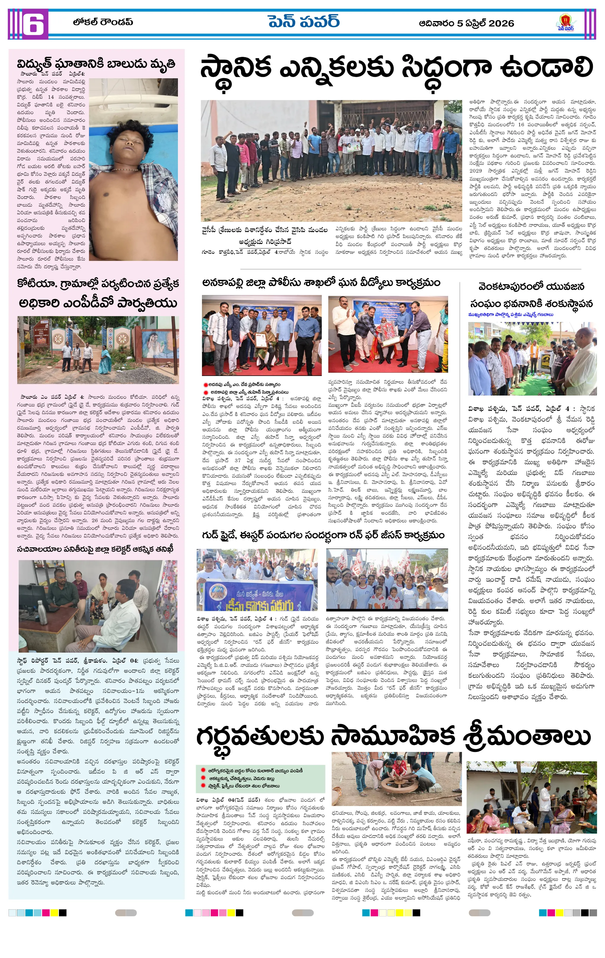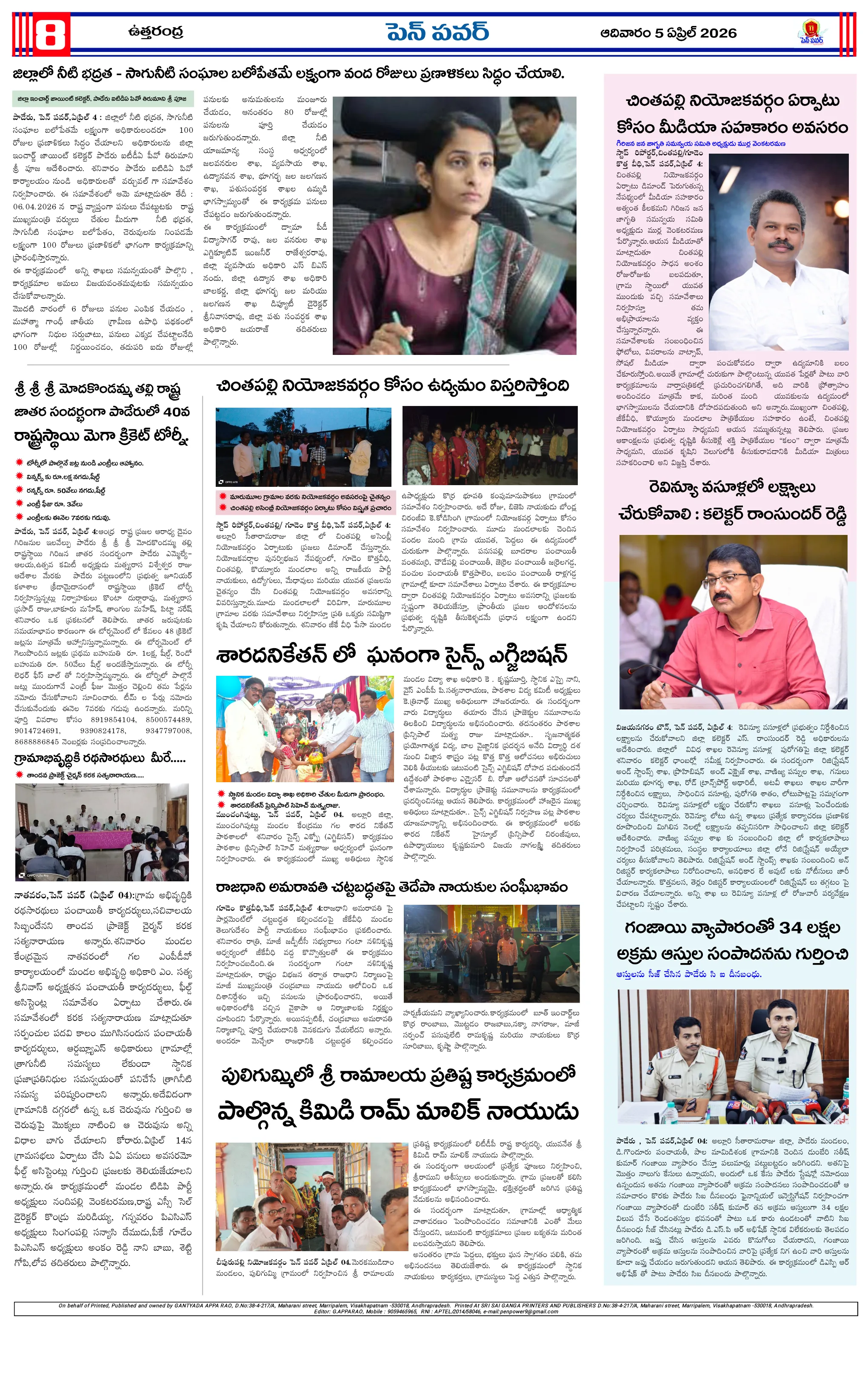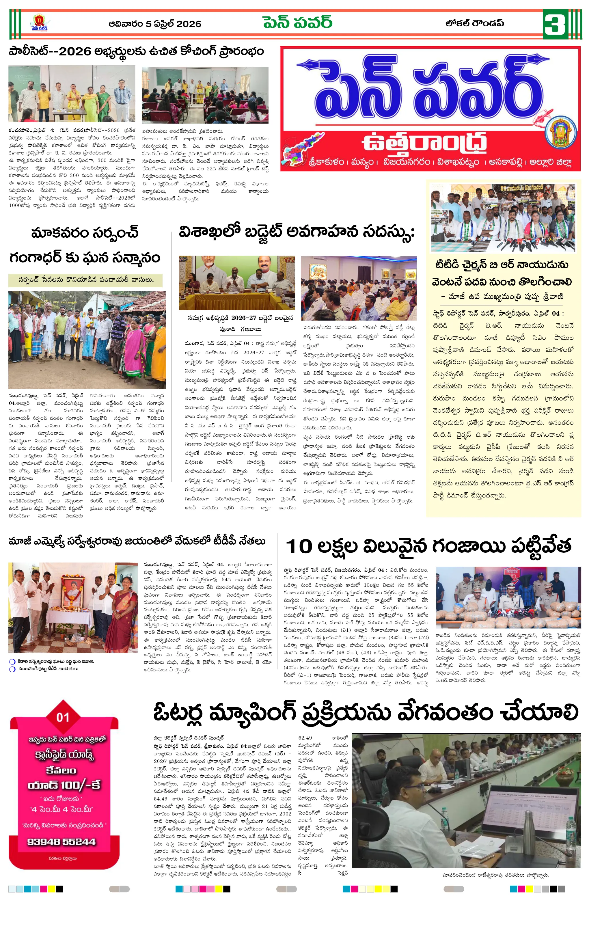 సైస్ కంప్యూటర్ ఎడ్యుకేషన్ ఆధ్వర్యంలో యువతకు ఉపాధిఘనంగాపోషణ్ పక్వాడ పక్షోత్సవాలు ప్రారంభంగిరిజన సంక్షేమ ఉపాధ్యాయుల రాష్ట్ర విద్యా సదస్సు ను జయప్రదం చేయండిలబ్బర్తిలో జల్ జీవన్ మిషన్ పనులకు శంకుస్థాపనతిరుపతిలో 10 అంతస్తుల మెగా బస్ టెర్మినల్..కర్నూలుకే ఆ  మూడు కీలక కార్యాలయాలు.. హైకోర్టు కీలక తీర్పుచిలకలూరిపేటలో కారు బీభత్సంసిక్కోలు నుంచి తిరుమలకు హమ్ సఫర్గంగవరం జడ్పీ ఉన్నత పాఠశాలలో ఏజెన్సీ డీఈవో తనిఖీఏపీ రాజకీయాల్లో కుల సమీకరణాల హీట్..