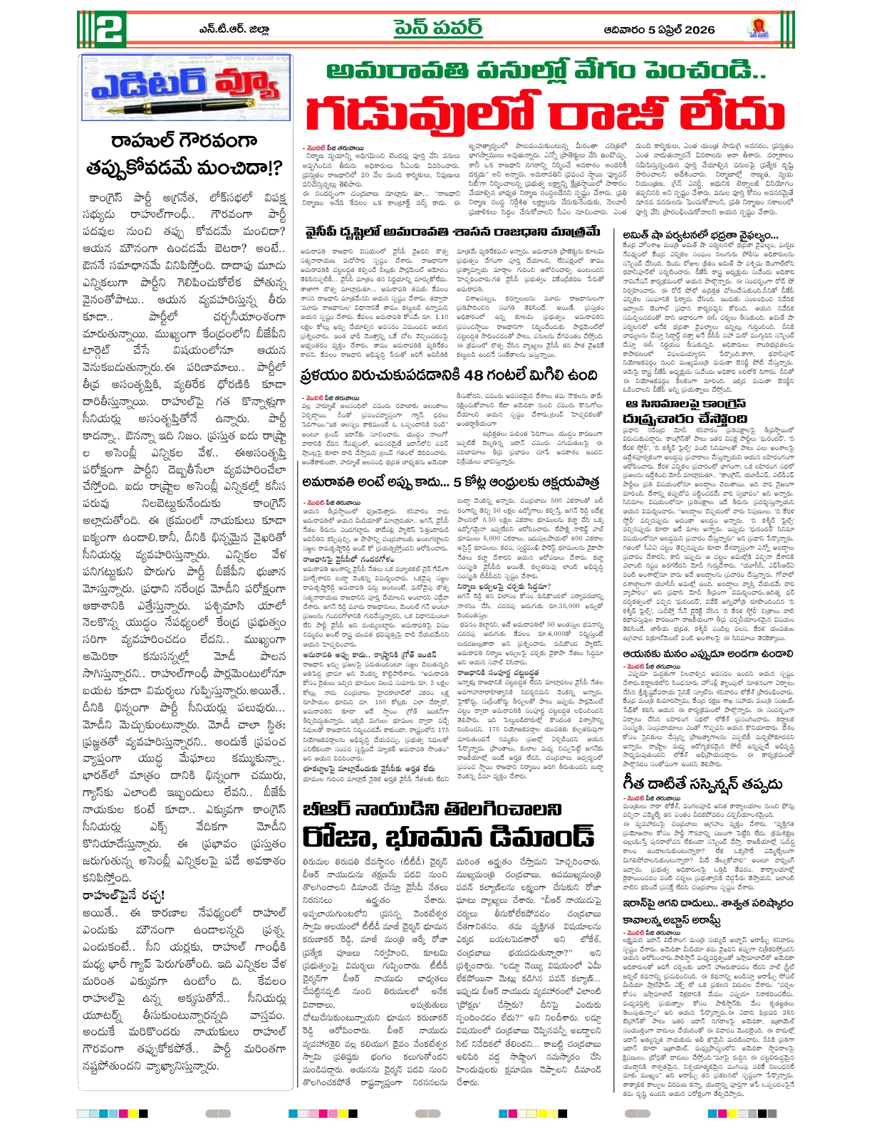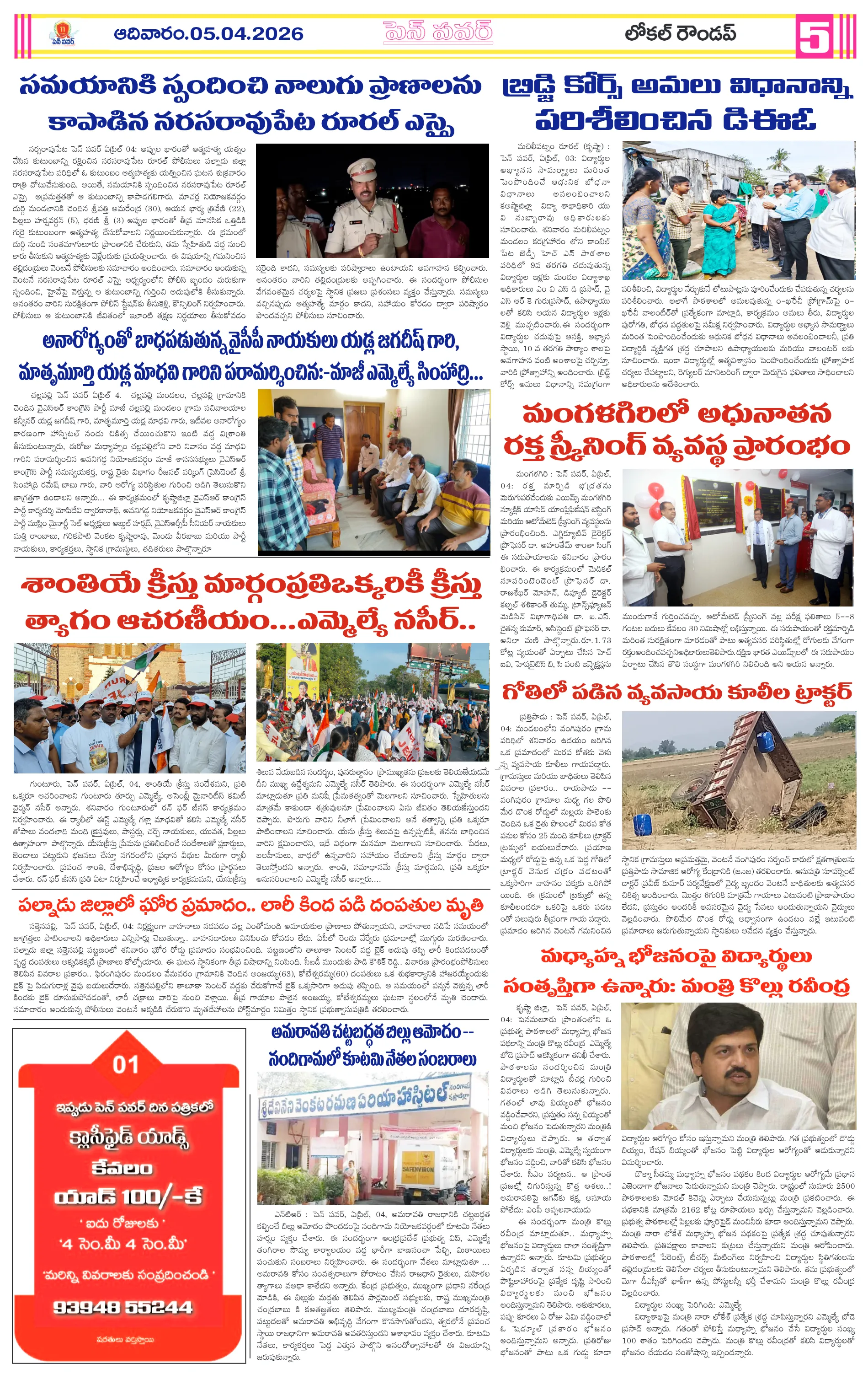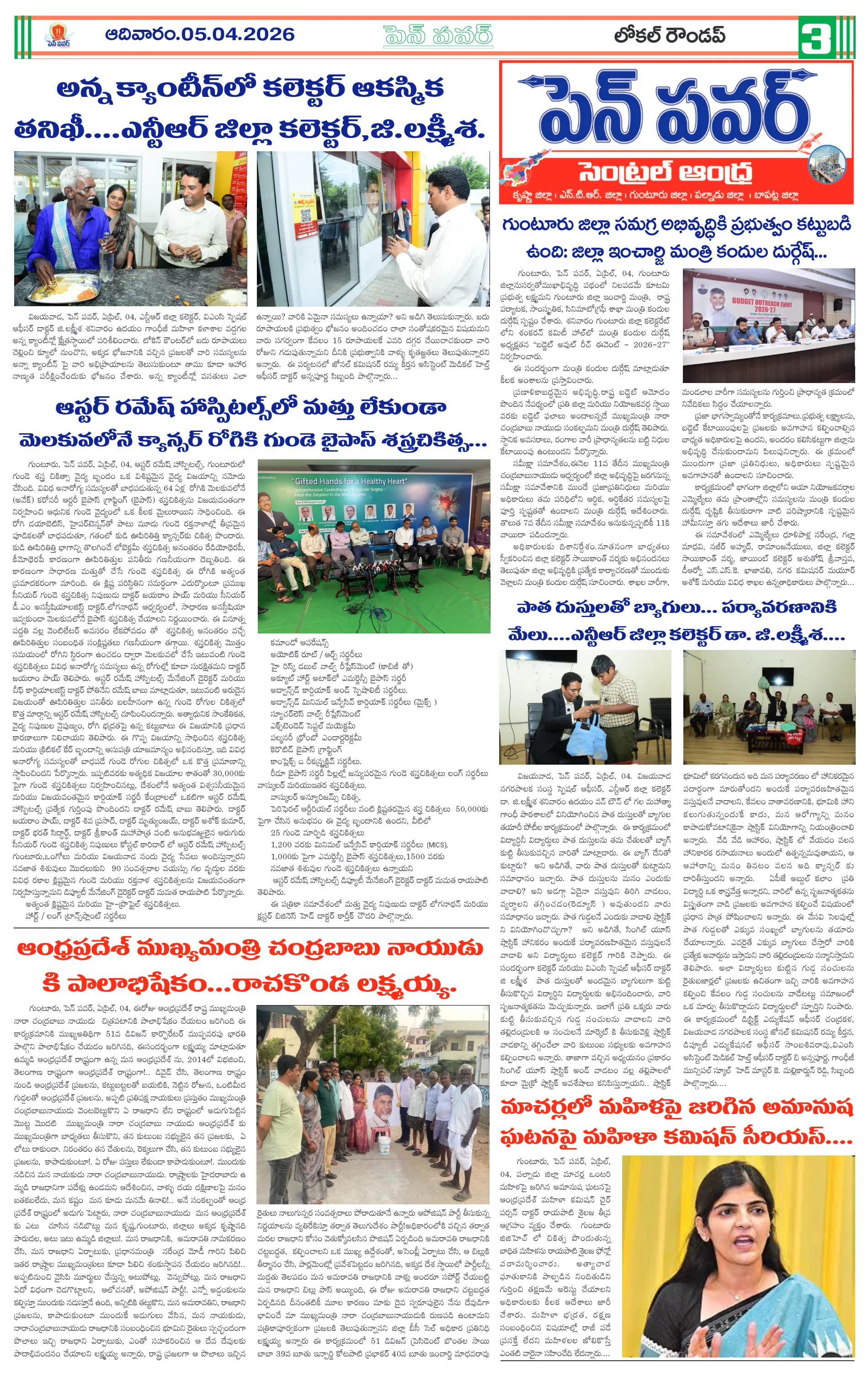 సైస్ కంప్యూటర్ ఎడ్యుకేషన్ ఆధ్వర్యంలో యువతకు ఉపాధిఘనంగాపోషణ్ పక్వాడ పక్షోత్సవాలు ప్రారంభంగిరిజన సంక్షేమ ఉపాధ్యాయుల రాష్ట్ర విద్యా సదస్సు ను జయప్రదం చేయండిలబ్బర్తిలో జల్ జీవన్ మిషన్ పనులకు శంకుస్థాపనతిరుపతిలో 10 అంతస్తుల మెగా బస్ టెర్మినల్..కర్నూలుకే ఆ  మూడు కీలక కార్యాలయాలు.. హైకోర్టు కీలక తీర్పుచిలకలూరిపేటలో కారు బీభత్సంసిక్కోలు నుంచి తిరుమలకు హమ్ సఫర్గంగవరం జడ్పీ ఉన్నత పాఠశాలలో ఏజెన్సీ డీఈవో తనిఖీఏపీ రాజకీయాల్లో కుల సమీకరణాల హీట్..