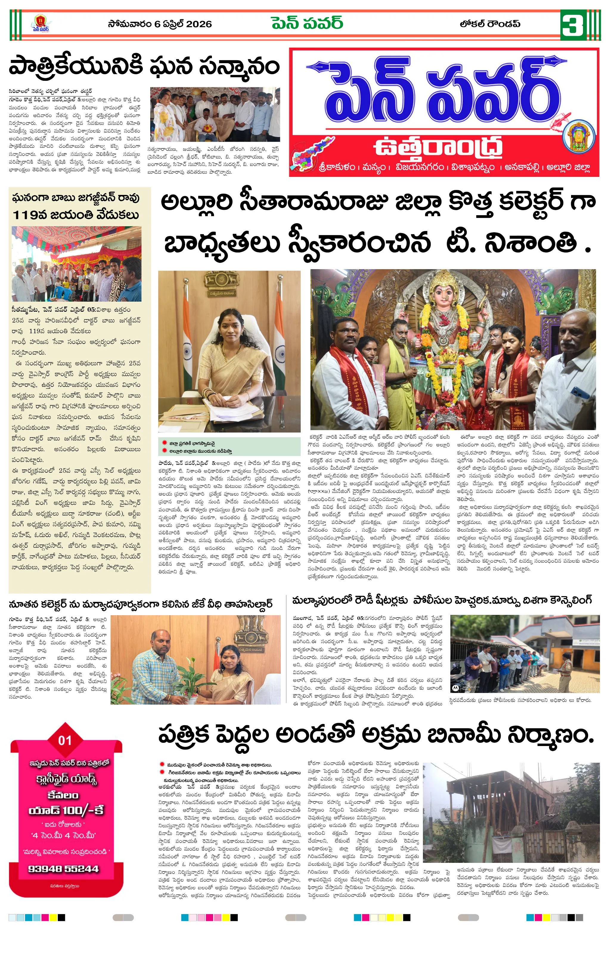 అవినీతి ఆరోపణలతో మదనపల్లె తహసీల్దార్ అటాచ్మద్యం మత్తులో కారు బీభత్సంసృష్టిక్షేత్రానికి ఆటంకాలు సృష్టించవద్దువికేంద్రీకరణే జగన్‌ లక్ష్యంఘనంగా ఈస్టర్ వేడుకలు…అణగారిన వర్గాల ఆశ జ్యోతి బాబు జగ్జీవన్‌రామ్…కాసుల కక్కుర్తి.. పేదవాడి ప్రాణానికి గండం!భువీకి ఐపీఎల్‌లో డబుల్ సెంచరీ..విమానం, హెలికాప్టర్లు కూల్చివేశామన్న టెహ్రాన్ఎయిర్‌లైన్స్ ఒత్తిడితో కేంద్రం యూటర్న్