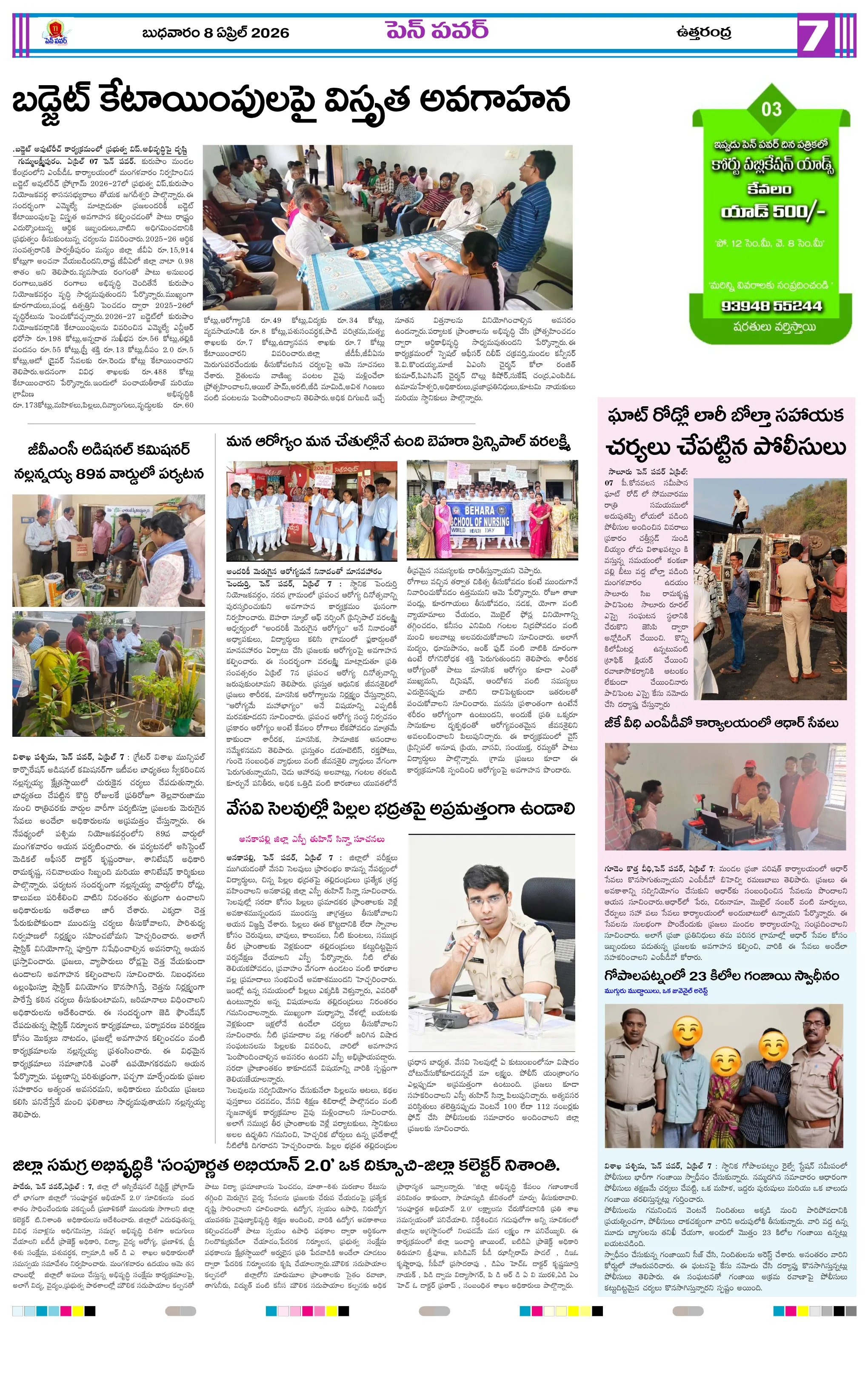 తిరుపతిలో 10 అంతస్తుల మెగా బస్ టెర్మినల్..కర్నూలుకే ఆ  మూడు కీలక కార్యాలయాలు.. హైకోర్టు కీలక తీర్పుచిలకలూరిపేటలో కారు బీభత్సంసిక్కోలు నుంచి తిరుమలకు హమ్ సఫర్గంగవరం జడ్పీ ఉన్నత పాఠశాలలో ఏజెన్సీ డీఈవో తనిఖీఏపీ రాజకీయాల్లో కుల సమీకరణాల హీట్..2029 లక్ష్యంగా వైసీపీ కొత్త స్ట్రాటజీ..పవర్ కారిడార్ నుంచి జైలు గోడల వరకూ.. కళింగిరి శాంతిఅమరావతిలో మినీ ఢిల్లీఒక ఖాకీ డ్యూటీ చేస్తే ఎలా ఉంటుంది..?