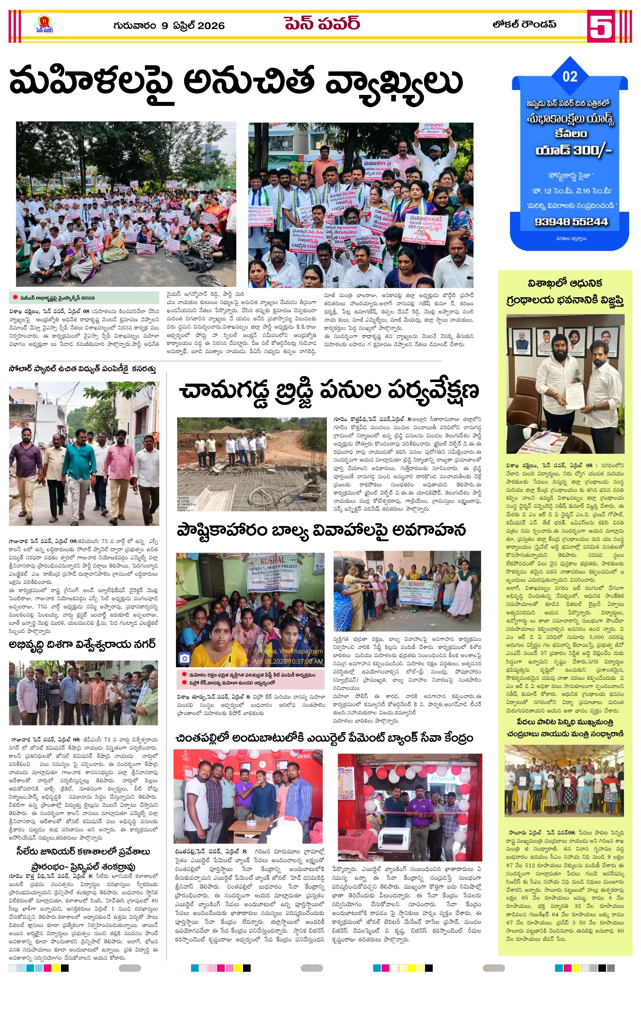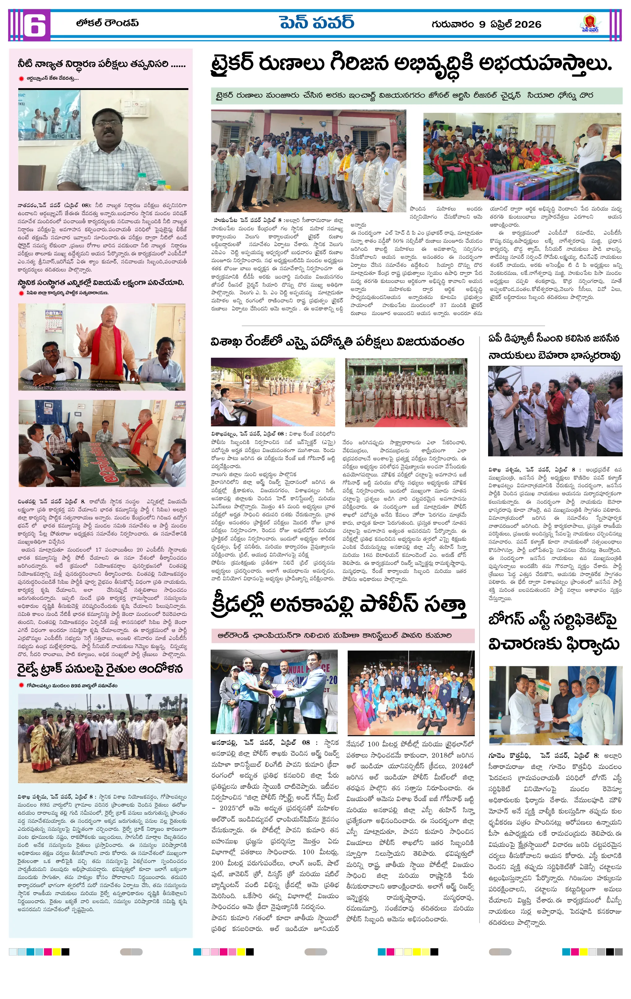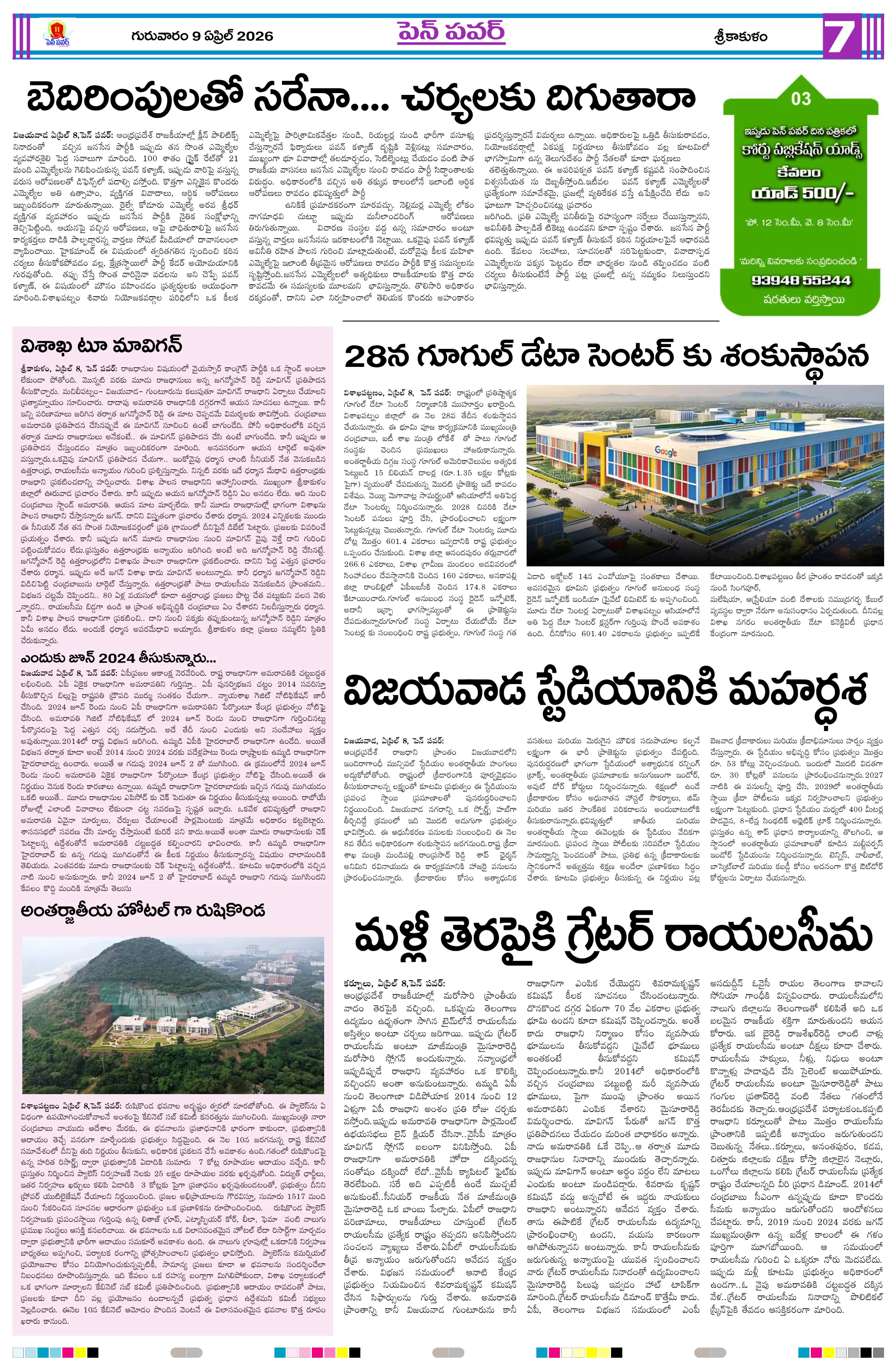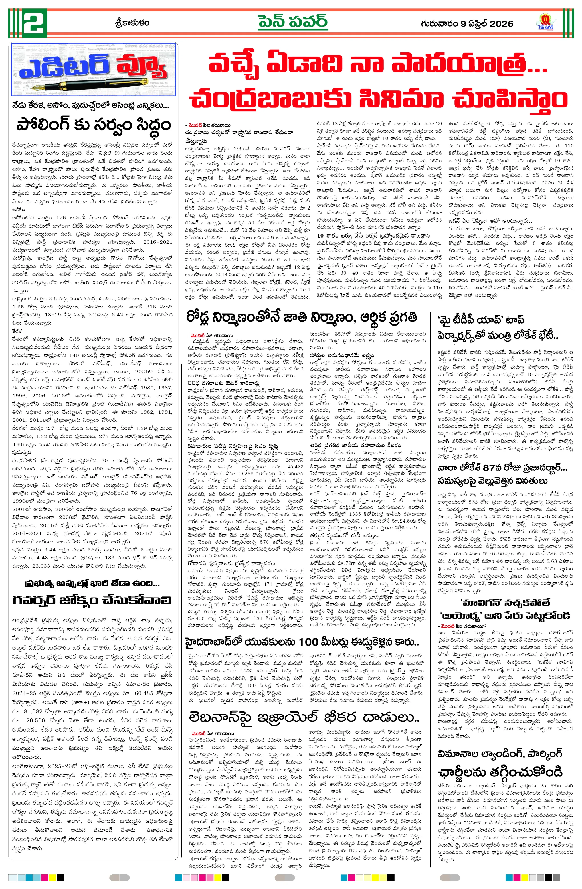 గిరిజన సంక్షేమ ఉపాధ్యాయుల రాష్ట్ర విద్యా సదస్సు ను జయప్రదం చేయండిలబ్బర్తిలో జల్ జీవన్ మిషన్ పనులకు శంకుస్థాపనతిరుపతిలో 10 అంతస్తుల మెగా బస్ టెర్మినల్..కర్నూలుకే ఆ  మూడు కీలక కార్యాలయాలు.. హైకోర్టు కీలక తీర్పుచిలకలూరిపేటలో కారు బీభత్సంసిక్కోలు నుంచి తిరుమలకు హమ్ సఫర్గంగవరం జడ్పీ ఉన్నత పాఠశాలలో ఏజెన్సీ డీఈవో తనిఖీఏపీ రాజకీయాల్లో కుల సమీకరణాల హీట్..2029 లక్ష్యంగా వైసీపీ కొత్త స్ట్రాటజీ..పవర్ కారిడార్ నుంచి జైలు గోడల వరకూ.. కళింగిరి శాంతి