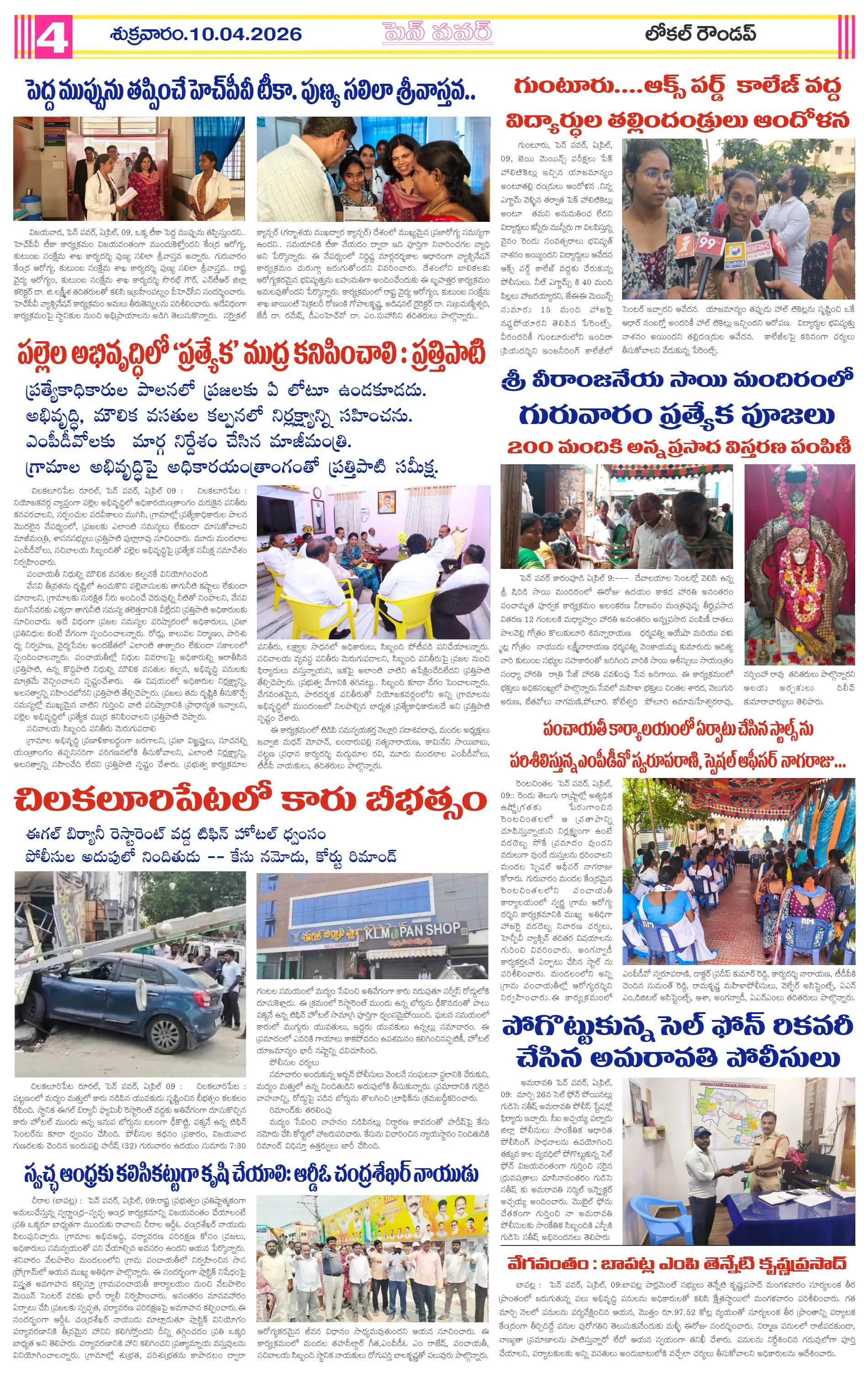 కొండవీడు కోటలో విషాదం: ప్రేమజంట ఆత్మహత్యఅంతర్మథనంలో మాగుంట కుటుంబం..మహామనుల విగ్రహాల ఆవిష్కరణకు జయప్రదం చేయండిమహిళల భద్రతపై ఉపాధి కూలీలకు అవగాహనయారాడలో వెల్లువెత్తిన నిరసన’జెట్టీ’ వద్దు – ‘టూరిజం’ ముద్దు!జగ్గంపేటలో ఎమ్మెల్యే ప్రజాదర్బార్మీ పనితీరే మీ ప్రోగ్రెస్ రిపోర్ట్…2029 వైసీపీ స్లోగన్స్ రెడీ‘జన నాయకన్’ విడుదలకు ముందే లీక్దుర్గమాంబ ఆలయ వార్షికోత్సవం లో పల్లా