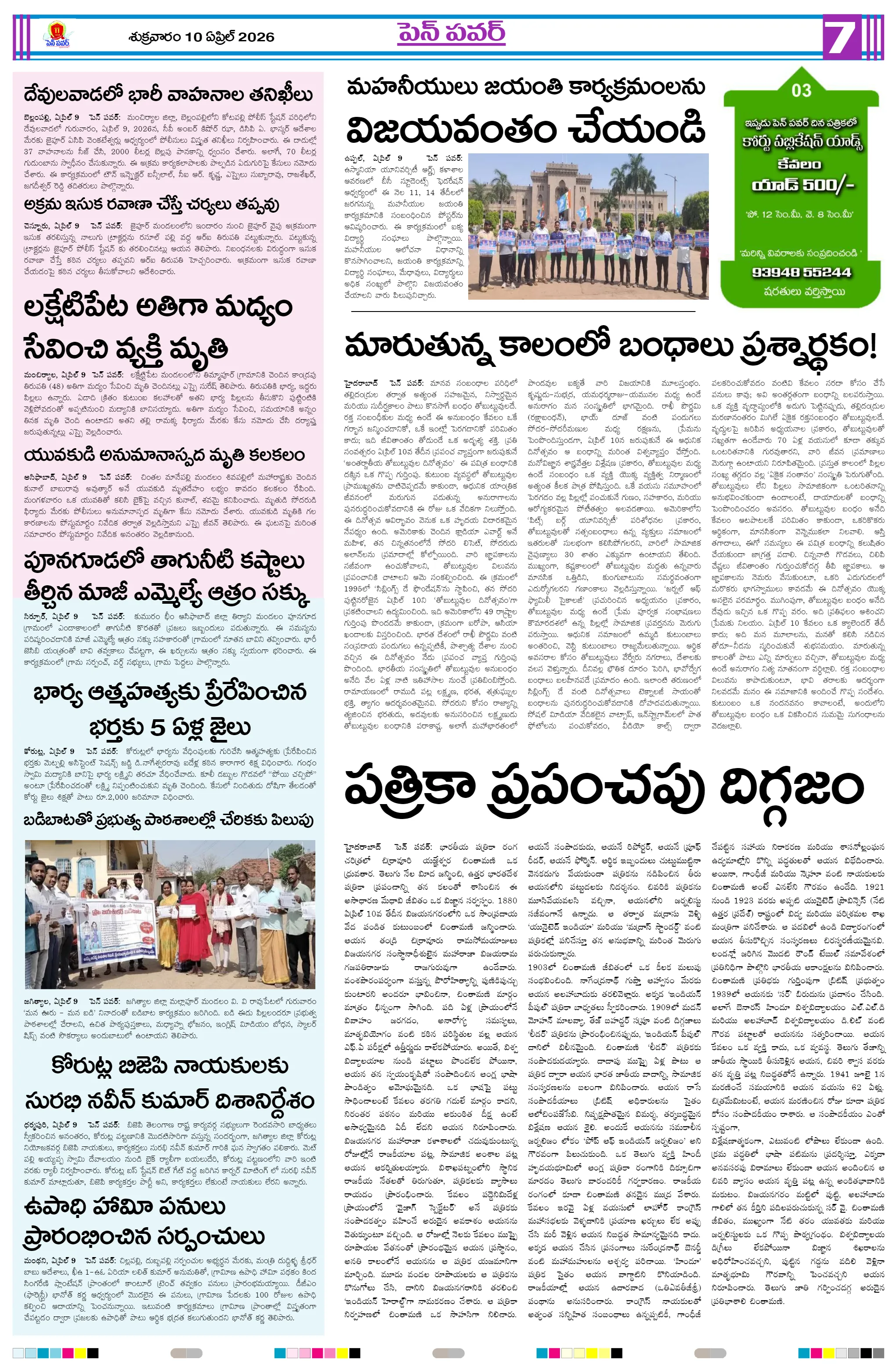 కొండవీడు కోటలో విషాదం: ప్రేమజంట ఆత్మహత్యఅంతర్మథనంలో మాగుంట కుటుంబం..మహామనుల విగ్రహాల ఆవిష్కరణకు జయప్రదం చేయండిమహిళల భద్రతపై ఉపాధి కూలీలకు అవగాహనయారాడలో వెల్లువెత్తిన నిరసన’జెట్టీ’ వద్దు – ‘టూరిజం’ ముద్దు!జగ్గంపేటలో ఎమ్మెల్యే ప్రజాదర్బార్మీ పనితీరే మీ ప్రోగ్రెస్ రిపోర్ట్…2029 వైసీపీ స్లోగన్స్ రెడీ‘జన నాయకన్’ విడుదలకు ముందే లీక్దుర్గమాంబ ఆలయ వార్షికోత్సవం లో పల్లా