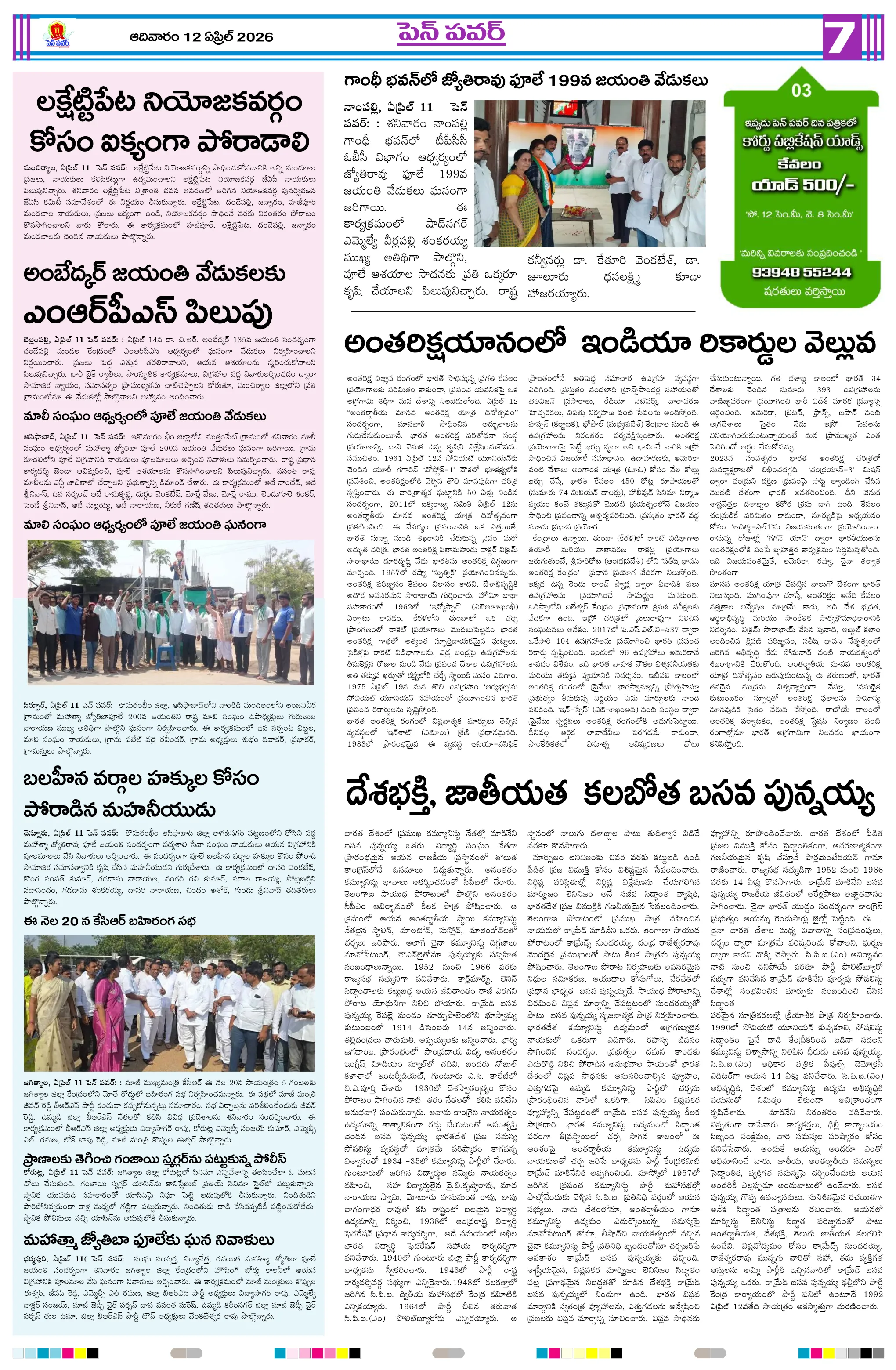జనసేన నాయకుడిపై కులదూషణ ఆరోపణలుజర్రెల కొత్తూరులో భారీ పాము సంచారం – గ్రామస్థుల్లో భయాందోళననేలపాడు గ్రామంలో ఘనంగా మహాత్మా జ్యోతిరావు పూలే జయంతి వేడుక అల్లూరి జిల్లాలో ఘనంగా మహాత్మా జ్యోతిరావు పూలే జయంతి వేడుకలుచింతపల్లి నియోజకవర్గం పునరుద్ధరణ అత్యవసరం: స్థానికులు, నేతల డిమాండ్పొర్లుబందలో వివాహ వేడుకలో పాల్గొన్న డాక్టర్ వంపూరు గంగులయ్యమాజీ సర్పంచ్ దంపతులకు ఎంపీటీసీ సన్మానంఅల్లూరి జిల్లా జాయింట్ కలెక్టర్‌గా బాధ్యతలు స్వీకరించిన తిరుమాని శ్రీపూజపాడేరు ఐటిడిఏ ప్రాజెక్ట్ అధికారిగా ఆదిత్య వర్మ బాధ్యతలు స్వీకారంజనగణన–2027కు గంగవరం మండలం సిద్ధం