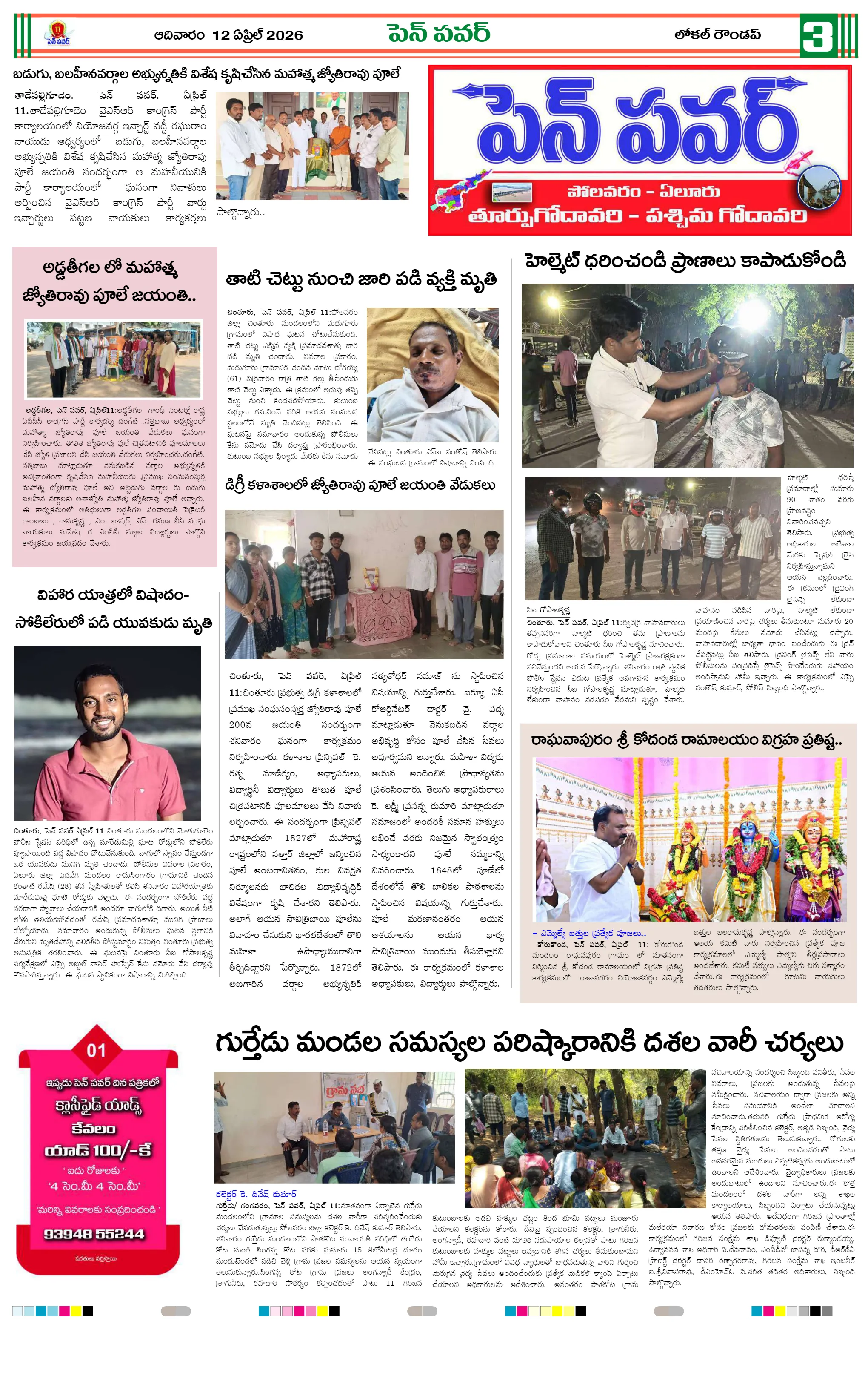 జనసేన నాయకుడిపై కులదూషణ ఆరోపణలుజర్రెల కొత్తూరులో భారీ పాము సంచారం – గ్రామస్థుల్లో భయాందోళననేలపాడు గ్రామంలో ఘనంగా మహాత్మా జ్యోతిరావు పూలే జయంతి వేడుక అల్లూరి జిల్లాలో ఘనంగా మహాత్మా జ్యోతిరావు పూలే జయంతి వేడుకలుచింతపల్లి నియోజకవర్గం పునరుద్ధరణ అత్యవసరం: స్థానికులు, నేతల డిమాండ్పొర్లుబందలో వివాహ వేడుకలో పాల్గొన్న డాక్టర్ వంపూరు గంగులయ్యమాజీ సర్పంచ్ దంపతులకు ఎంపీటీసీ సన్మానంఅల్లూరి జిల్లా జాయింట్ కలెక్టర్‌గా బాధ్యతలు స్వీకరించిన తిరుమాని శ్రీపూజపాడేరు ఐటిడిఏ ప్రాజెక్ట్ అధికారిగా ఆదిత్య వర్మ బాధ్యతలు స్వీకారంజనగణన–2027కు గంగవరం మండలం సిద్ధం