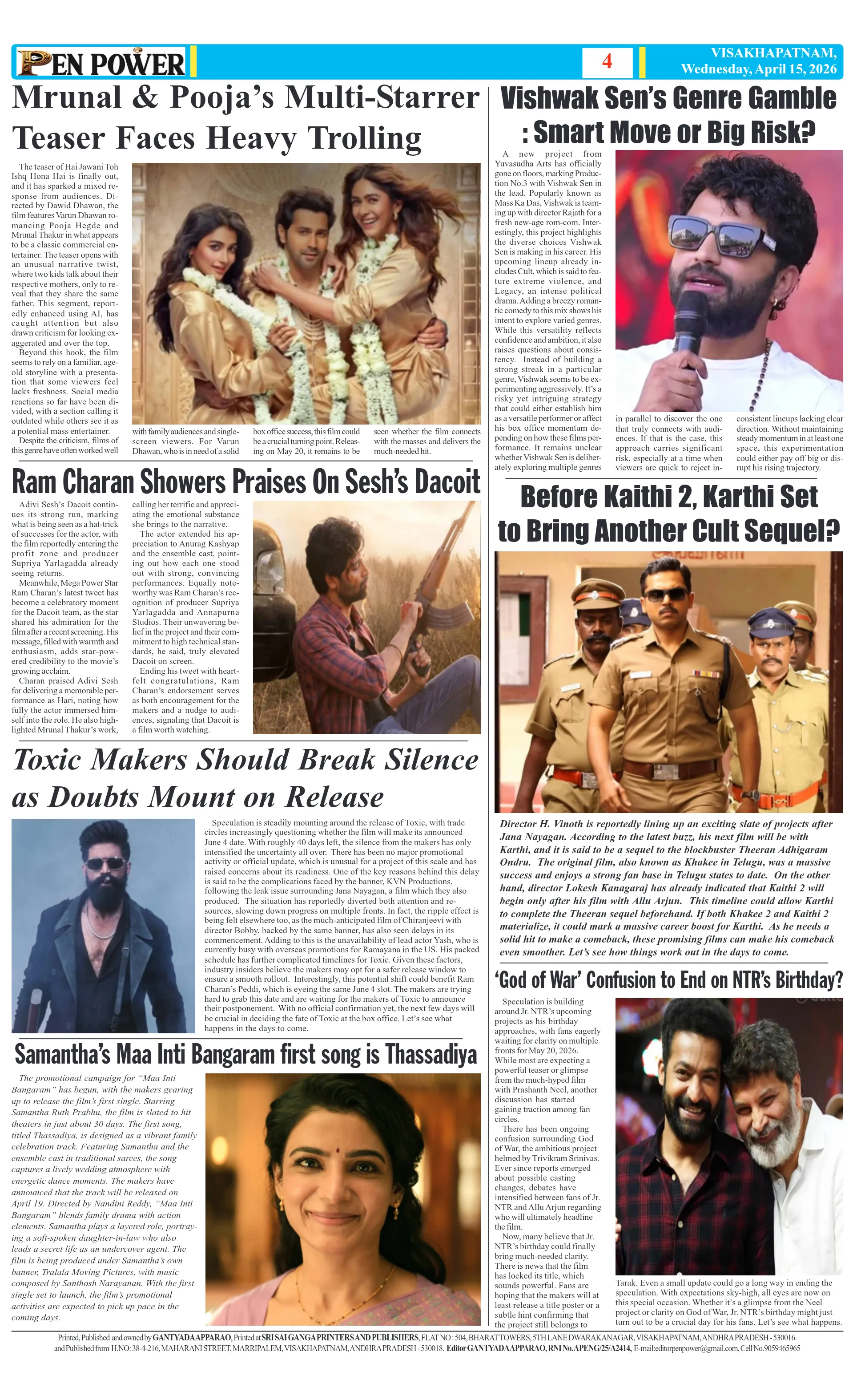 జీకే వీధిలో స్వర్ణాంధ్ర–స్వచ్ఛాంధ్ర పరిశుభ్రత కార్యక్రమంజీకే వీధిలో దంచికొట్టిన వడగళ్ల వర్షందామనపల్లి పంచాయతీలో స్వర్ణాంధ్ర స్వచ్ఛ్ ఆంధ్ర కార్యక్రమంస్వర్ణాంధ్ర – స్వచ్ఛ్ ఆంధ్ర కార్యక్రమాలను పరిశీలించిన ఎంపీడీవో వడగాలుల నేపథ్యంలో ముందస్తు చర్యలపై అవగాహన – ఎంపీడీఓ సూచనలుపాతమంజేరు లో ఘనంగా గంటాలమ్మ విగ్రహ ప్రతిష్ఠరింతాడ సమీపంలో రోడ్డు ప్రమాదం – యువకుడు మృతిపాకలపాడులో ఆపరేషన్ వజ్రప్రహార్ కార్డన్ అండ్ సర్చ్అడ్డతీగల సంత మార్కెట్ ‘ఆసీలు’ బహిరంగ వేలం..డ్రోన్ వినియోగంతో ఓపెన్ డ్రింకింగ్‌పై కేసులు నమోదు