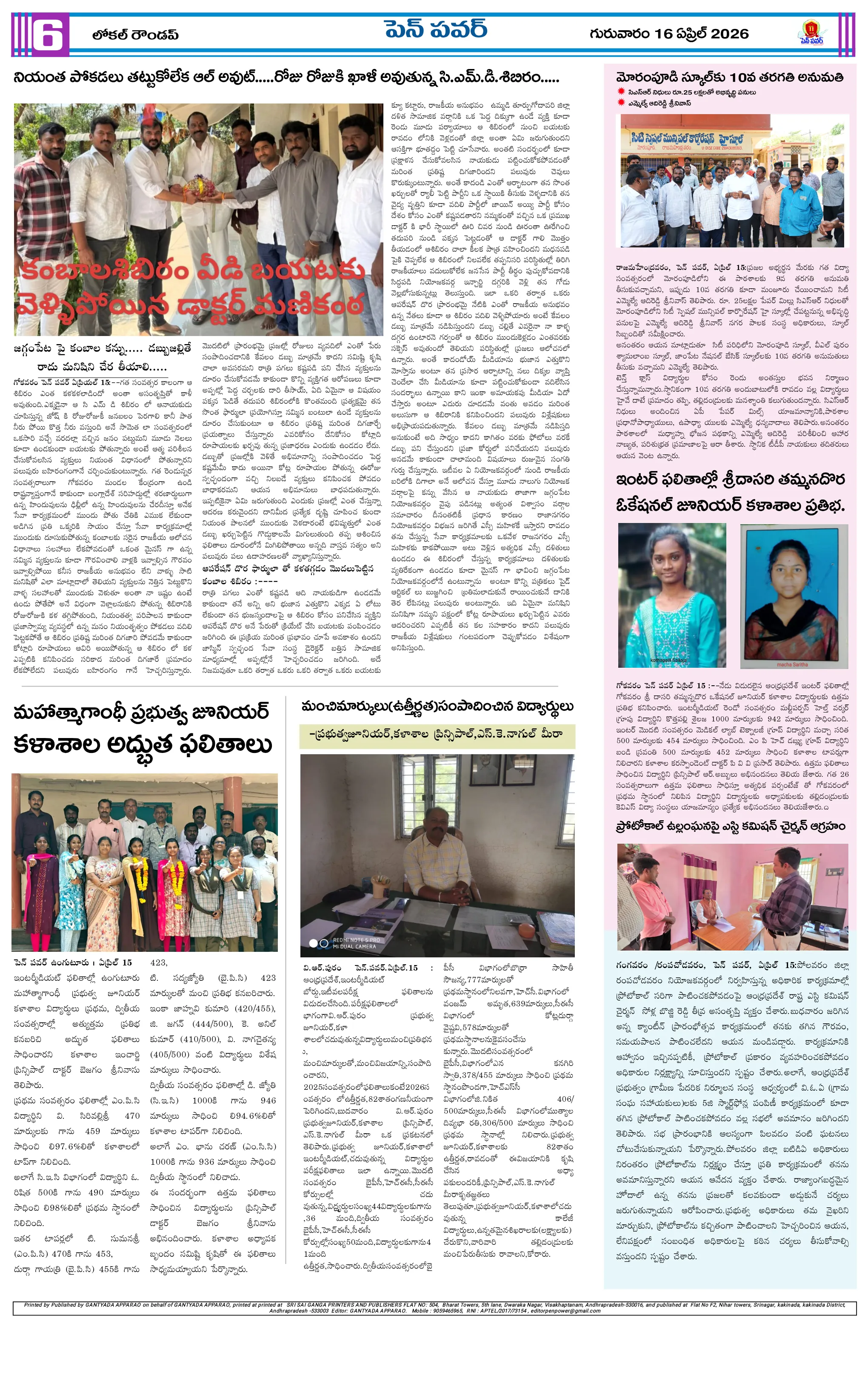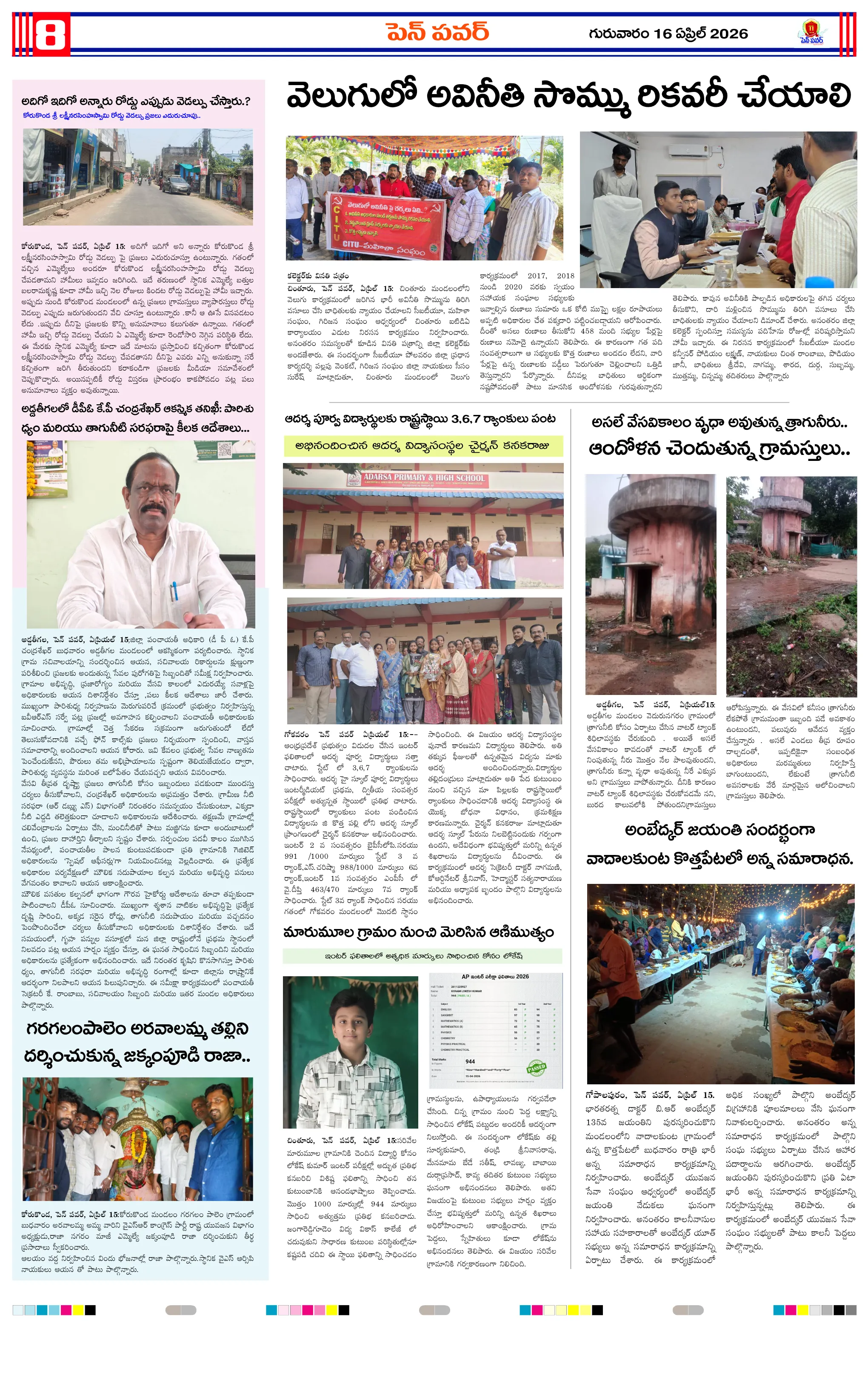 పోలవరం జిల్లాలో ఐఏఎస్ అధికారుల బదిలీలుశిశువుకు ప్రాణం పోసిన వైద్యులుజీకే వీధిలో స్వర్ణాంధ్ర–స్వచ్ఛాంధ్ర పరిశుభ్రత కార్యక్రమంజీకే వీధిలో దంచికొట్టిన వడగళ్ల వర్షందామనపల్లి పంచాయతీలో స్వర్ణాంధ్ర స్వచ్ఛ్ ఆంధ్ర కార్యక్రమంస్వర్ణాంధ్ర – స్వచ్ఛ్ ఆంధ్ర కార్యక్రమాలను పరిశీలించిన ఎంపీడీవో వడగాలుల నేపథ్యంలో ముందస్తు చర్యలపై అవగాహన – ఎంపీడీఓ సూచనలుపాతమంజేరు లో ఘనంగా గంటాలమ్మ విగ్రహ ప్రతిష్ఠరింతాడ సమీపంలో రోడ్డు ప్రమాదం – యువకుడు మృతిపాకలపాడులో ఆపరేషన్ వజ్రప్రహార్ కార్డన్ అండ్ సర్చ్
