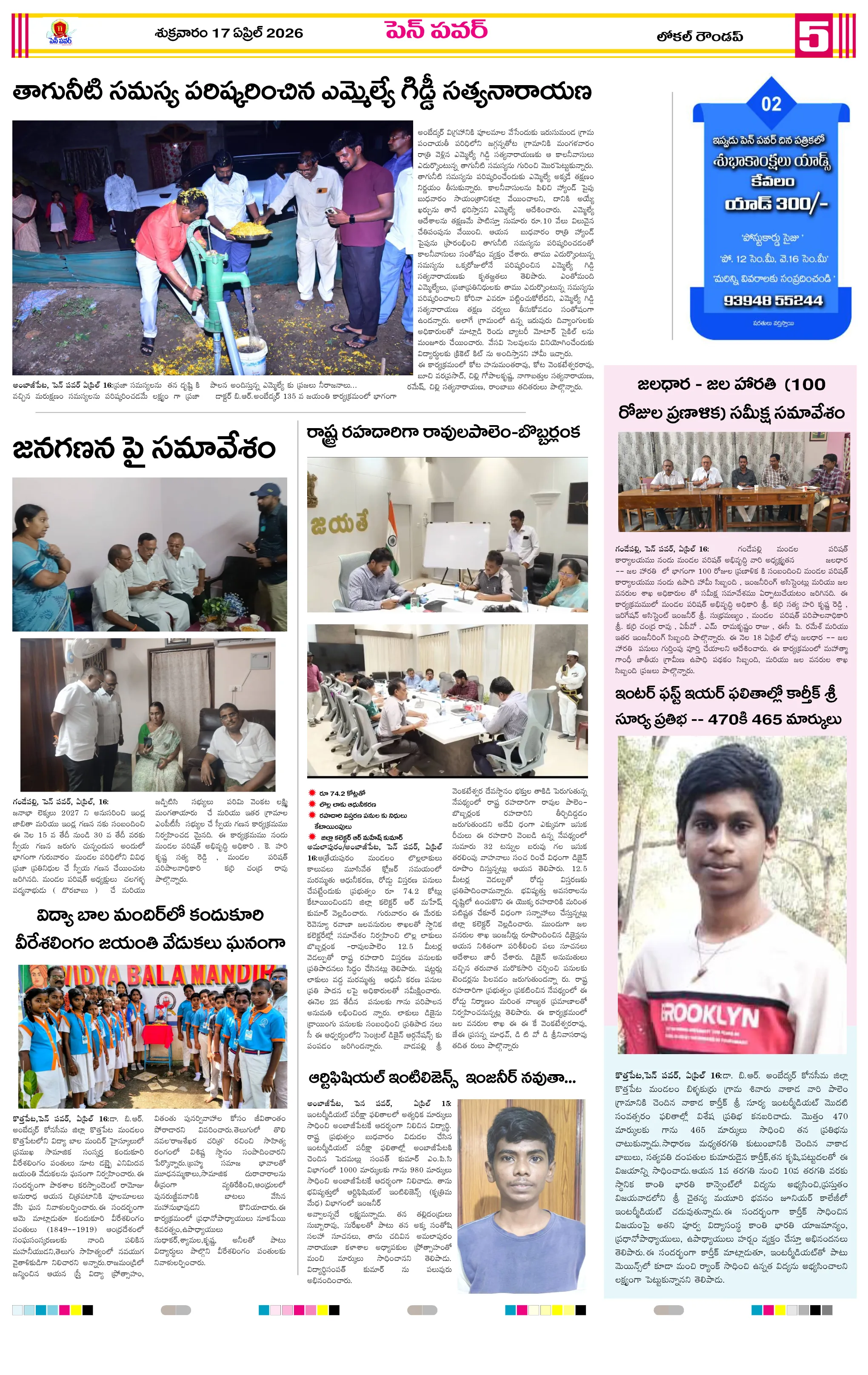 శిశువుకు ప్రాణం పోసిన వైద్యులుజీకే వీధిలో స్వర్ణాంధ్ర–స్వచ్ఛాంధ్ర పరిశుభ్రత కార్యక్రమంజీకే వీధిలో దంచికొట్టిన వడగళ్ల వర్షందామనపల్లి పంచాయతీలో స్వర్ణాంధ్ర స్వచ్ఛ్ ఆంధ్ర కార్యక్రమంస్వర్ణాంధ్ర – స్వచ్ఛ్ ఆంధ్ర కార్యక్రమాలను పరిశీలించిన ఎంపీడీవో వడగాలుల నేపథ్యంలో ముందస్తు చర్యలపై అవగాహన – ఎంపీడీఓ సూచనలుపాతమంజేరు లో ఘనంగా గంటాలమ్మ విగ్రహ ప్రతిష్ఠరింతాడ సమీపంలో రోడ్డు ప్రమాదం – యువకుడు మృతిపాకలపాడులో ఆపరేషన్ వజ్రప్రహార్ కార్డన్ అండ్ సర్చ్అడ్డతీగల సంత మార్కెట్ ‘ఆసీలు’ బహిరంగ వేలం..