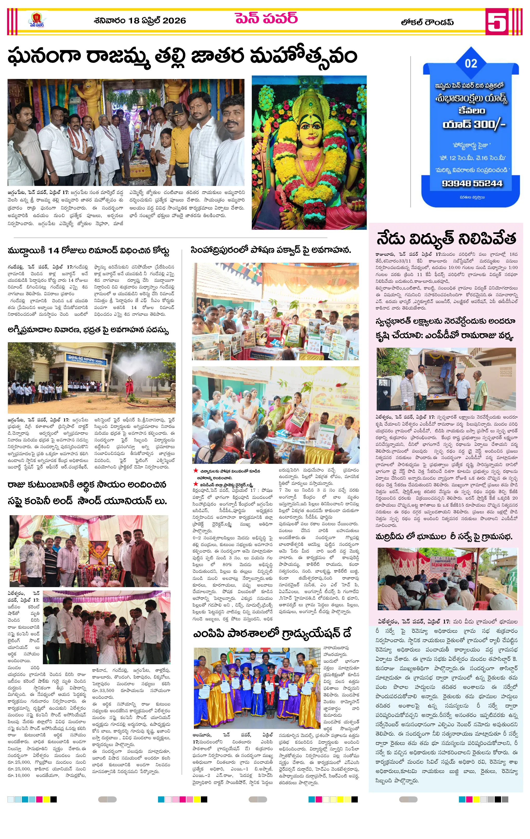 జీకే వీధిలో స్వర్ణాంధ్ర–స్వచ్ఛాంధ్ర పరిశుభ్రత కార్యక్రమంజీకే వీధిలో దంచికొట్టిన వడగళ్ల వర్షందామనపల్లి పంచాయతీలో స్వర్ణాంధ్ర స్వచ్ఛ్ ఆంధ్ర కార్యక్రమంస్వర్ణాంధ్ర – స్వచ్ఛ్ ఆంధ్ర కార్యక్రమాలను పరిశీలించిన ఎంపీడీవో వడగాలుల నేపథ్యంలో ముందస్తు చర్యలపై అవగాహన – ఎంపీడీఓ సూచనలుపాతమంజేరు లో ఘనంగా గంటాలమ్మ విగ్రహ ప్రతిష్ఠరింతాడ సమీపంలో రోడ్డు ప్రమాదం – యువకుడు మృతిపాకలపాడులో ఆపరేషన్ వజ్రప్రహార్ కార్డన్ అండ్ సర్చ్అడ్డతీగల సంత మార్కెట్ ‘ఆసీలు’ బహిరంగ వేలం..డ్రోన్ వినియోగంతో ఓపెన్ డ్రింకింగ్‌పై కేసులు నమోదు