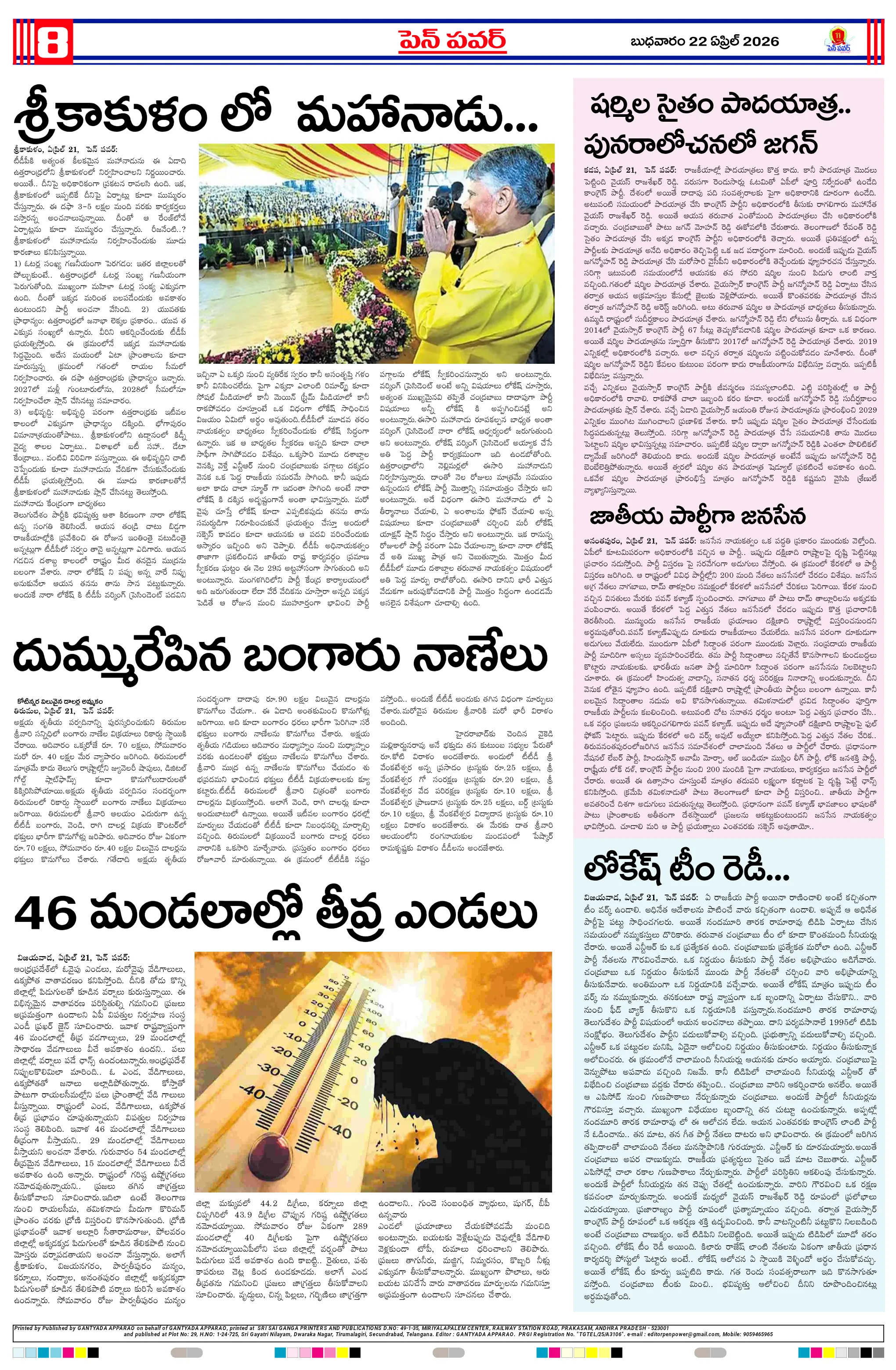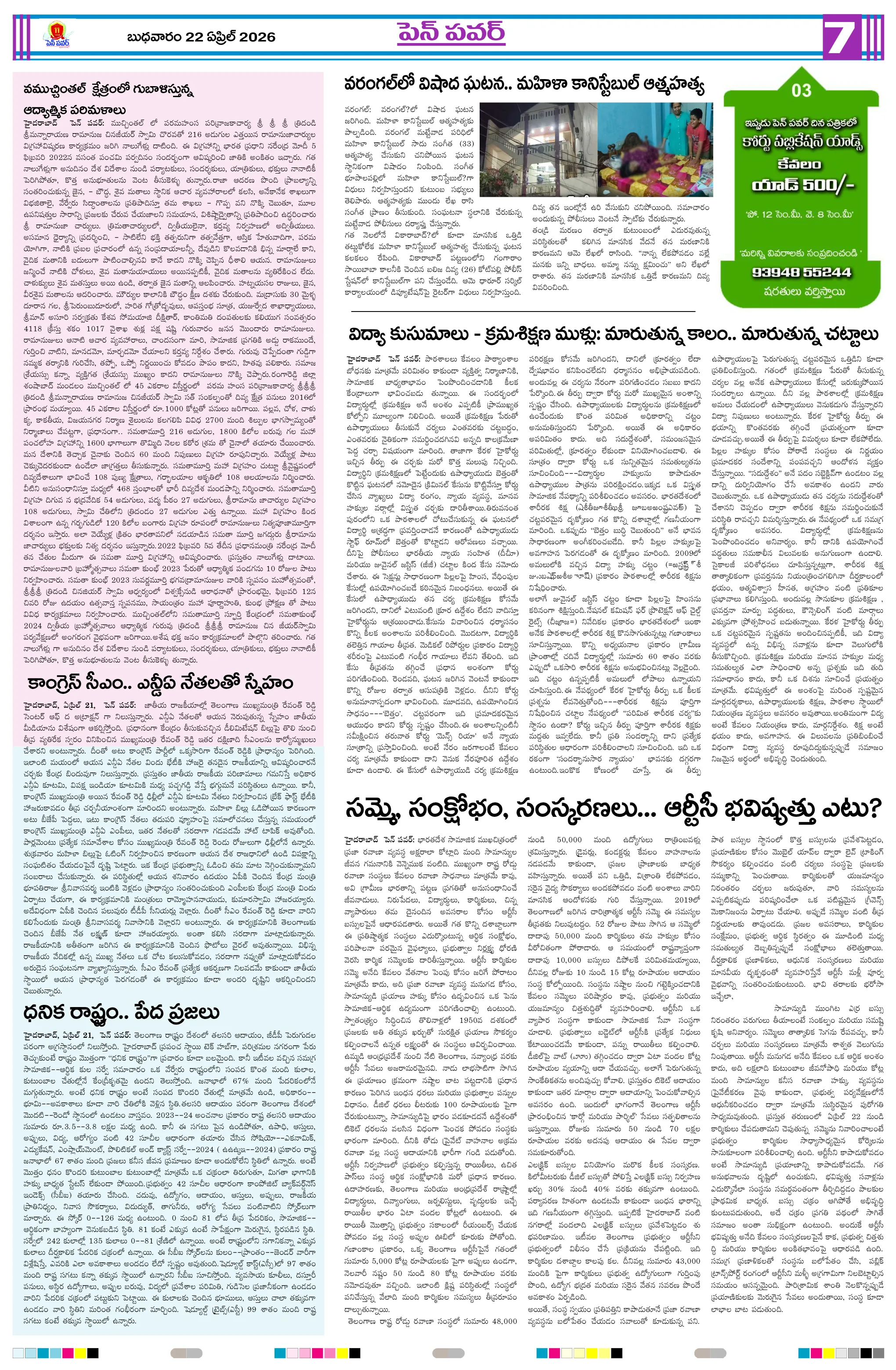 పవన్ కళ్యాణ్ ఆరోగ్యం కోసం ప్రత్యేక పూజలుపునరావాస కాలనీల్లోనే రేషన్ బియ్యం అందించాలని గిరిజనుల వినతికోలంక రైతు సేవ కేంద్రంలో ధాన్యం కొనుగోలు ప్రారంభం“అంబేద్కర్ అందరివాడు” మహాసభ గోడపత్రిక ఆవిష్కరణశ్రీ పరమేశ్వరానందగిరి స్వామీజీ ఆశీస్సులతోచింతూరులో ప్రజా ఫిర్యాదుల పరిష్కార కార్యక్రమంమరణించిన కార్యకర్త కుటుంబానికి రూ.5 లక్షల భీమామాజీ మంత్రి చిక్కాల లేఖకు స్పందించిన సీఎంసంక్షోభాలను సంకల్పాలుగా మార్చుకున్న నాయకుడు చంద్రబాబుగంగవరం లో పోషణ్ పక్వాడ కార్యక్రమం- అవగాహన ర్యాలీ