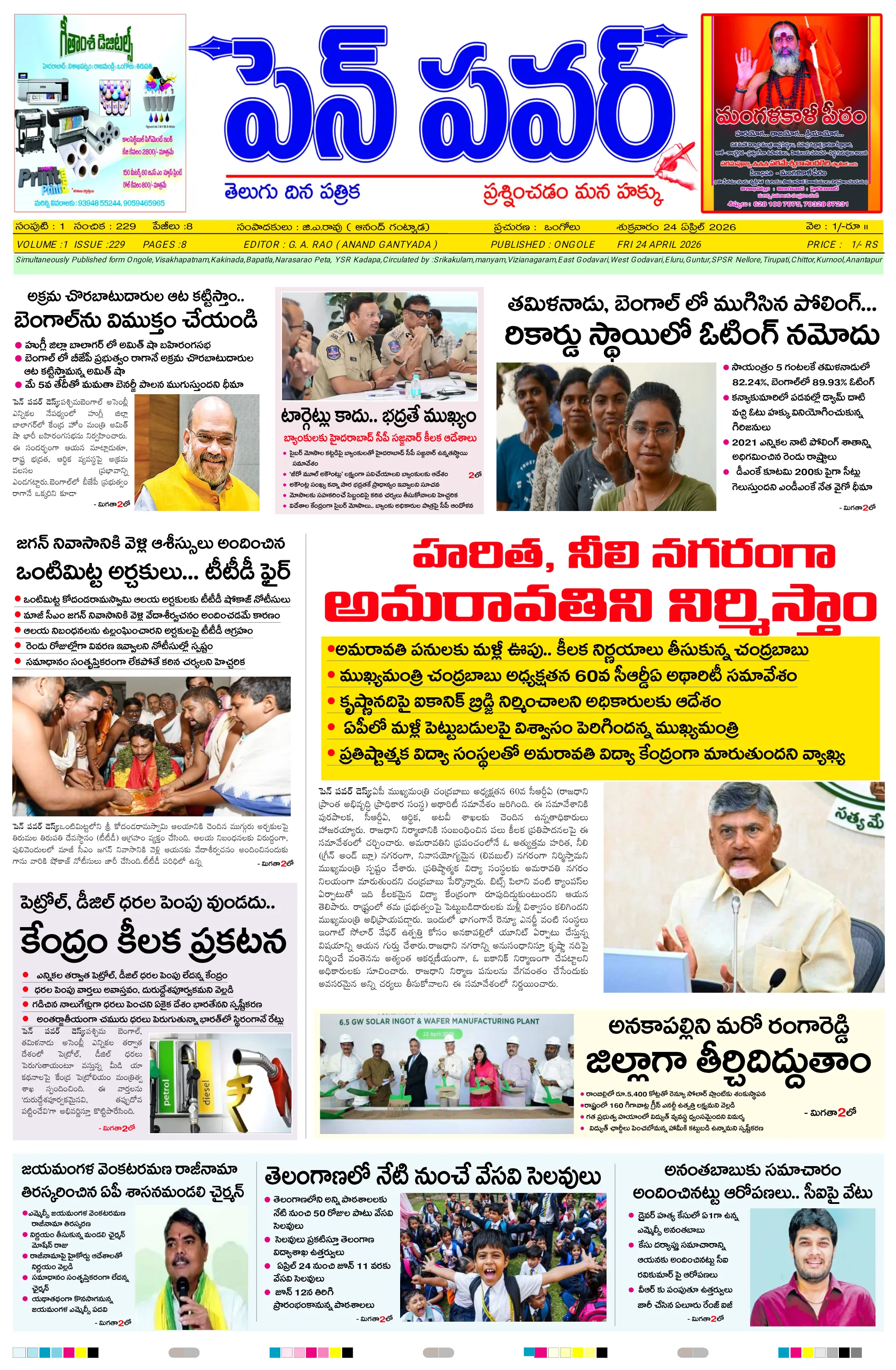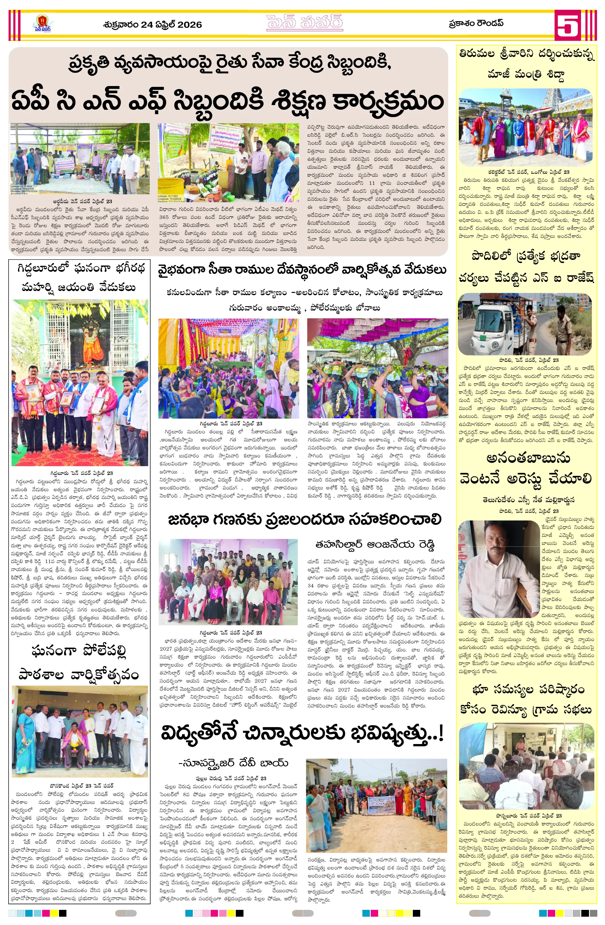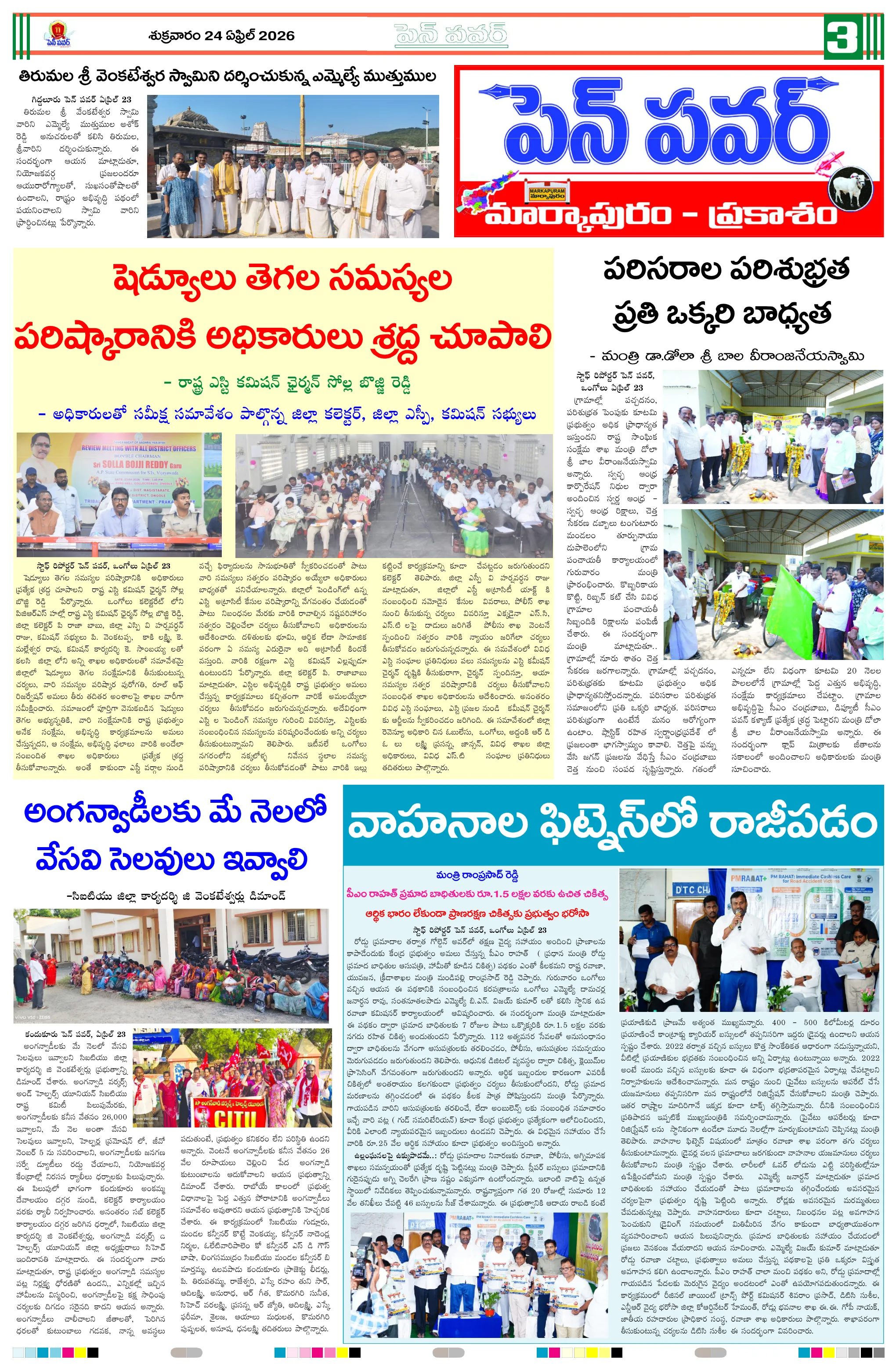 దళితుల సమస్యలపై ఐటిడిఏ పీఓ, డాక్టర్ జమాల్ ఖాన్‌ను కలిసిన సంఘ నాయకులుప్రైవేట్ పాఠశాలలకు దీటుగా ప్రభుత్వ పాఠశాలలో విద్యాబోధననల్లబెల్లి జలపాతం వద్ద హెచ్చరిక బోర్డు ఏర్పాటుభారీ వర్షాలకు ఇల్లు కోల్పోయిన బాధితుడికి సహాయం చేయాలిఅధికారులపై కోర్టు ధిక్కరణ కేసు నమోదు చేయాలిప్రజా ఆస్తుల లీజింగ్‌పై వివాదం స్టేడియాల్లో వాకింగ్‌కూ ఫీజులపై ఆందోళనఏప్రిల్ 24 న దామనపల్లి సచివాలయంలో గ్రామసభ  పవన్ కళ్యాణ్ ఆరోగ్యం కోసం ప్రత్యేక పూజలుపునరావాస కాలనీల్లోనే రేషన్ బియ్యం అందించాలని గిరిజనుల వినతికోలంక రైతు సేవ కేంద్రంలో ధాన్యం కొనుగోలు ప్రారంభం