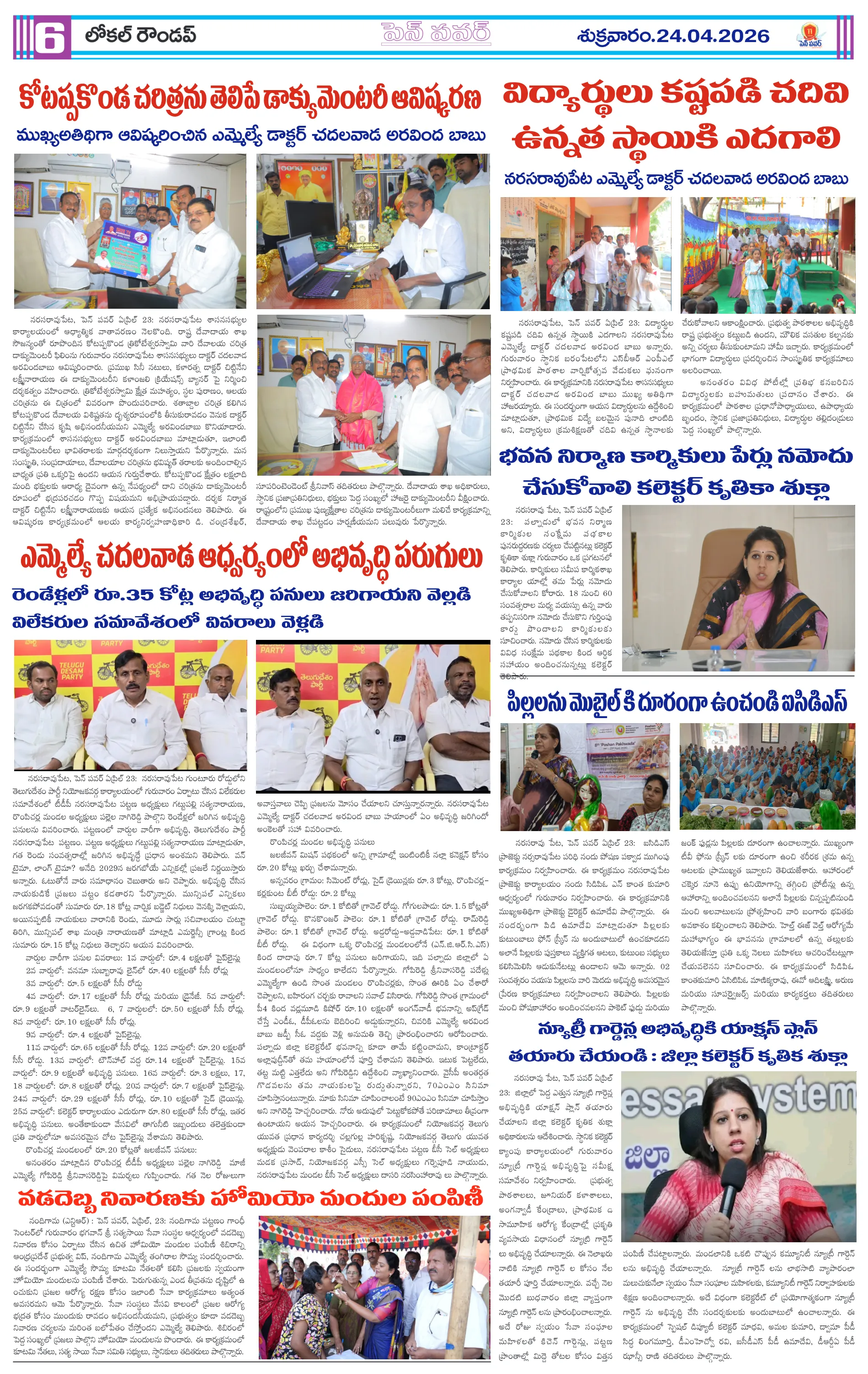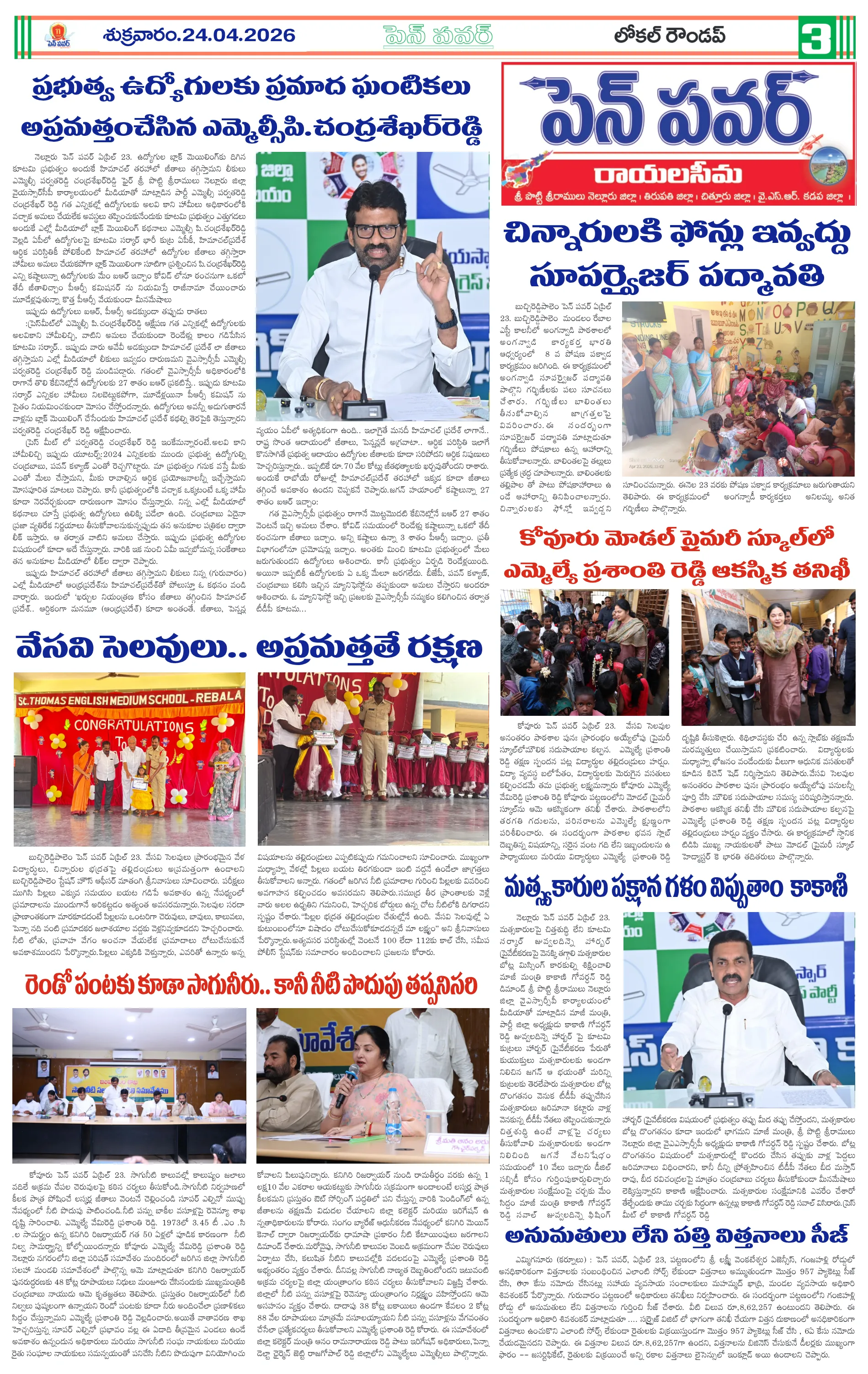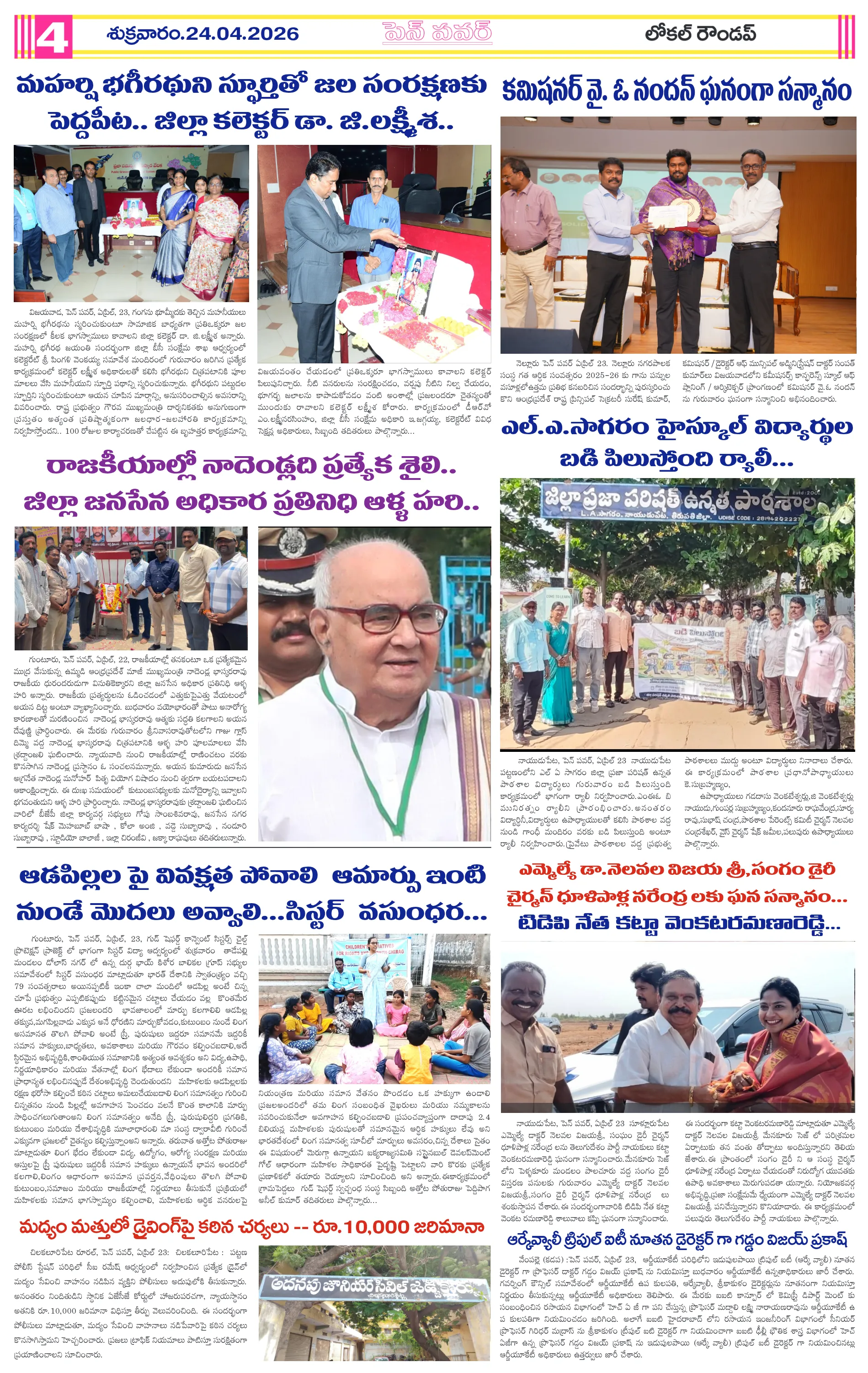 దళితుల సమస్యలపై ఐటిడిఏ పీఓ, డాక్టర్ జమాల్ ఖాన్‌ను కలిసిన సంఘ నాయకులుప్రైవేట్ పాఠశాలలకు దీటుగా ప్రభుత్వ పాఠశాలలో విద్యాబోధననల్లబెల్లి జలపాతం వద్ద హెచ్చరిక బోర్డు ఏర్పాటుభారీ వర్షాలకు ఇల్లు కోల్పోయిన బాధితుడికి సహాయం చేయాలిఅధికారులపై కోర్టు ధిక్కరణ కేసు నమోదు చేయాలిప్రజా ఆస్తుల లీజింగ్‌పై వివాదం స్టేడియాల్లో వాకింగ్‌కూ ఫీజులపై ఆందోళనఏప్రిల్ 24 న దామనపల్లి సచివాలయంలో గ్రామసభ  పవన్ కళ్యాణ్ ఆరోగ్యం కోసం ప్రత్యేక పూజలుపునరావాస కాలనీల్లోనే రేషన్ బియ్యం అందించాలని గిరిజనుల వినతికోలంక రైతు సేవ కేంద్రంలో ధాన్యం కొనుగోలు ప్రారంభం