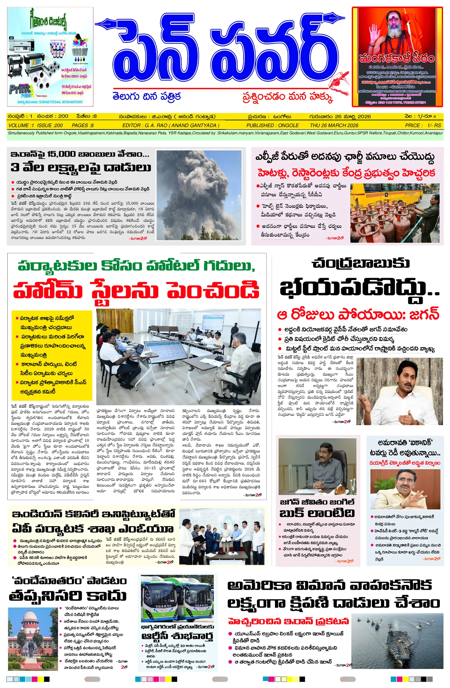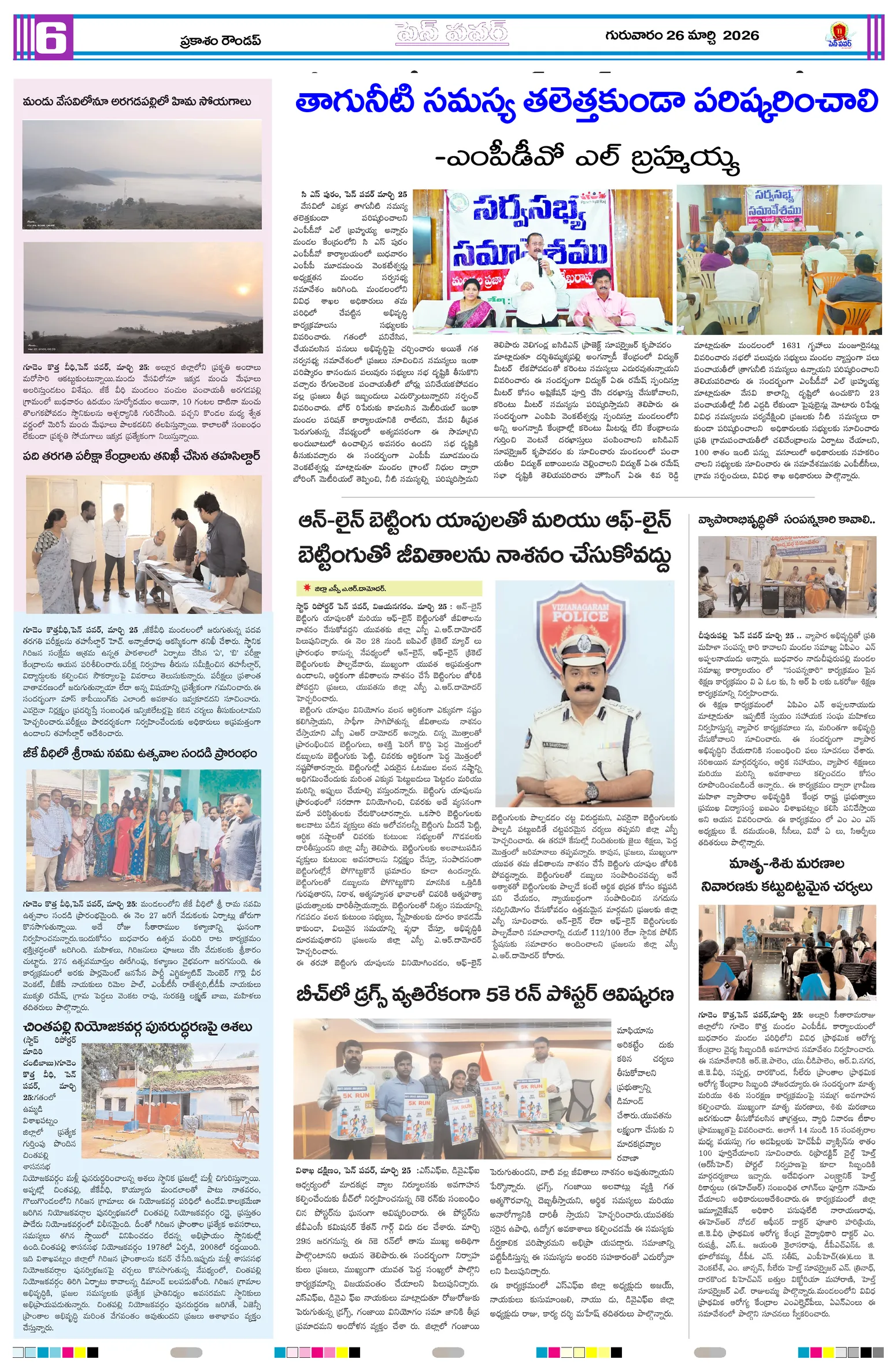 పేద గిరిజన విద్యార్థులకు గ్రూప్స్ మెటీరియల్ అందజేసిన ఉప తహసీల్దార్ ఏప్రిల్ 15న పంచాయతీ కేంద్రాల్లో ఓటర్ జాబితా ప్రదర్శననిబందనలు మాకు వర్తించవు ఆక్రమార్కులు అల్టీమేటంరాజ్యాధికారమే మాస్టర్ కి : డాక్టర్ తెన్నేటి జయరాజ్సంకాడ పంచాయతీలో ఘనంగా అంబేద్కర్ జయంతి వేడుకలుకూటమినేతల సమక్షంలో జీకే వీధిలో  ఘనంగా డాక్టర్ బి.ఆర్. అంబేద్కర్ జయంతి జర్నలిస్టుల ఆధ్వర్యంలో అంబేడ్కర్‌ జయంతి వేడుకలుఇష్యూ బేస్డ్ ఉద్యమాలతో జగన్ కొత్త వ్యూహంసింగపూర్ లో ట్రైనింగ్ కు మంత్రులుడా.బిఆర్.అంబేద్కర్ కు ఘన నివాళులు అర్పించిన స్పీకర్, హోం మంత్రి