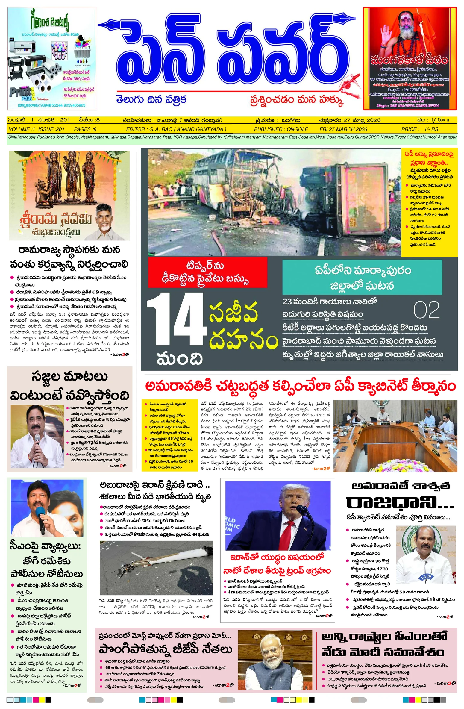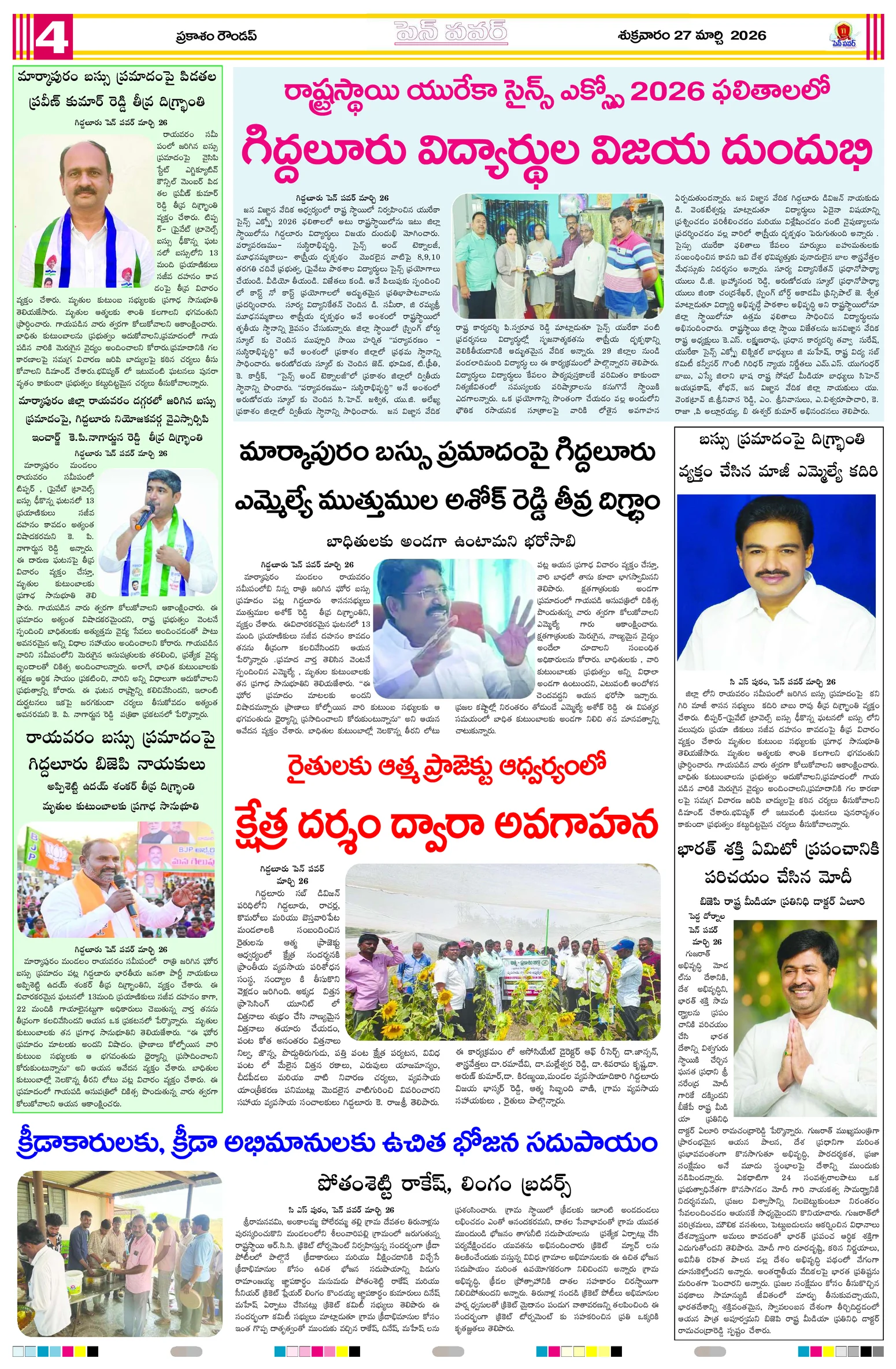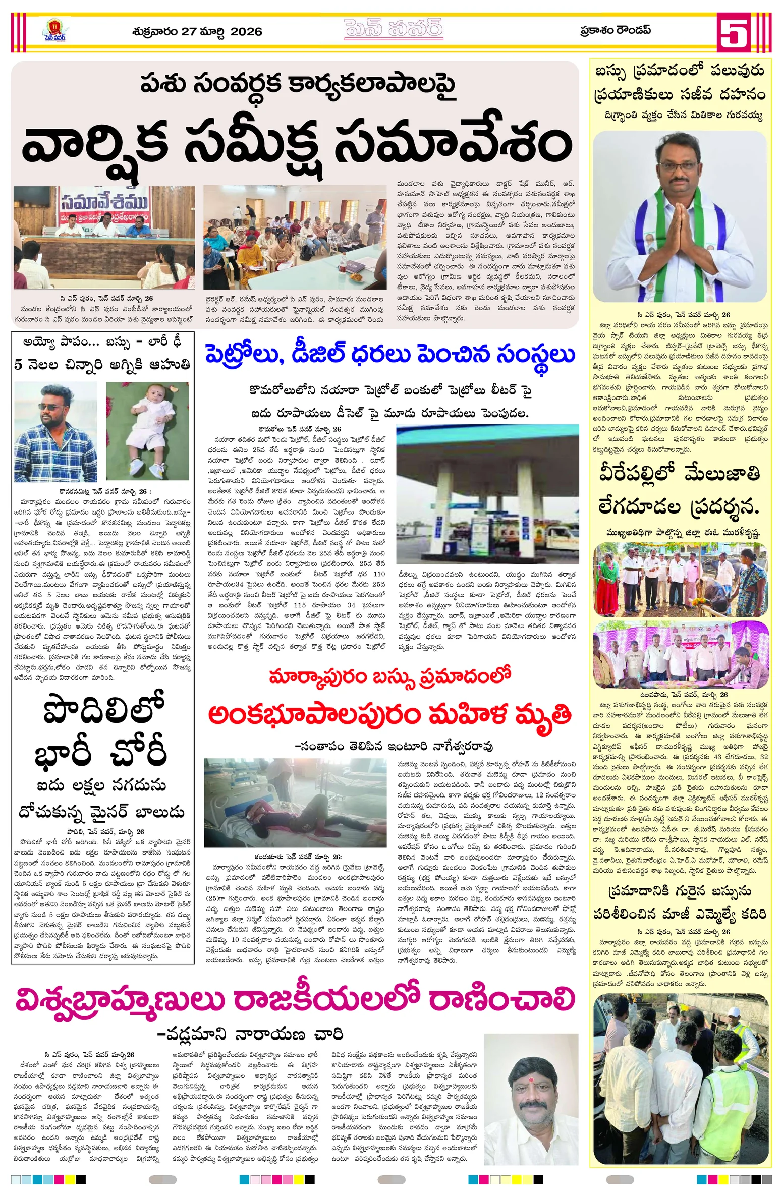 ఏపీలో మరో 30 ఇండస్ట్రియల్ క్లస్టర్లకు గ్రీన్ సిగ్నల్మంత్రులపై చంద్రబాబు ఆగ్రహంపార్టీలకు అతీతంగా అంబేద్కర్ జయంతి వేడుకలుజనగణన మొదటి విడత శిక్షణ ప్రారంభం:తహసీల్దార్ హెచ్. అన్నాజీ రావుఅంబేద్కర్ జయంతి ఏర్పాట్లపై పోలీసుల పర్యవేక్షణమహిళలు స్వయం సమృద్ధి సాధించాలి…కూటమి ప్రభుత్వంలో గ్యాస్ కొరత సామాన్యుల తిప్పలు పట్టవా:వైసిపి మండల ఉపాధ్యక్షులు వంతల అరుణ్ ఆగ్రహం.మండల కేంద్రాల్లో ప్రతి సోమవారం ‘గ్రీవెన్స్ డే’ తప్పనిసరి:జిల్లా కలెక్టర్ నిశాంతిసిమెంట్ లారీ బోల్తా…తప్పిన పెను ప్రమాదం..!సమస్యల పరిష్కారానికి మండల కేంద్రంలో సోమవారం ‘మీ కోసం’ కార్యక్రమం