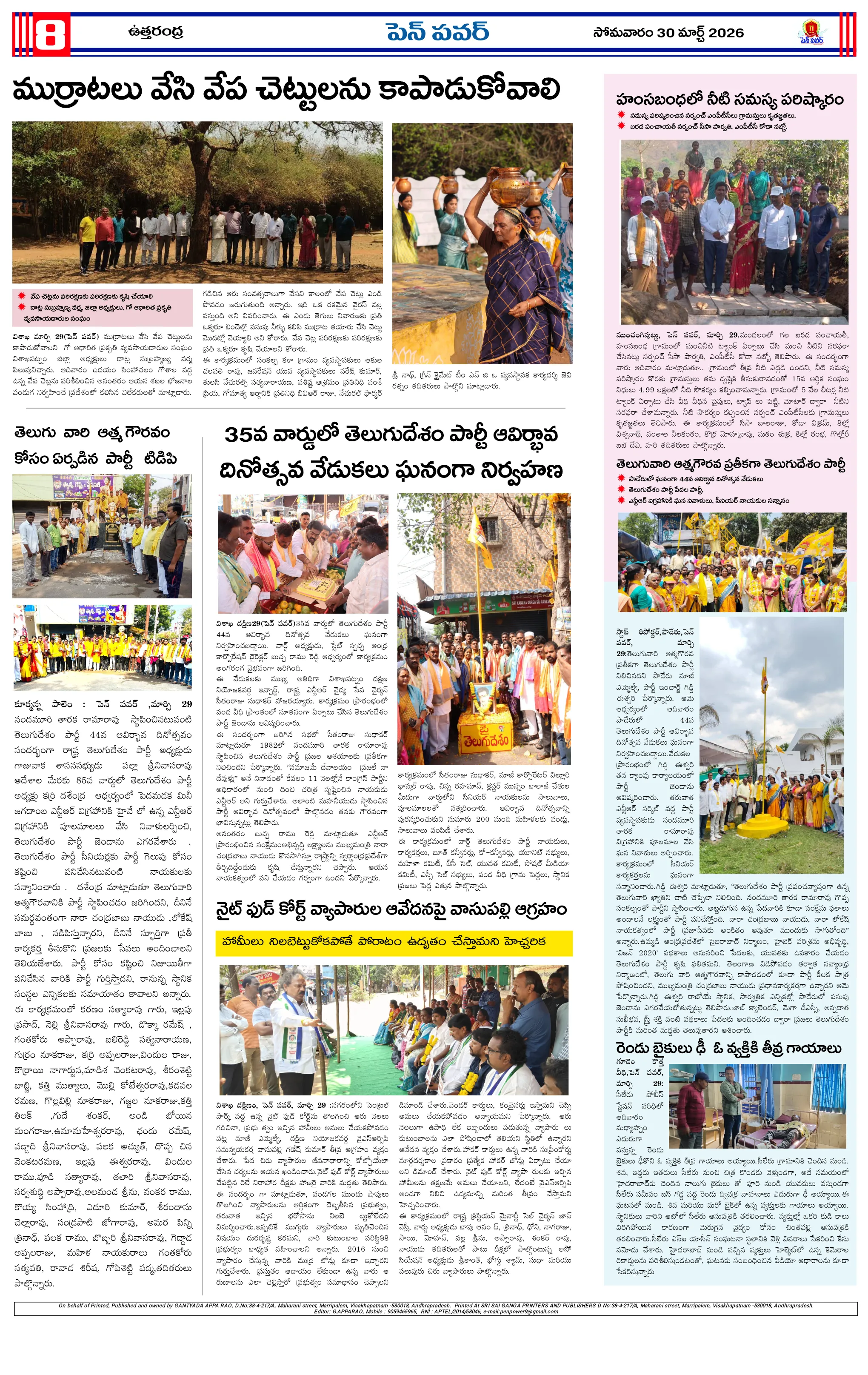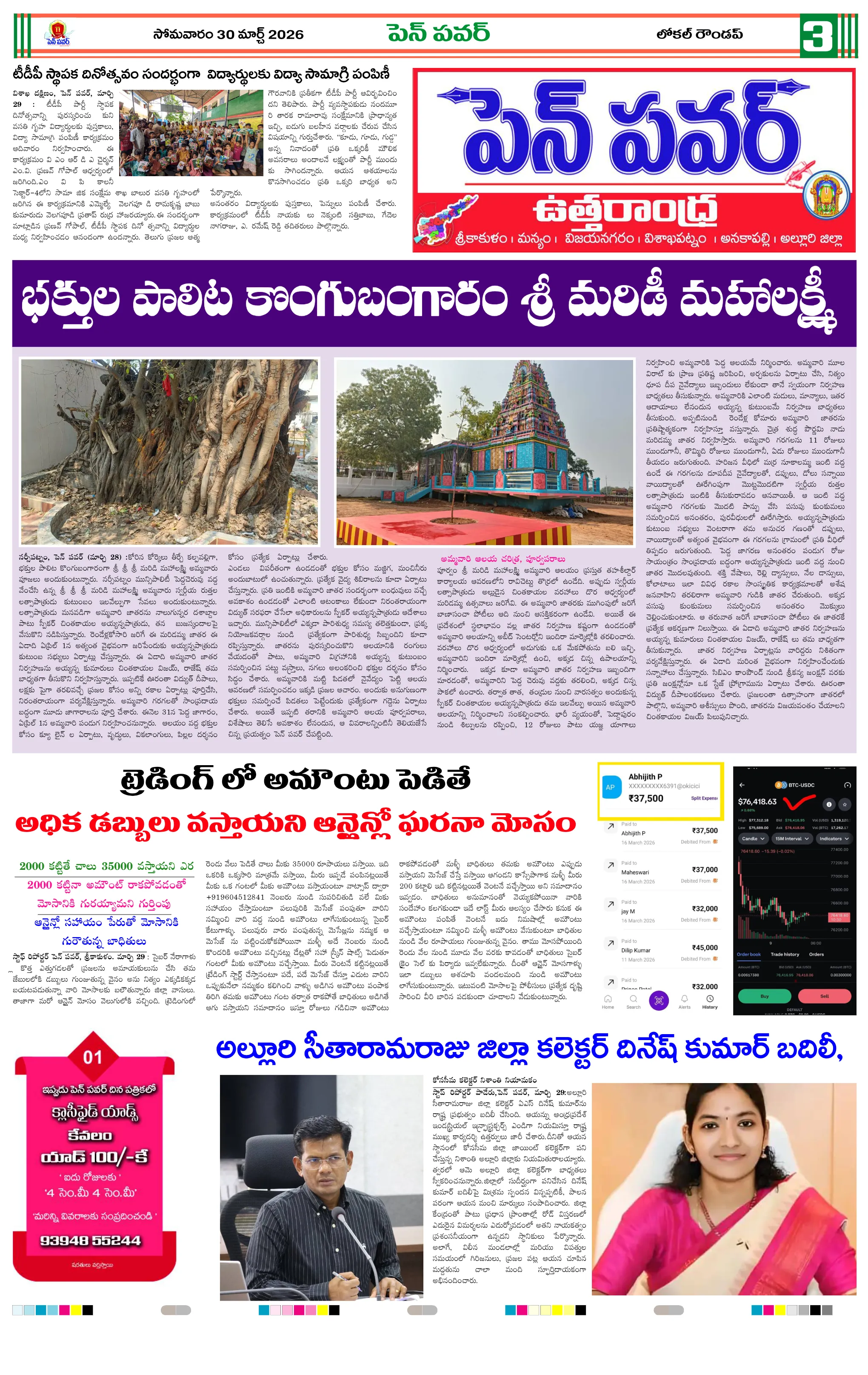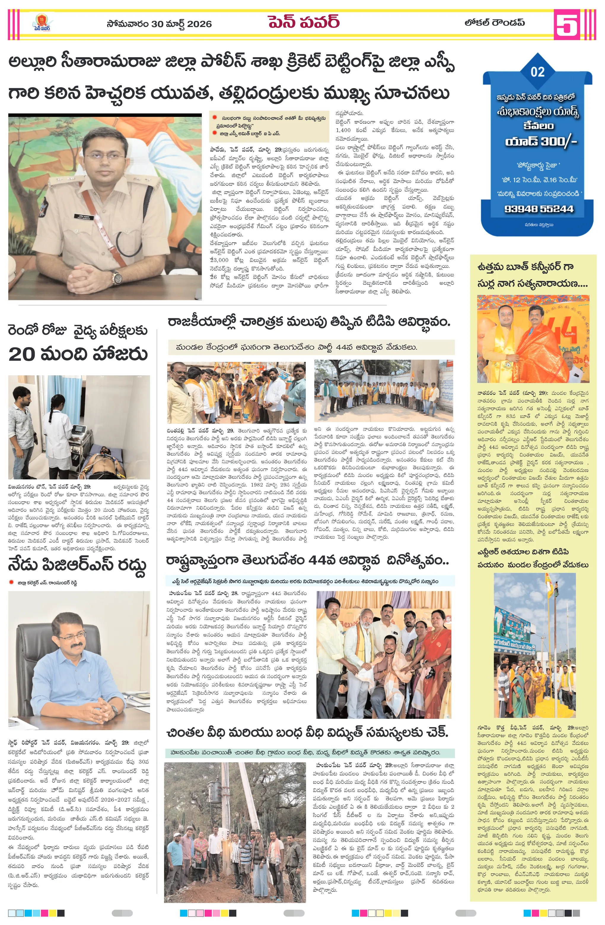 ఏపీలో మరో 30 ఇండస్ట్రియల్ క్లస్టర్లకు గ్రీన్ సిగ్నల్మంత్రులపై చంద్రబాబు ఆగ్రహంపార్టీలకు అతీతంగా అంబేద్కర్ జయంతి వేడుకలుజనగణన మొదటి విడత శిక్షణ ప్రారంభం:తహసీల్దార్ హెచ్. అన్నాజీ రావుఅంబేద్కర్ జయంతి ఏర్పాట్లపై పోలీసుల పర్యవేక్షణమహిళలు స్వయం సమృద్ధి సాధించాలి…కూటమి ప్రభుత్వంలో గ్యాస్ కొరత సామాన్యుల తిప్పలు పట్టవా:వైసిపి మండల ఉపాధ్యక్షులు వంతల అరుణ్ ఆగ్రహం.మండల కేంద్రాల్లో ప్రతి సోమవారం ‘గ్రీవెన్స్ డే’ తప్పనిసరి:జిల్లా కలెక్టర్ నిశాంతిసిమెంట్ లారీ బోల్తా…తప్పిన పెను ప్రమాదం..!సమస్యల పరిష్కారానికి మండల కేంద్రంలో సోమవారం ‘మీ కోసం’ కార్యక్రమం