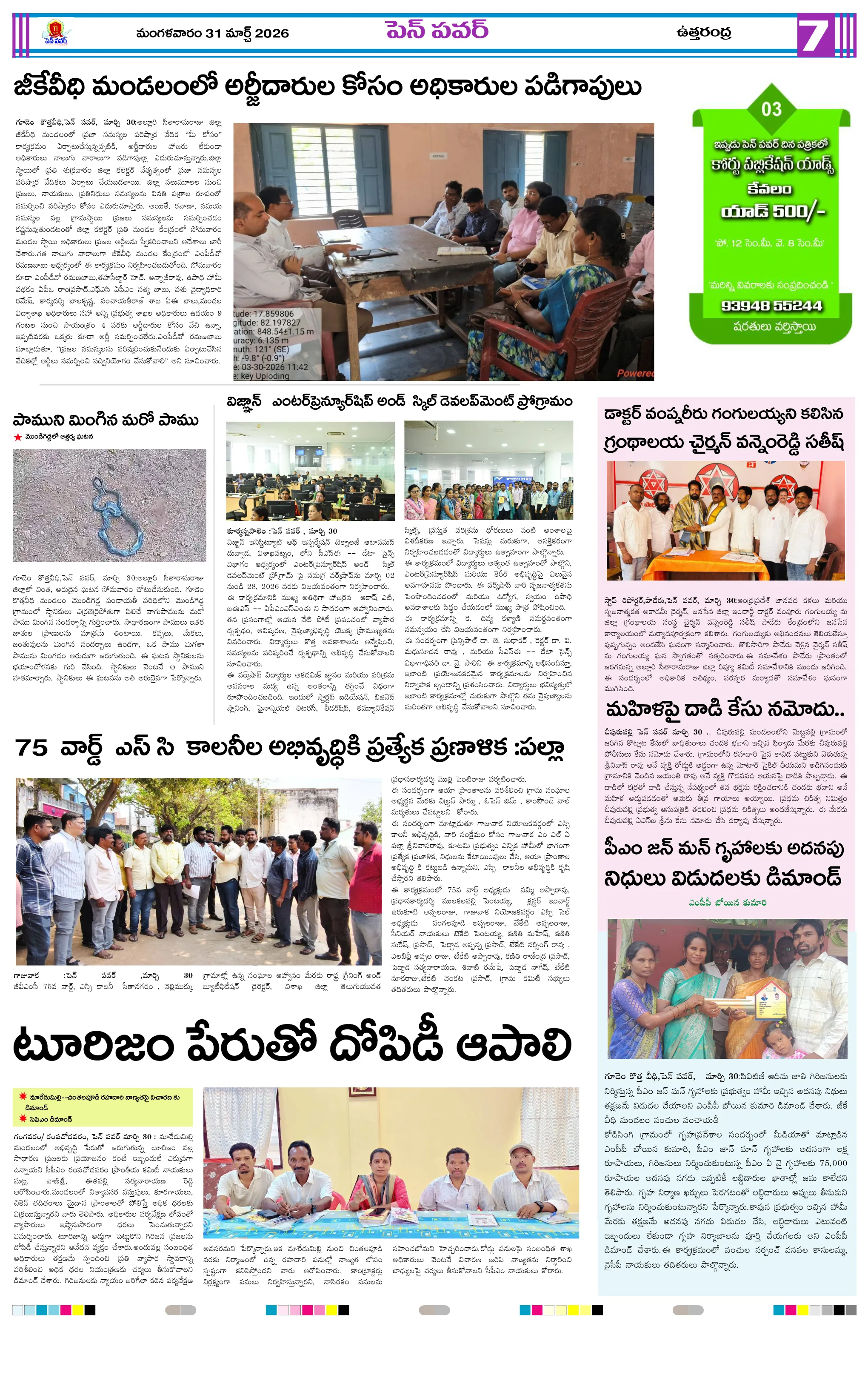 జనగణన మొదటి విడత శిక్షణ ప్రారంభం:తహసీల్దార్ హెచ్. అన్నాజీ రావుఅంబేద్కర్ జయంతి ఏర్పాట్లపై పోలీసుల పర్యవేక్షణమహిళలు స్వయం సమృద్ధి సాధించాలి…కూటమి ప్రభుత్వంలో గ్యాస్ కొరత సామాన్యుల తిప్పలు పట్టవా:వైసిపి మండల ఉపాధ్యక్షులు వంతల అరుణ్ ఆగ్రహం.మండల కేంద్రాల్లో ప్రతి సోమవారం ‘గ్రీవెన్స్ డే’ తప్పనిసరి:జిల్లా కలెక్టర్ నిశాంతిసిమెంట్ లారీ బోల్తా…తప్పిన పెను ప్రమాదం..!సమస్యల పరిష్కారానికి మండల కేంద్రంలో సోమవారం ‘మీ కోసం’ కార్యక్రమం ప్రతి ఇంటికి ఉచిత విద్యుత్ అందించడమే ‘సూర్యఘర్’ లక్ష్యం : ప్రత్తిపాటిజనసేన నాయకుడిపై కులదూషణ ఆరోపణలుజర్రెల కొత్తూరులో భారీ పాము సంచారం – గ్రామస్థుల్లో భయాందోళన
