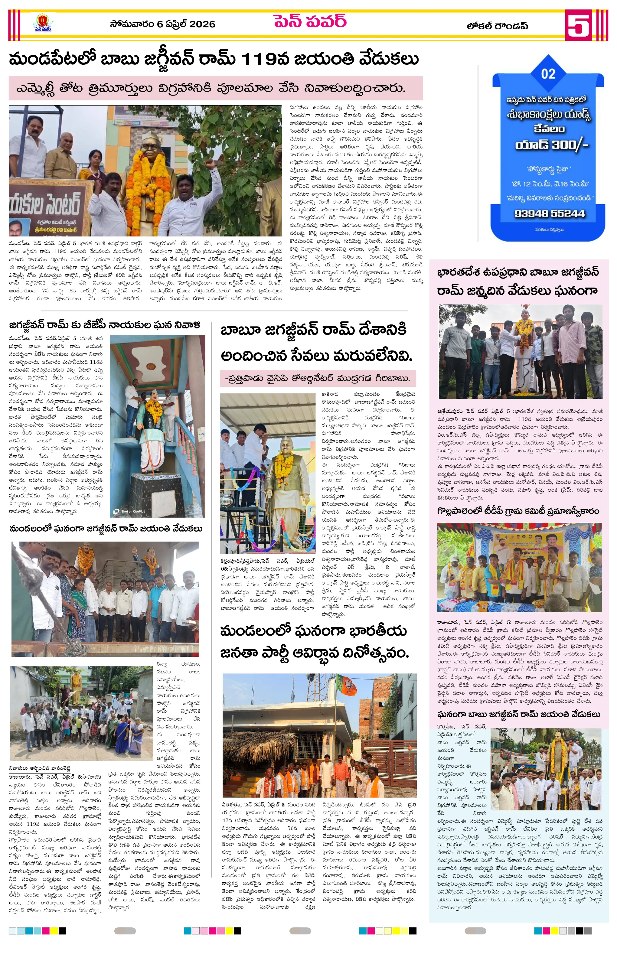 పేద గిరిజన విద్యార్థులకు గ్రూప్స్ మెటీరియల్ అందజేసిన ఉప తహసీల్దార్ ఏప్రిల్ 15న పంచాయతీ కేంద్రాల్లో ఓటర్ జాబితా ప్రదర్శననిబందనలు మాకు వర్తించవు ఆక్రమార్కులు అల్టీమేటంరాజ్యాధికారమే మాస్టర్ కి : డాక్టర్ తెన్నేటి జయరాజ్సంకాడ పంచాయతీలో ఘనంగా అంబేద్కర్ జయంతి వేడుకలుకూటమినేతల సమక్షంలో జీకే వీధిలో  ఘనంగా డాక్టర్ బి.ఆర్. అంబేద్కర్ జయంతి జర్నలిస్టుల ఆధ్వర్యంలో అంబేడ్కర్‌ జయంతి వేడుకలుఇష్యూ బేస్డ్ ఉద్యమాలతో జగన్ కొత్త వ్యూహంసింగపూర్ లో ట్రైనింగ్ కు మంత్రులుడా.బిఆర్.అంబేద్కర్ కు ఘన నివాళులు అర్పించిన స్పీకర్, హోం మంత్రి