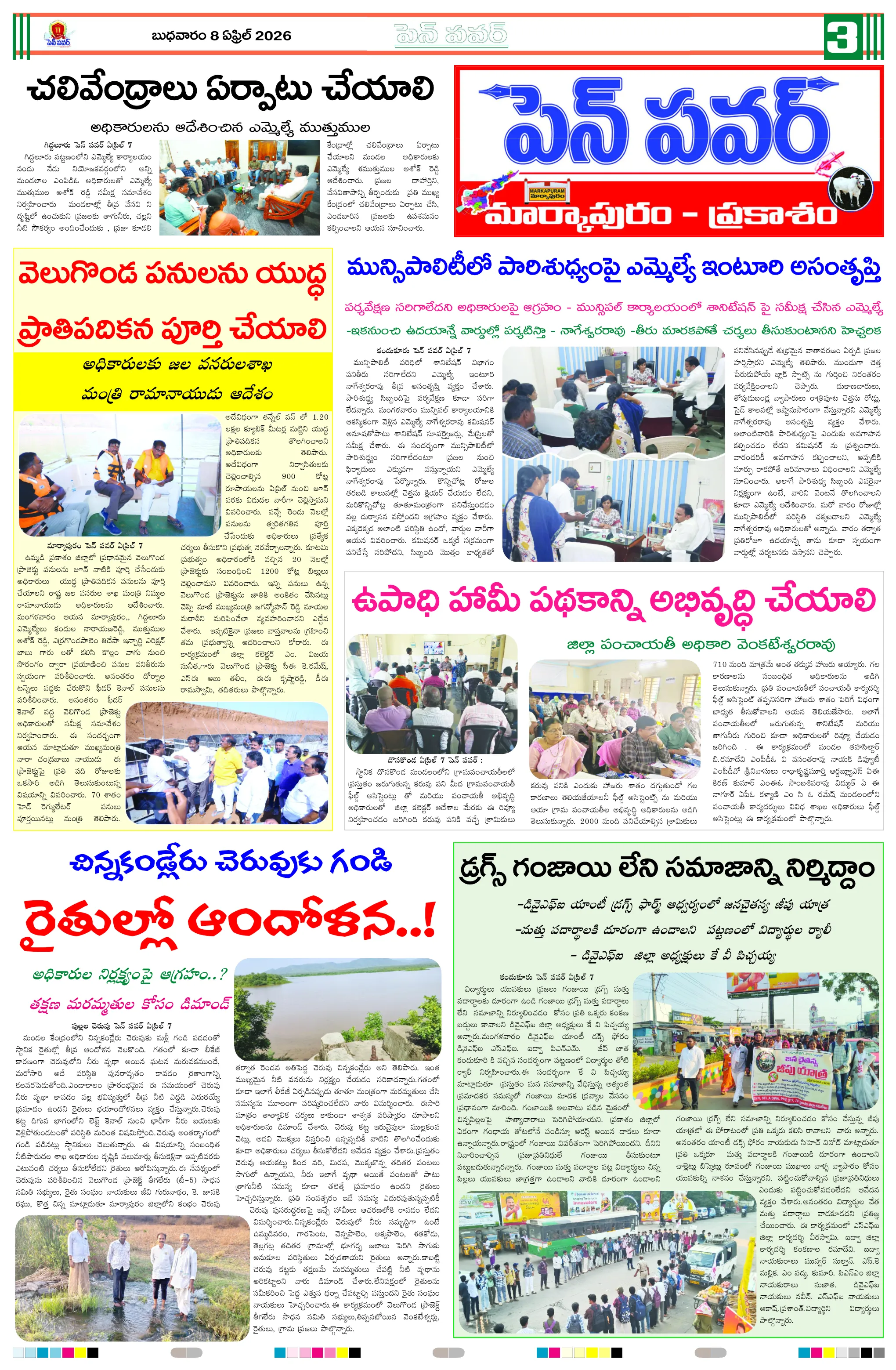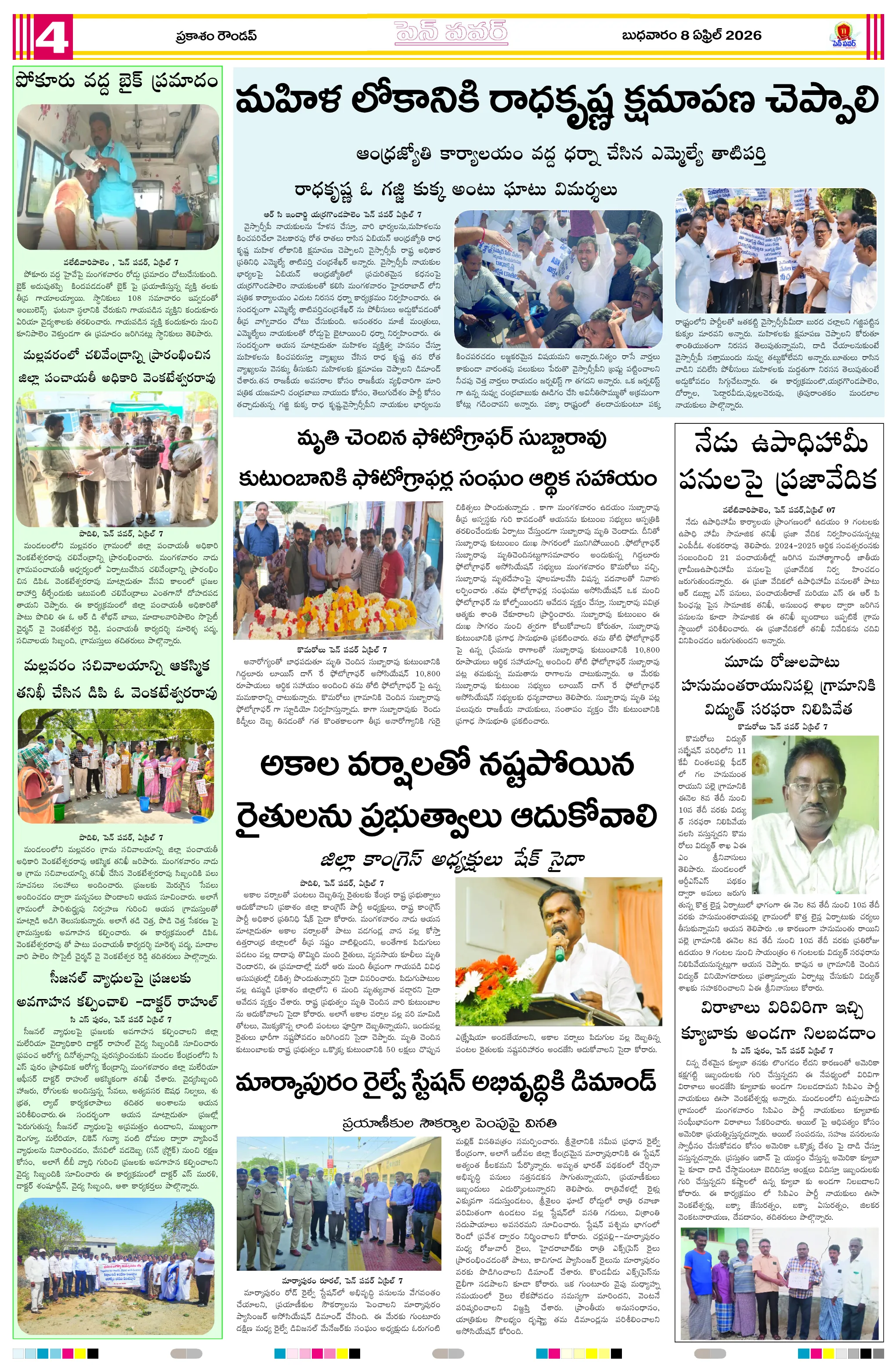 ఏపీలో మరో 30 ఇండస్ట్రియల్ క్లస్టర్లకు గ్రీన్ సిగ్నల్మంత్రులపై చంద్రబాబు ఆగ్రహంపార్టీలకు అతీతంగా అంబేద్కర్ జయంతి వేడుకలుజనగణన మొదటి విడత శిక్షణ ప్రారంభం:తహసీల్దార్ హెచ్. అన్నాజీ రావుఅంబేద్కర్ జయంతి ఏర్పాట్లపై పోలీసుల పర్యవేక్షణమహిళలు స్వయం సమృద్ధి సాధించాలి…కూటమి ప్రభుత్వంలో గ్యాస్ కొరత సామాన్యుల తిప్పలు పట్టవా:వైసిపి మండల ఉపాధ్యక్షులు వంతల అరుణ్ ఆగ్రహం.మండల కేంద్రాల్లో ప్రతి సోమవారం ‘గ్రీవెన్స్ డే’ తప్పనిసరి:జిల్లా కలెక్టర్ నిశాంతిసిమెంట్ లారీ బోల్తా…తప్పిన పెను ప్రమాదం..!సమస్యల పరిష్కారానికి మండల కేంద్రంలో సోమవారం ‘మీ కోసం’ కార్యక్రమం