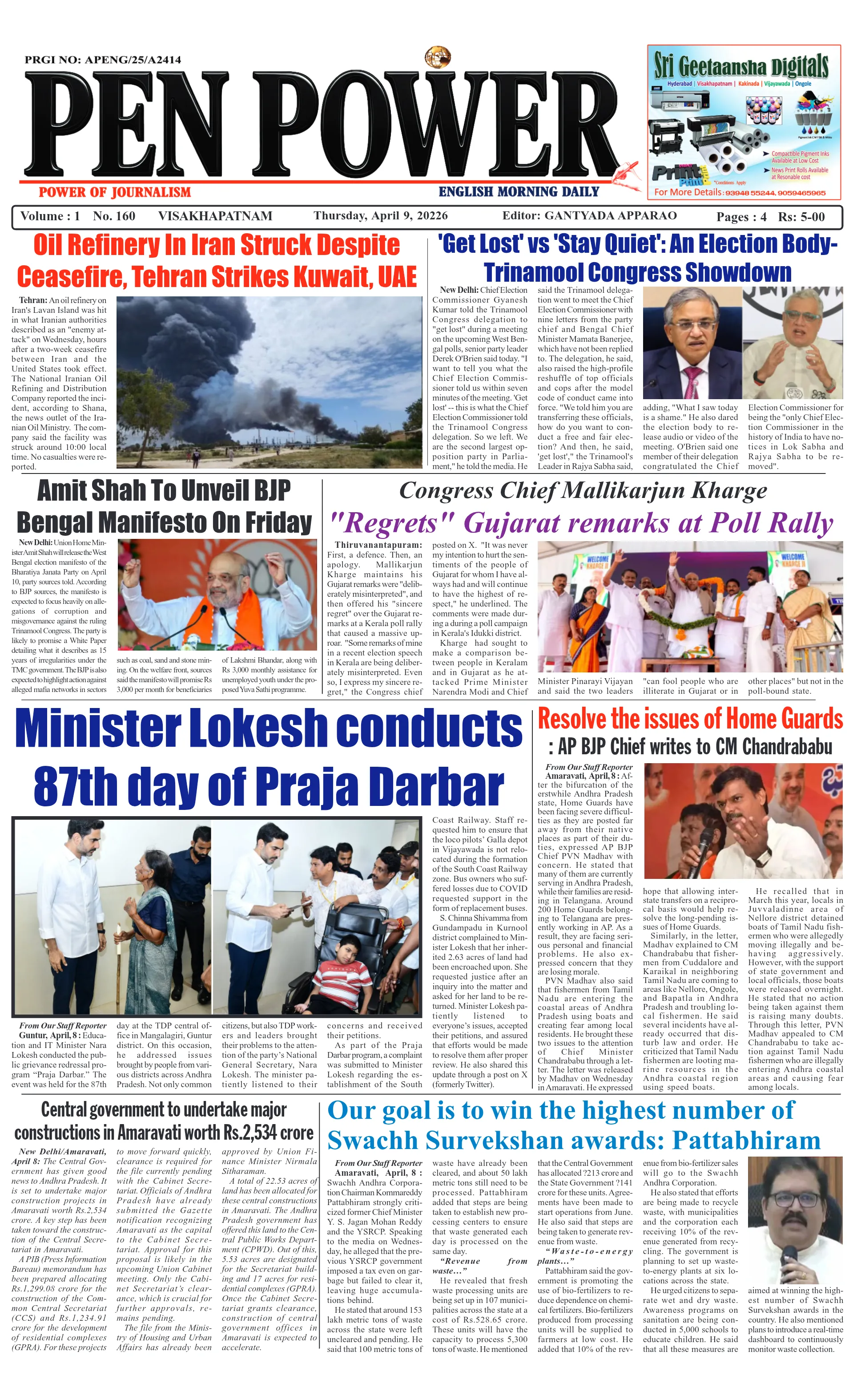 జనగణన మొదటి విడత శిక్షణ ప్రారంభం:తహసీల్దార్ హెచ్. అన్నాజీ రావుఅంబేద్కర్ జయంతి ఏర్పాట్లపై పోలీసుల పర్యవేక్షణమహిళలు స్వయం సమృద్ధి సాధించాలి…కూటమి ప్రభుత్వంలో గ్యాస్ కొరత సామాన్యుల తిప్పలు పట్టవా:వైసిపి మండల ఉపాధ్యక్షులు వంతల అరుణ్ ఆగ్రహం.మండల కేంద్రాల్లో ప్రతి సోమవారం ‘గ్రీవెన్స్ డే’ తప్పనిసరి:జిల్లా కలెక్టర్ నిశాంతిసిమెంట్ లారీ బోల్తా…తప్పిన పెను ప్రమాదం..!సమస్యల పరిష్కారానికి మండల కేంద్రంలో సోమవారం ‘మీ కోసం’ కార్యక్రమం ప్రతి ఇంటికి ఉచిత విద్యుత్ అందించడమే ‘సూర్యఘర్’ లక్ష్యం : ప్రత్తిపాటిజనసేన నాయకుడిపై కులదూషణ ఆరోపణలుజర్రెల కొత్తూరులో భారీ పాము సంచారం – గ్రామస్థుల్లో భయాందోళన
