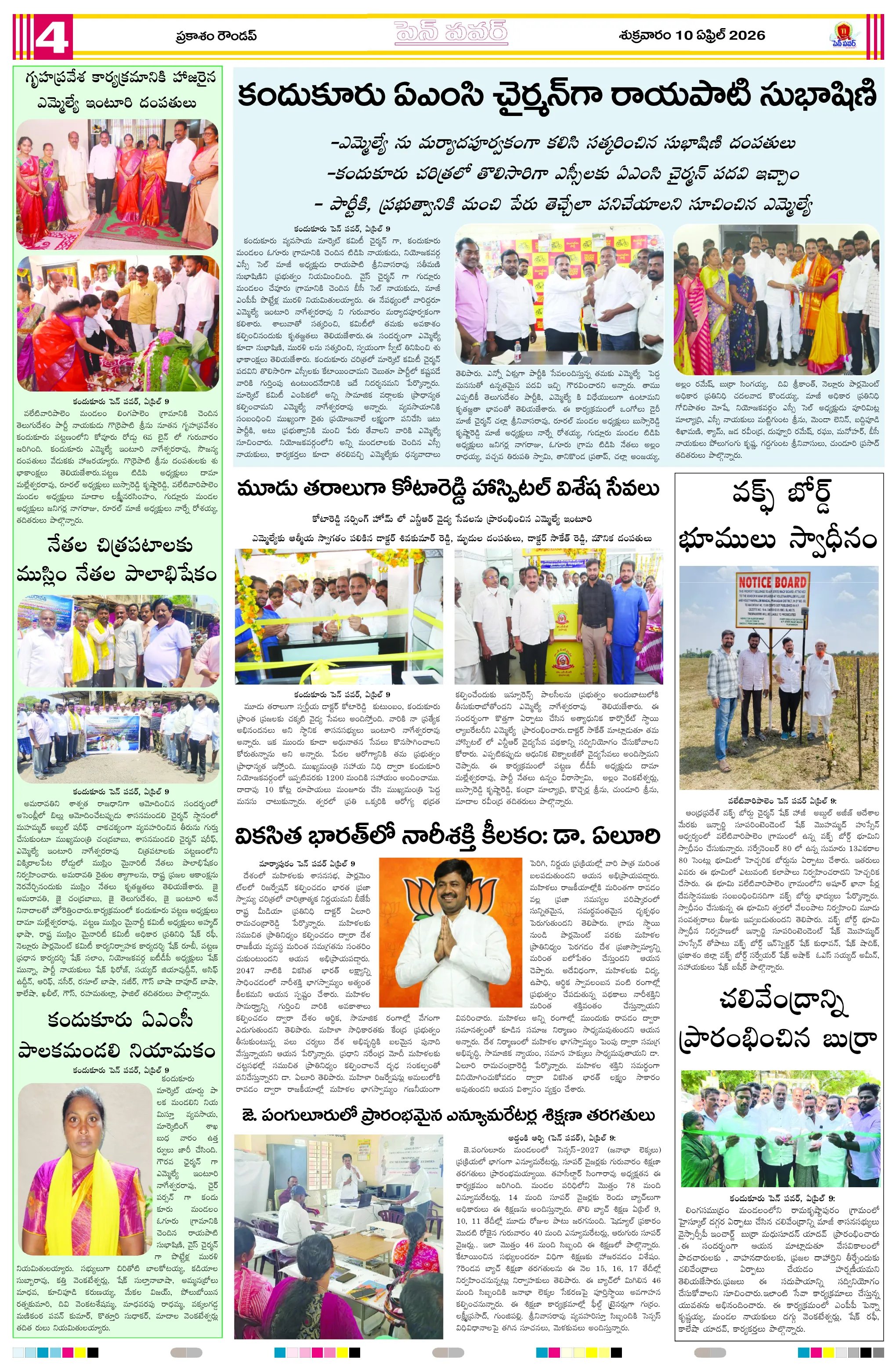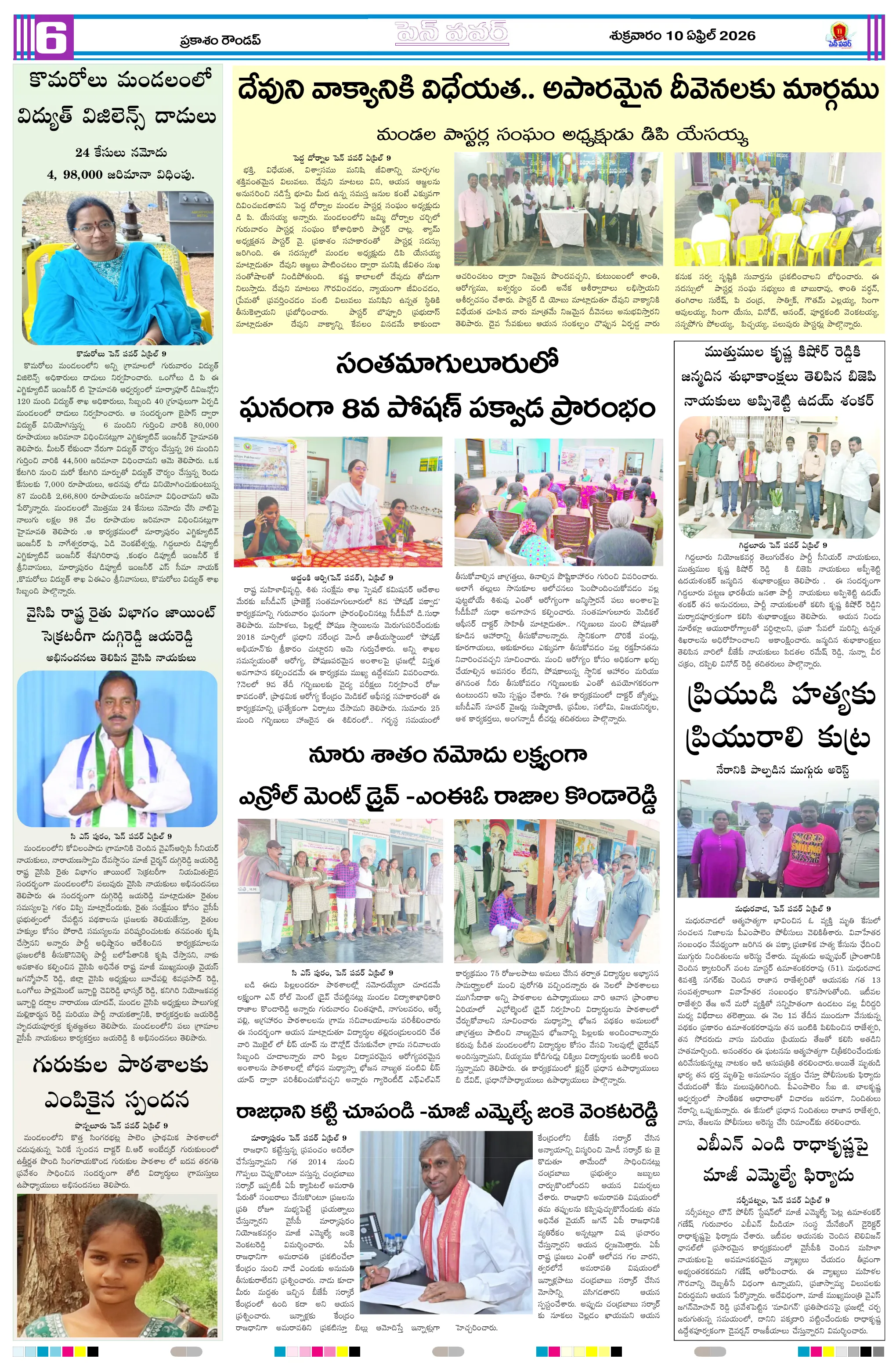 రోడ్డు ప్రమాదం ట్రాక్టర్ ఢీకొని వ్యక్తి మృతిమహిళల భద్రతపై పోస్టర్లతో అవగాహన ప్రచారంఈనెల 22న శ్రీశ్రీశ్రీ రమా సమేత సత్యన్నారాయణ స్వామి వారి కళ్యాణ మహోత్సవంప్రమాదాల నియంత్రణకు పోలీస్ శాఖ ముందడుగు..గంజాయి, సైబర్ నేరాలపై అవగాహనపల్లపు వెంకట్ మళ్లీ రాష్ట్ర వర్కింగ్ కమిటీలోకిఆంధ్ర, తెలంగాణ సరిహద్దులో అక్రమ పశువుల రవాణాఒంటరి మహిళకు ఆర్థిక భరోసా– తక్షణమే ఉపాధి కల్పించిన కలెక్టర్గ్రామాభివృద్ధికి కృషి చేసిన సర్పంచ్‌లకు ఘన సన్మానంప్రజల ఆశలు, ఆలోచనలు, ఆకాంక్షలు నిజం చేసే ఏకైక రాజకీయ నాయకుడు చంద్రబాబునాయుడు : ప్రత్తిపాటి