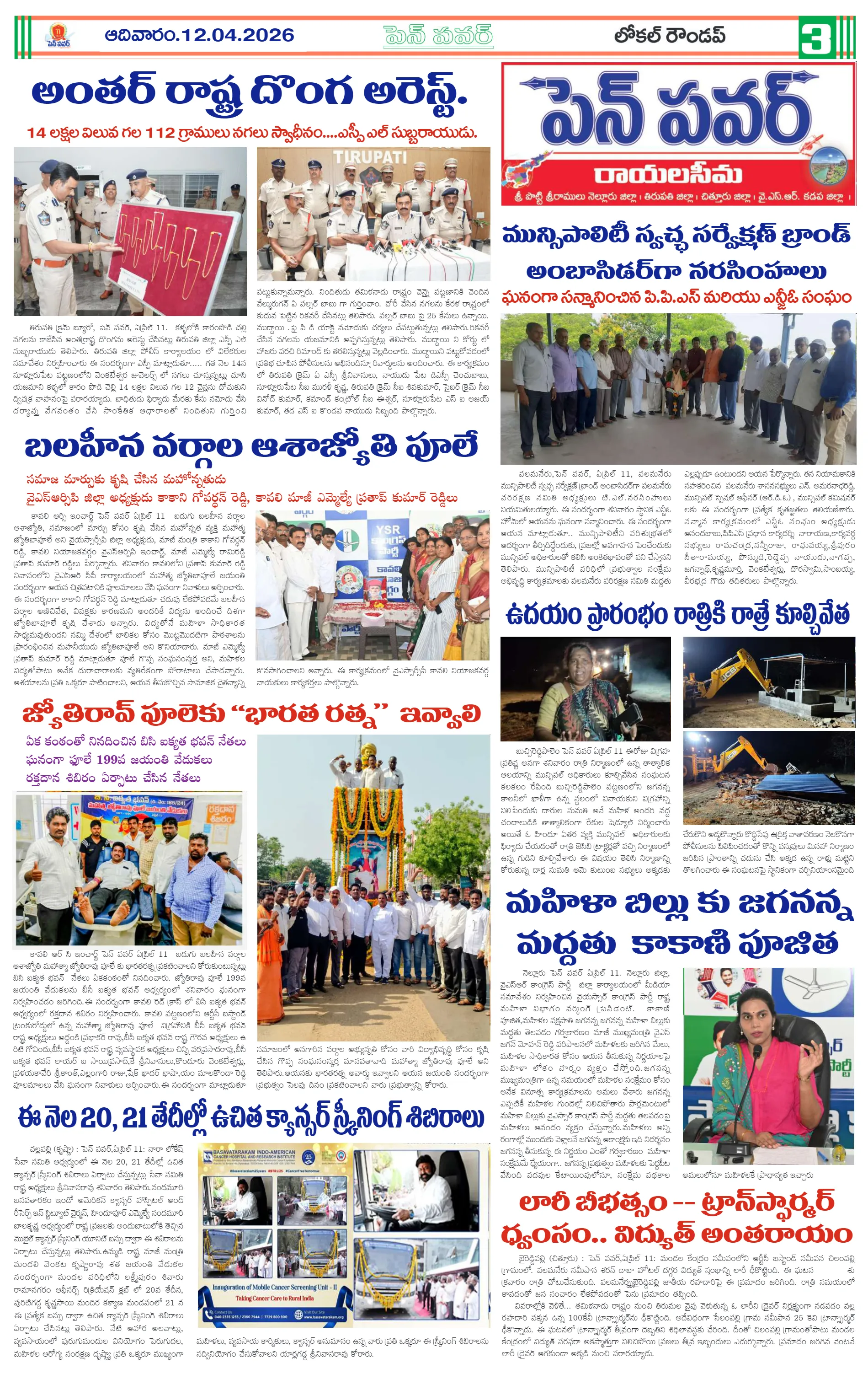 డి కబానా రెస్టారెంట్‌పై హైకోర్టు కఠిన ఆదేశాలుదామనపల్లి స్వర్ణ గ్రామం కార్యాలయంలో ఓటర్ల జాబితా ప్రదర్శన.. పేరు పరిశీలించుకోవాలని సూచనజీకే వీధి ఏకలవ్య పాఠశాలలో సీబీఎస్ఈ 10వ ఫలితాలు.. శతశాతం ఉత్తీర్ణతఇంటర్ సెకండ్ ఇయర్ పరీక్షలలో అడ్డతీగల అనూప్ కాలేజ్ విజయకేతనం…జగన్ మత్స్యకారుల కడుపుకొడితే.. చంద్రబాబు వారి బతుకుదెరువు అయ్యారు : ప్రత్తిపాటి16న జీకేవిధి లో గ్రామసభ నిర్వహణ ఉపాధ్యాయుల సమస్యలపై పీఆర్‌టీయూ ధర్నాకు పిలుపులోకేశ్ సారథ్యంలోని తెలుగుదేశం 3.0 వెర్షన్.. భవిష్యత్ లో రాజకీయ పార్టీల నిర్మాణ తీరును మార్చే గొప్ప క్రియేషన్ కానుంది : ప్రత్తిపాటిజీకే వీధి కేజీబీవీకి ఇంటర్ ఫలితాల్లో మెరుగైన ప్రతిభక్లాప్ మిత్రులకు వెంటనే జీతాలు చెల్లించాలి: అరికట్ట ఆంజనేయులు