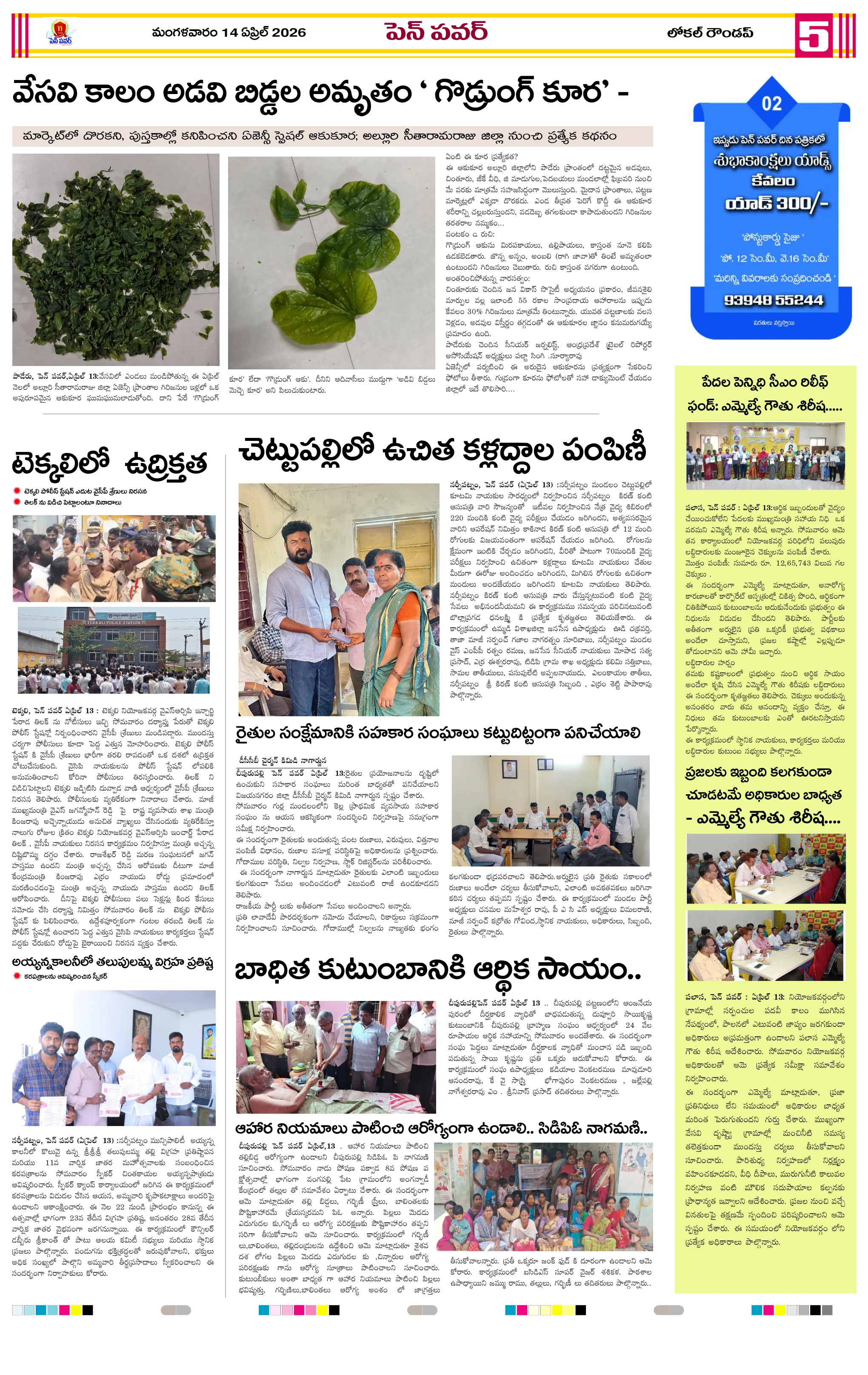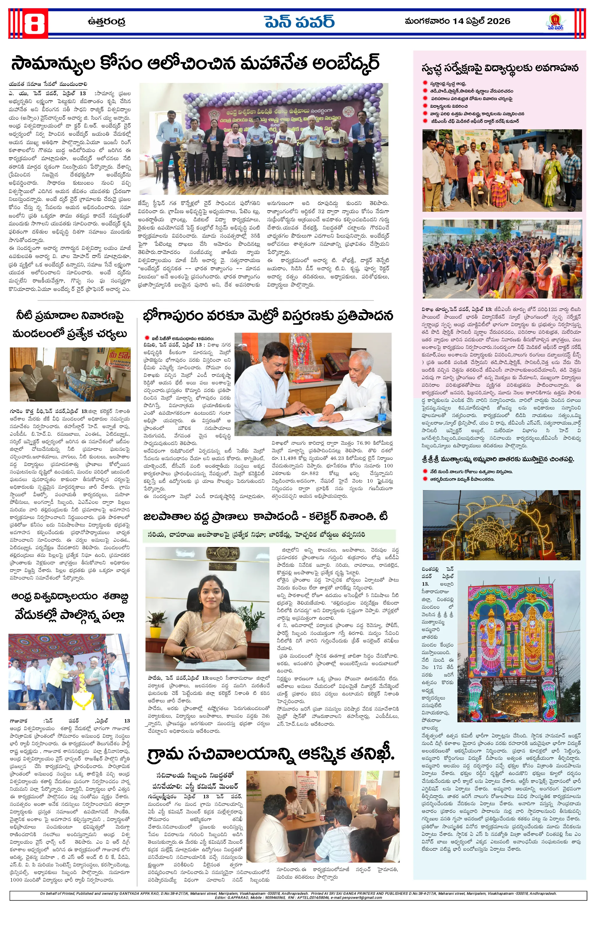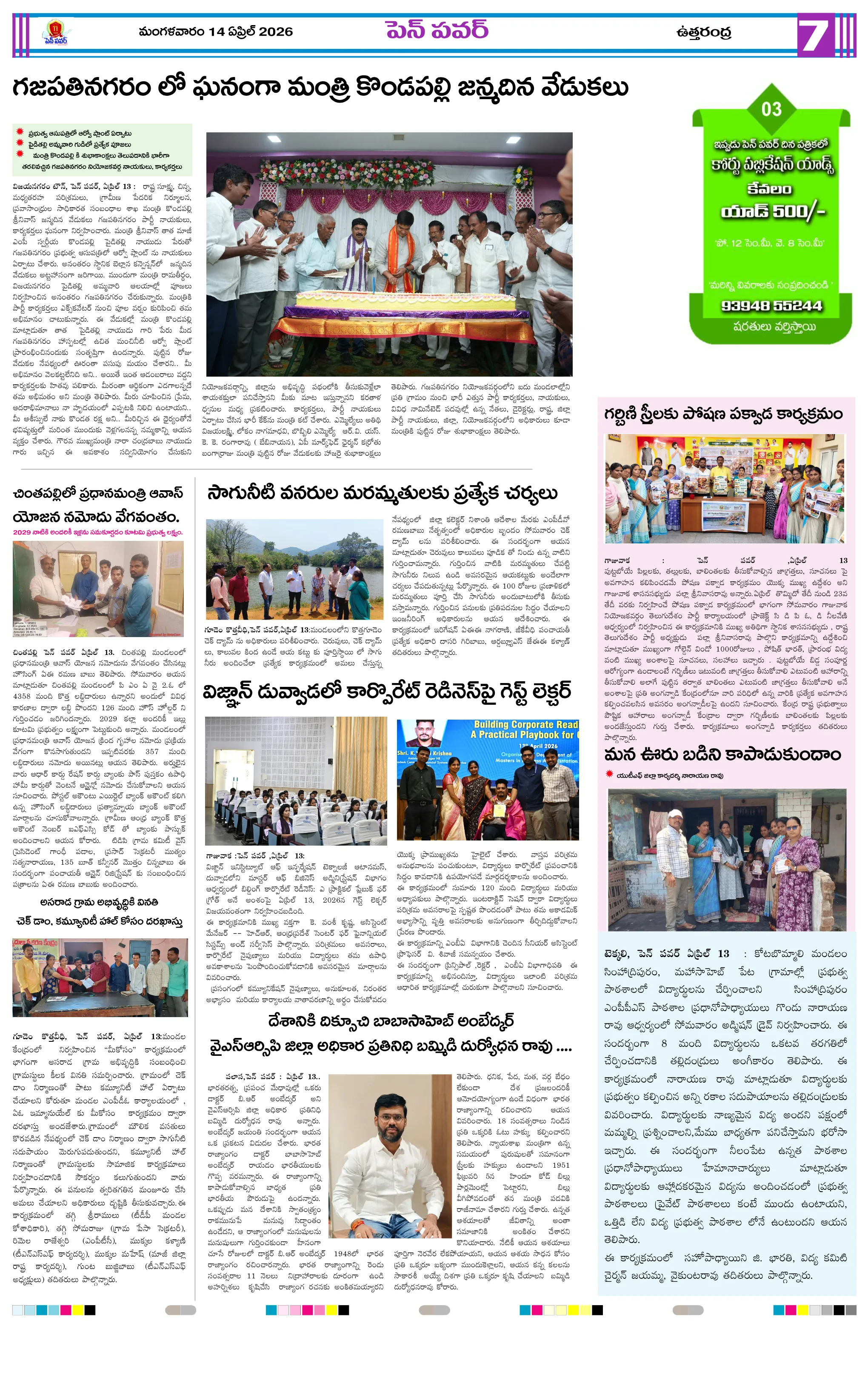 జనగణన మొదటి విడత శిక్షణ ప్రారంభం:తహసీల్దార్ హెచ్. అన్నాజీ రావుఅంబేద్కర్ జయంతి ఏర్పాట్లపై పోలీసుల పర్యవేక్షణమహిళలు స్వయం సమృద్ధి సాధించాలి…కూటమి ప్రభుత్వంలో గ్యాస్ కొరత సామాన్యుల తిప్పలు పట్టవా:వైసిపి మండల ఉపాధ్యక్షులు వంతల అరుణ్ ఆగ్రహం.మండల కేంద్రాల్లో ప్రతి సోమవారం ‘గ్రీవెన్స్ డే’ తప్పనిసరి:జిల్లా కలెక్టర్ నిశాంతిసిమెంట్ లారీ బోల్తా…తప్పిన పెను ప్రమాదం..!సమస్యల పరిష్కారానికి మండల కేంద్రంలో సోమవారం ‘మీ కోసం’ కార్యక్రమం ప్రతి ఇంటికి ఉచిత విద్యుత్ అందించడమే ‘సూర్యఘర్’ లక్ష్యం : ప్రత్తిపాటిజనసేన నాయకుడిపై కులదూషణ ఆరోపణలుజర్రెల కొత్తూరులో భారీ పాము సంచారం – గ్రామస్థుల్లో భయాందోళన