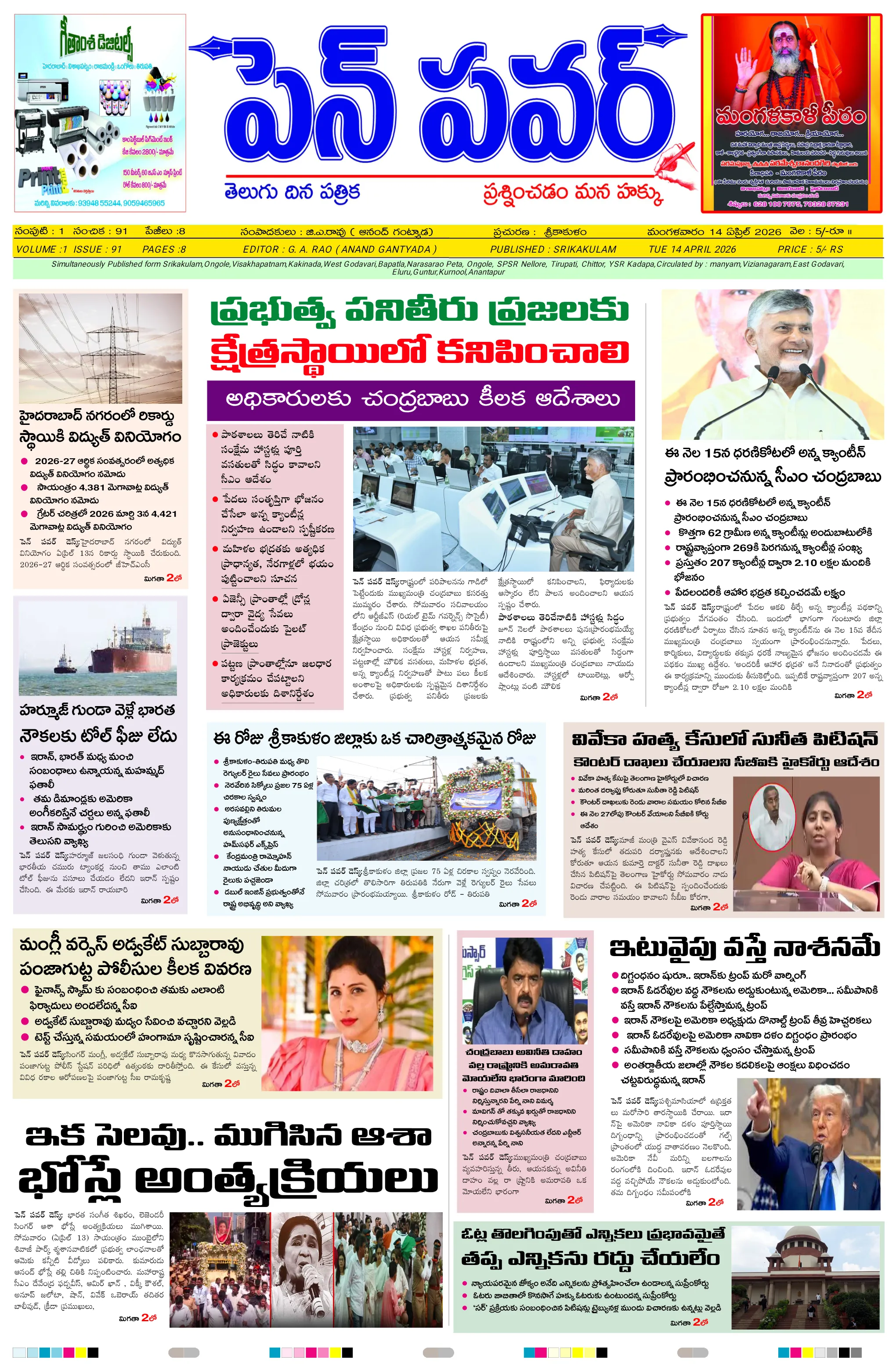 జనగణన మొదటి విడత శిక్షణ ప్రారంభం:తహసీల్దార్ హెచ్. అన్నాజీ రావుఅంబేద్కర్ జయంతి ఏర్పాట్లపై పోలీసుల పర్యవేక్షణమహిళలు స్వయం సమృద్ధి సాధించాలి…కూటమి ప్రభుత్వంలో గ్యాస్ కొరత సామాన్యుల తిప్పలు పట్టవా:వైసిపి మండల ఉపాధ్యక్షులు వంతల అరుణ్ ఆగ్రహం.మండల కేంద్రాల్లో ప్రతి సోమవారం ‘గ్రీవెన్స్ డే’ తప్పనిసరి:జిల్లా కలెక్టర్ నిశాంతిసిమెంట్ లారీ బోల్తా…తప్పిన పెను ప్రమాదం..!సమస్యల పరిష్కారానికి మండల కేంద్రంలో సోమవారం ‘మీ కోసం’ కార్యక్రమం ప్రతి ఇంటికి ఉచిత విద్యుత్ అందించడమే ‘సూర్యఘర్’ లక్ష్యం : ప్రత్తిపాటిజనసేన నాయకుడిపై కులదూషణ ఆరోపణలుజర్రెల కొత్తూరులో భారీ పాము సంచారం – గ్రామస్థుల్లో భయాందోళన