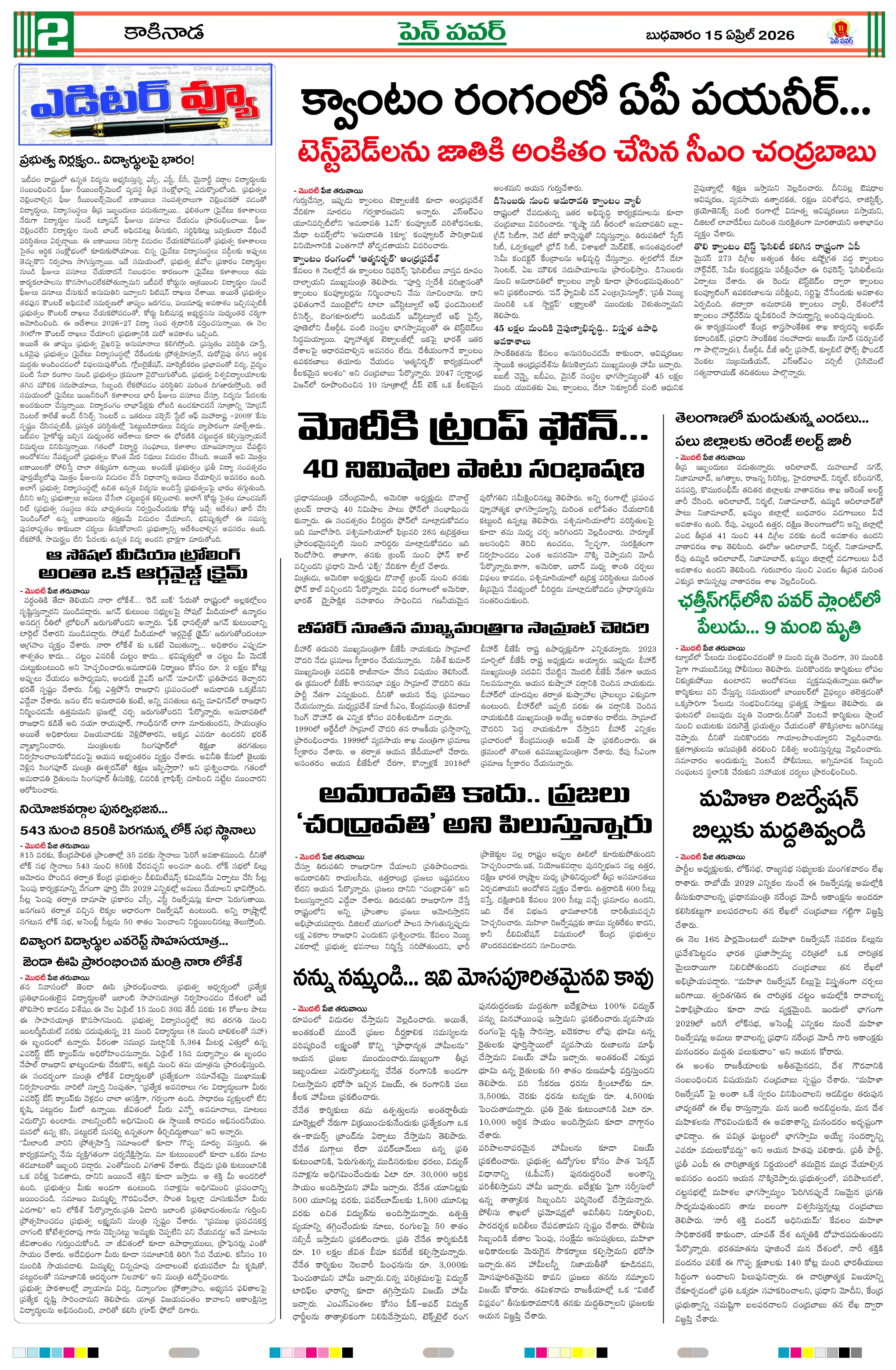 ప్రజావాణి ఫిర్యాదుకు..! స్పందించిన కలెక్టర్..డి కబానా రెస్టారెంట్‌పై హైకోర్టు కఠిన ఆదేశాలుదామనపల్లి స్వర్ణ గ్రామం కార్యాలయంలో ఓటర్ల జాబితా ప్రదర్శన.. పేరు పరిశీలించుకోవాలని సూచనజీకే వీధి ఏకలవ్య పాఠశాలలో సీబీఎస్ఈ 10వ ఫలితాలు.. శతశాతం ఉత్తీర్ణతఇంటర్ సెకండ్ ఇయర్ పరీక్షలలో అడ్డతీగల అనూప్ కాలేజ్ విజయకేతనం…జగన్ మత్స్యకారుల కడుపుకొడితే.. చంద్రబాబు వారి బతుకుదెరువు అయ్యారు : ప్రత్తిపాటి16న జీకేవిధి లో గ్రామసభ నిర్వహణ ఉపాధ్యాయుల సమస్యలపై పీఆర్‌టీయూ ధర్నాకు పిలుపులోకేశ్ సారథ్యంలోని తెలుగుదేశం 3.0 వెర్షన్.. భవిష్యత్ లో రాజకీయ పార్టీల నిర్మాణ తీరును మార్చే గొప్ప క్రియేషన్ కానుంది : ప్రత్తిపాటిజీకే వీధి కేజీబీవీకి ఇంటర్ ఫలితాల్లో మెరుగైన ప్రతిభ