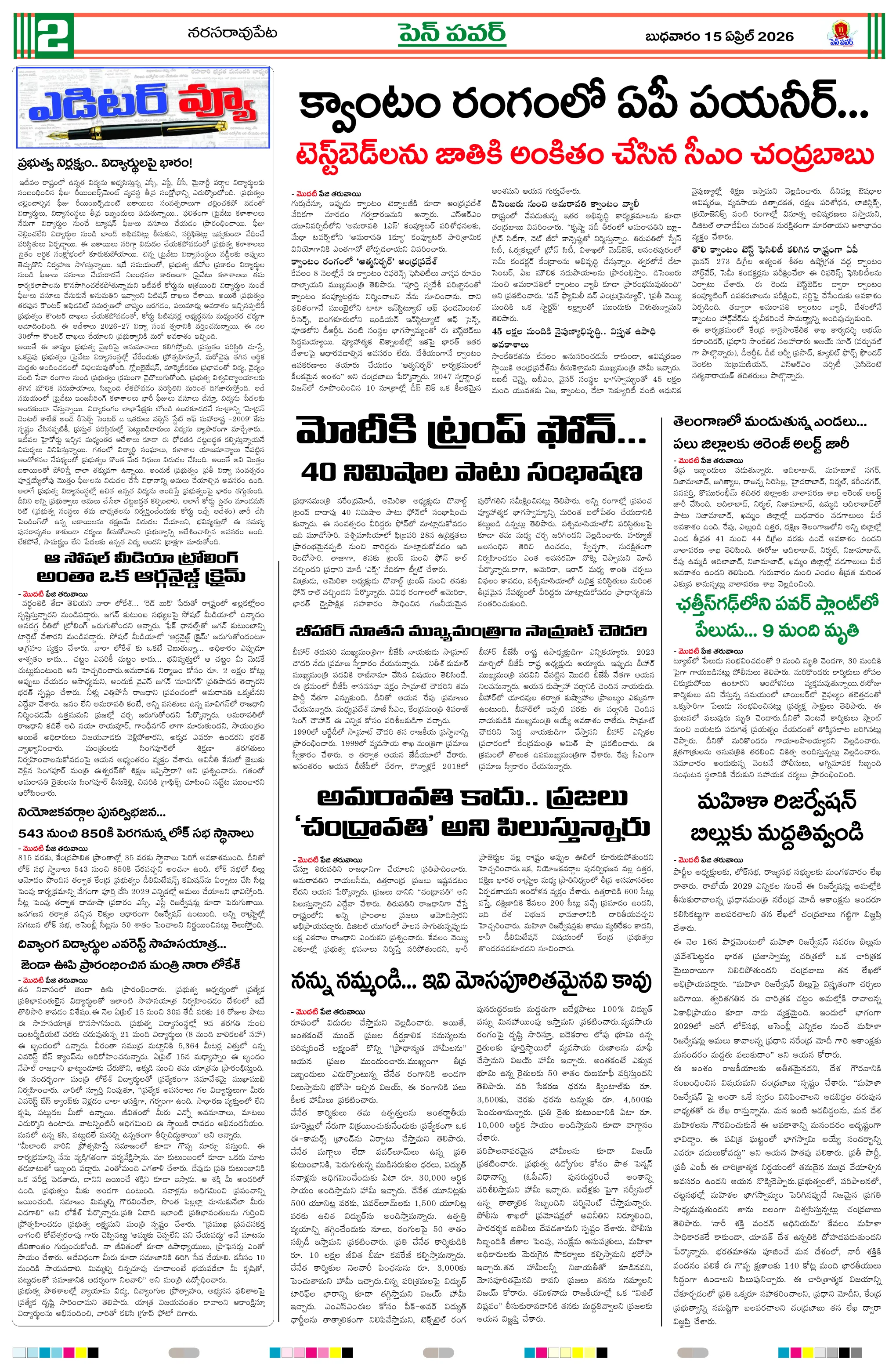 ప్రజావాణి ఫిర్యాదుకు..! స్పందించిన కలెక్టర్..డి కబానా రెస్టారెంట్‌పై హైకోర్టు కఠిన ఆదేశాలుదామనపల్లి స్వర్ణ గ్రామం కార్యాలయంలో ఓటర్ల జాబితా ప్రదర్శన.. పేరు పరిశీలించుకోవాలని సూచనజీకే వీధి ఏకలవ్య పాఠశాలలో సీబీఎస్ఈ 10వ ఫలితాలు.. శతశాతం ఉత్తీర్ణతఇంటర్ సెకండ్ ఇయర్ పరీక్షలలో అడ్డతీగల అనూప్ కాలేజ్ విజయకేతనం…జగన్ మత్స్యకారుల కడుపుకొడితే.. చంద్రబాబు వారి బతుకుదెరువు అయ్యారు : ప్రత్తిపాటి16న జీకేవిధి లో గ్రామసభ నిర్వహణ ఉపాధ్యాయుల సమస్యలపై పీఆర్‌టీయూ ధర్నాకు పిలుపులోకేశ్ సారథ్యంలోని తెలుగుదేశం 3.0 వెర్షన్.. భవిష్యత్ లో రాజకీయ పార్టీల నిర్మాణ తీరును మార్చే గొప్ప క్రియేషన్ కానుంది : ప్రత్తిపాటిజీకే వీధి కేజీబీవీకి ఇంటర్ ఫలితాల్లో మెరుగైన ప్రతిభ