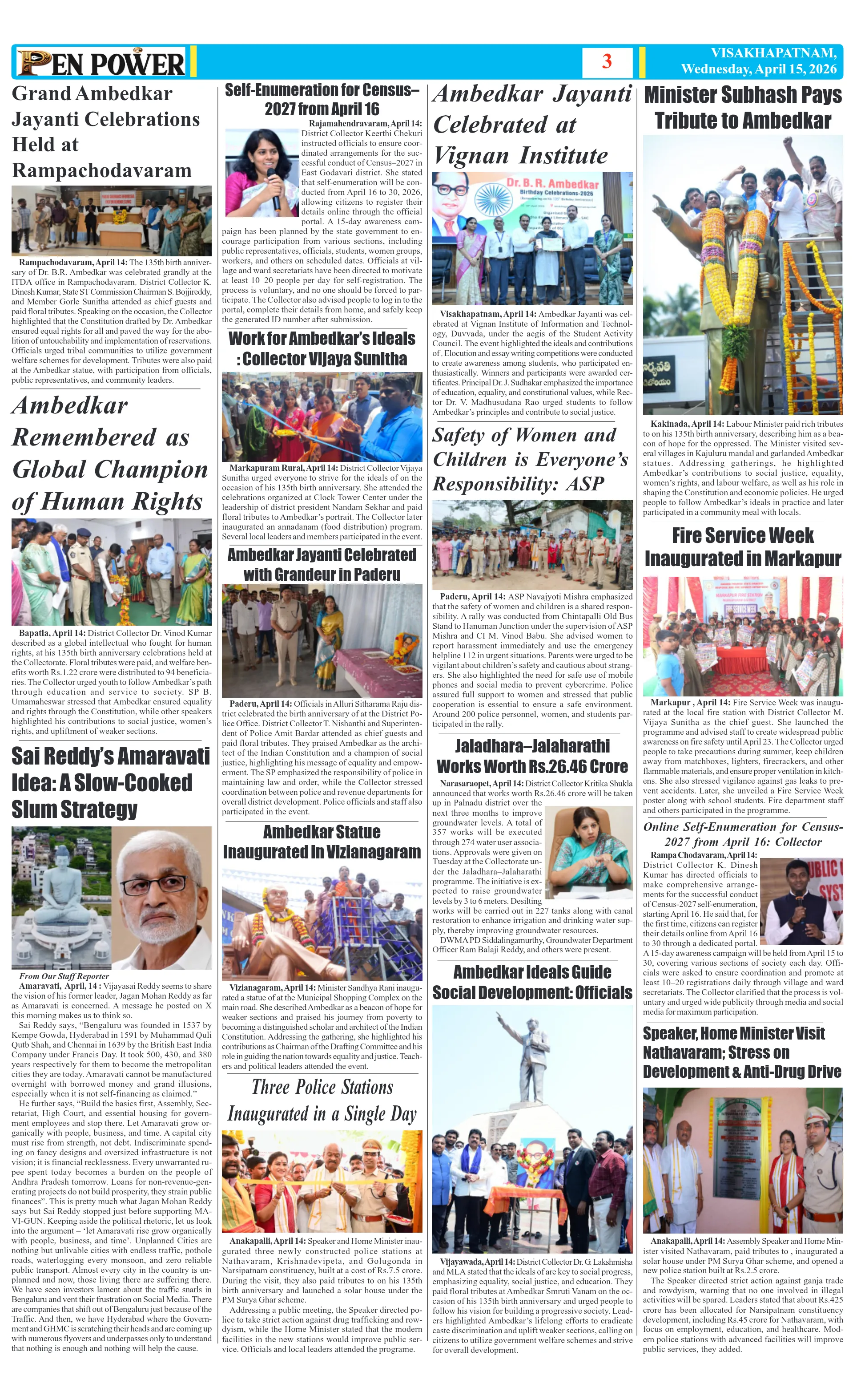 ప్రజావాణి ఫిర్యాదుకు..! స్పందించిన కలెక్టర్..డి కబానా రెస్టారెంట్పై హైకోర్టు కఠిన ఆదేశాలుదామనపల్లి స్వర్ణ గ్రామం కార్యాలయంలో ఓటర్ల జాబితా ప్రదర్శన.. పేరు పరిశీలించుకోవాలని సూచనజీకే వీధి ఏకలవ్య పాఠశాలలో సీబీఎస్ఈ 10వ ఫలితాలు.. శతశాతం ఉత్తీర్ణతఇంటర్ సెకండ్ ఇయర్ పరీక్షలలో అడ్డతీగల అనూప్ కాలేజ్ విజయకేతనం…జగన్ మత్స్యకారుల కడుపుకొడితే.. చంద్రబాబు వారి బతుకుదెరువు అయ్యారు : ప్రత్తిపాటి16న జీకేవిధి లో గ్రామసభ నిర్వహణ ఉపాధ్యాయుల సమస్యలపై పీఆర్టీయూ ధర్నాకు పిలుపులోకేశ్ సారథ్యంలోని తెలుగుదేశం 3.0 వెర్షన్.. భవిష్యత్ లో రాజకీయ పార్టీల నిర్మాణ తీరును మార్చే గొప్ప క్రియేషన్ కానుంది : ప్రత్తిపాటిజీకే వీధి కేజీబీవీకి ఇంటర్ ఫలితాల్లో మెరుగైన ప్రతిభ