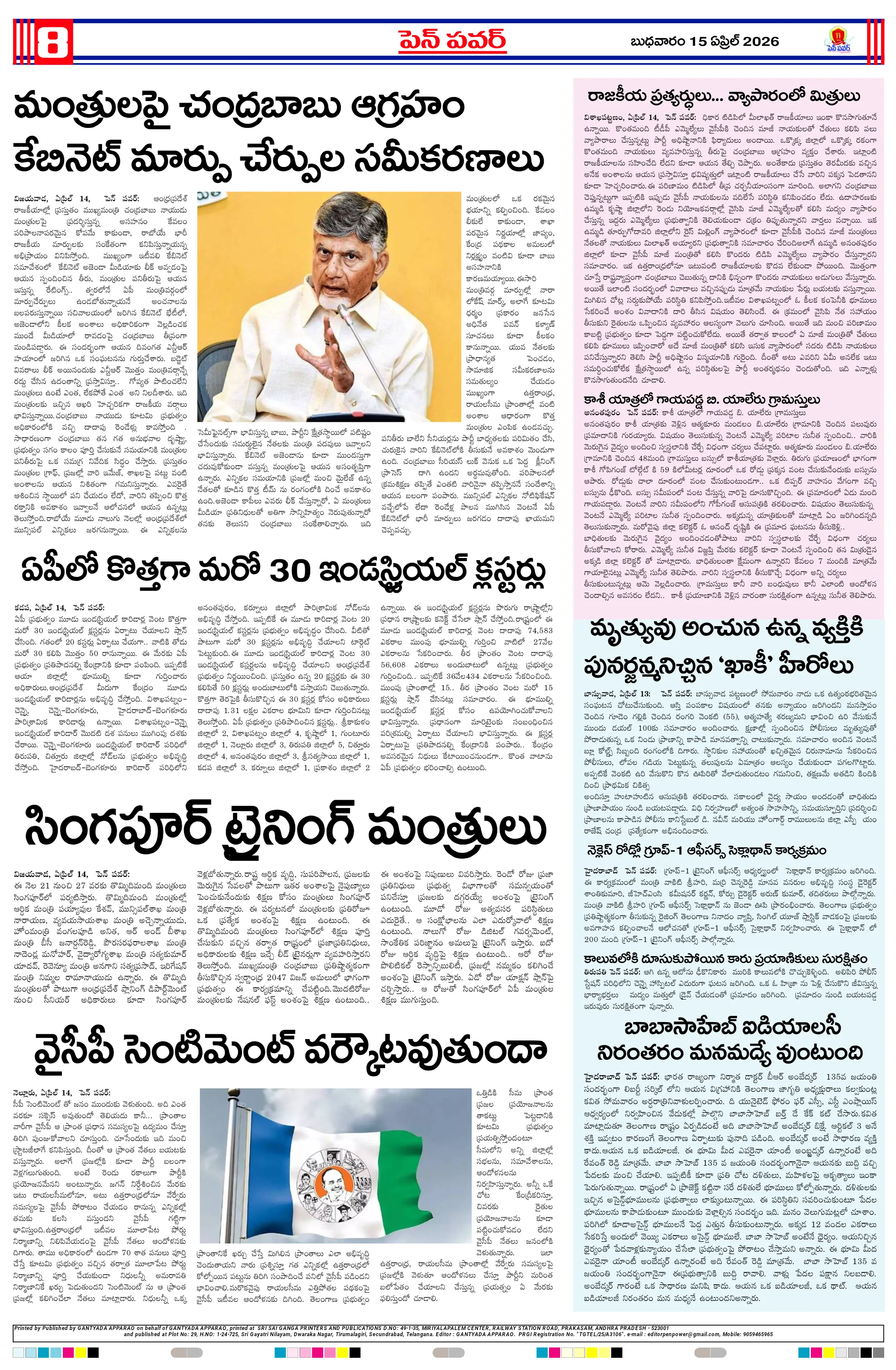 డి కబానా రెస్టారెంట్‌పై హైకోర్టు కఠిన ఆదేశాలుదామనపల్లి స్వర్ణ గ్రామం కార్యాలయంలో ఓటర్ల జాబితా ప్రదర్శన.. పేరు పరిశీలించుకోవాలని సూచనజీకే వీధి ఏకలవ్య పాఠశాలలో సీబీఎస్ఈ 10వ ఫలితాలు.. శతశాతం ఉత్తీర్ణతఇంటర్ సెకండ్ ఇయర్ పరీక్షలలో అడ్డతీగల అనూప్ కాలేజ్ విజయకేతనం…జగన్ మత్స్యకారుల కడుపుకొడితే.. చంద్రబాబు వారి బతుకుదెరువు అయ్యారు : ప్రత్తిపాటి16న జీకేవిధి లో గ్రామసభ నిర్వహణ ఉపాధ్యాయుల సమస్యలపై పీఆర్‌టీయూ ధర్నాకు పిలుపులోకేశ్ సారథ్యంలోని తెలుగుదేశం 3.0 వెర్షన్.. భవిష్యత్ లో రాజకీయ పార్టీల నిర్మాణ తీరును మార్చే గొప్ప క్రియేషన్ కానుంది : ప్రత్తిపాటిజీకే వీధి కేజీబీవీకి ఇంటర్ ఫలితాల్లో మెరుగైన ప్రతిభక్లాప్ మిత్రులకు వెంటనే జీతాలు చెల్లించాలి: అరికట్ట ఆంజనేయులు