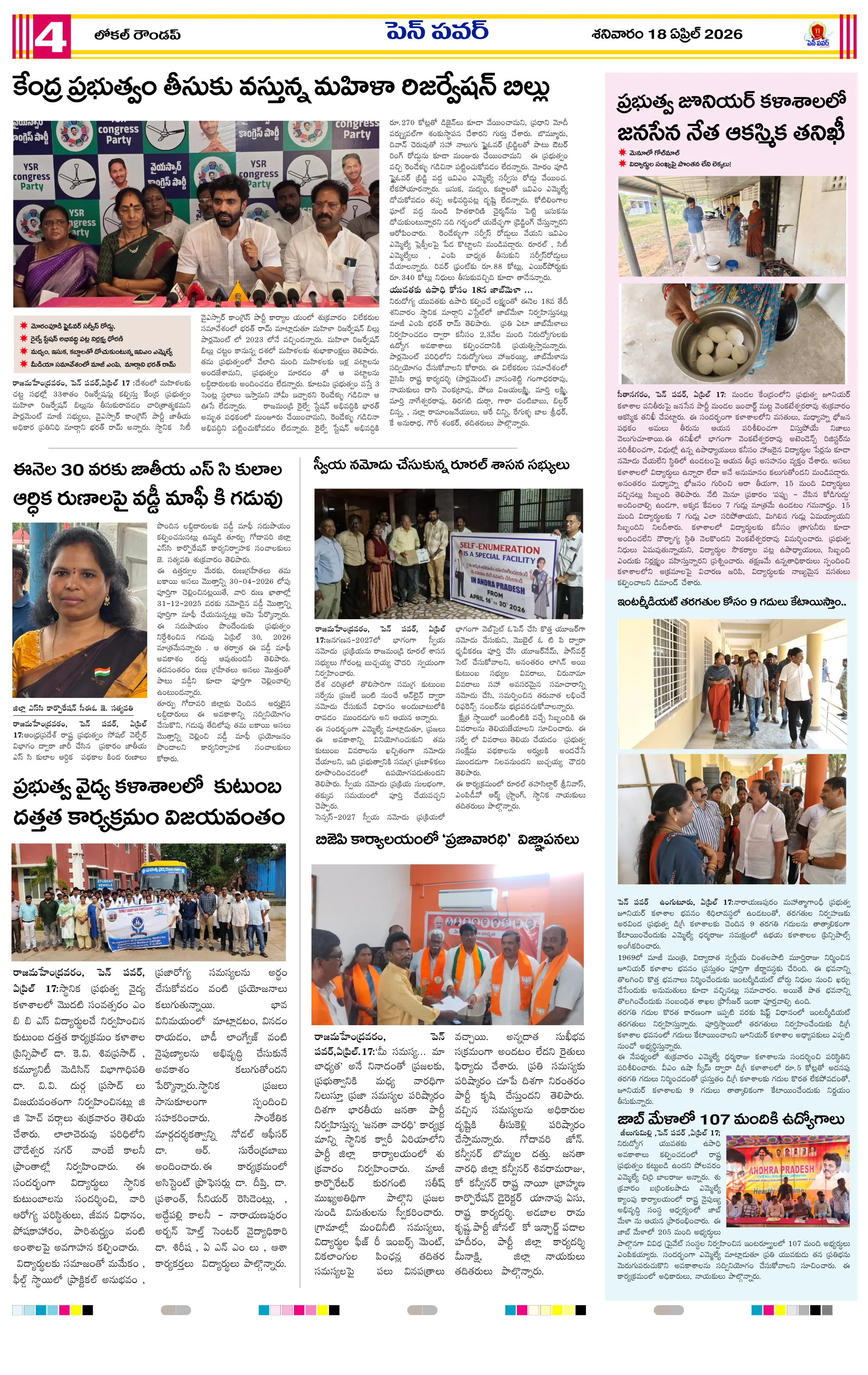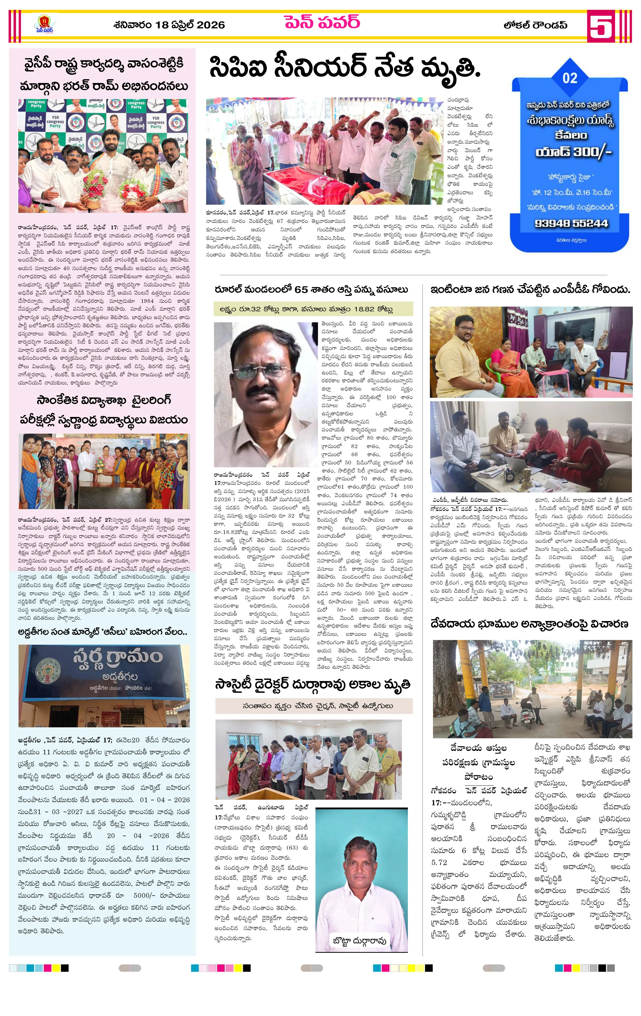 జీకే వీధిలో దంచికొట్టిన వడగళ్ల వర్షందామనపల్లి పంచాయతీలో స్వర్ణాంధ్ర స్వచ్ఛ్ ఆంధ్ర కార్యక్రమంస్వర్ణాంధ్ర – స్వచ్ఛ్ ఆంధ్ర కార్యక్రమాలను పరిశీలించిన ఎంపీడీవో వడగాలుల నేపథ్యంలో ముందస్తు చర్యలపై అవగాహన – ఎంపీడీఓ సూచనలుపాతమంజేరు లో ఘనంగా గంటాలమ్మ విగ్రహ ప్రతిష్ఠరింతాడ సమీపంలో రోడ్డు ప్రమాదం – యువకుడు మృతిపాకలపాడులో ఆపరేషన్ వజ్రప్రహార్ కార్డన్ అండ్ సర్చ్అడ్డతీగల సంత మార్కెట్ ‘ఆసీలు’ బహిరంగ వేలం..డ్రోన్ వినియోగంతో ఓపెన్ డ్రింకింగ్‌పై కేసులు నమోదులోక్‌సభలో 131వ రాజ్యాంగ సవరణ బిల్లుకు బ్రేక్